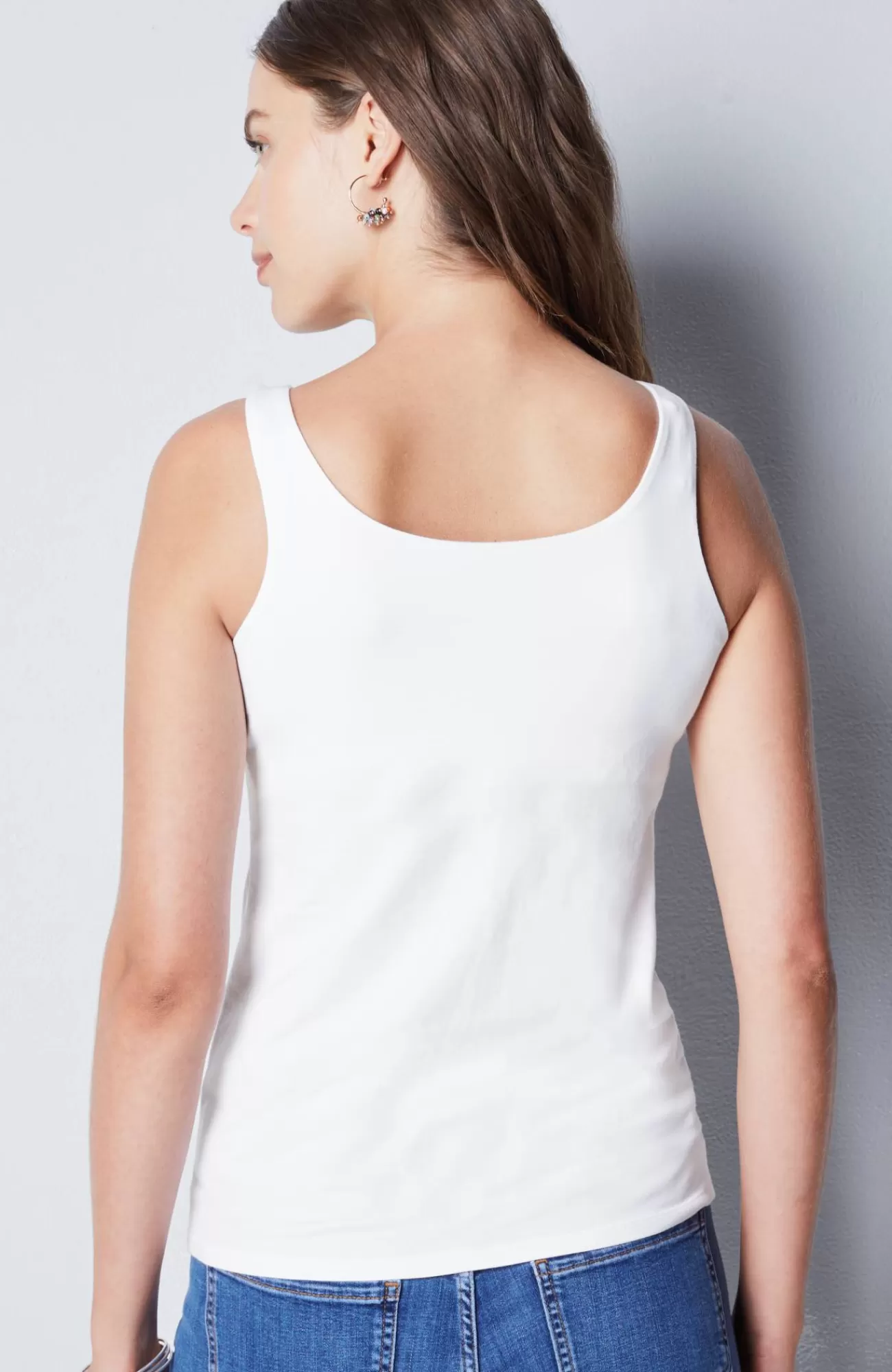 Soft and simple style with a built-in shelf bra for light support.n nnn95% cotton and 5% Lycra® spandex kn…