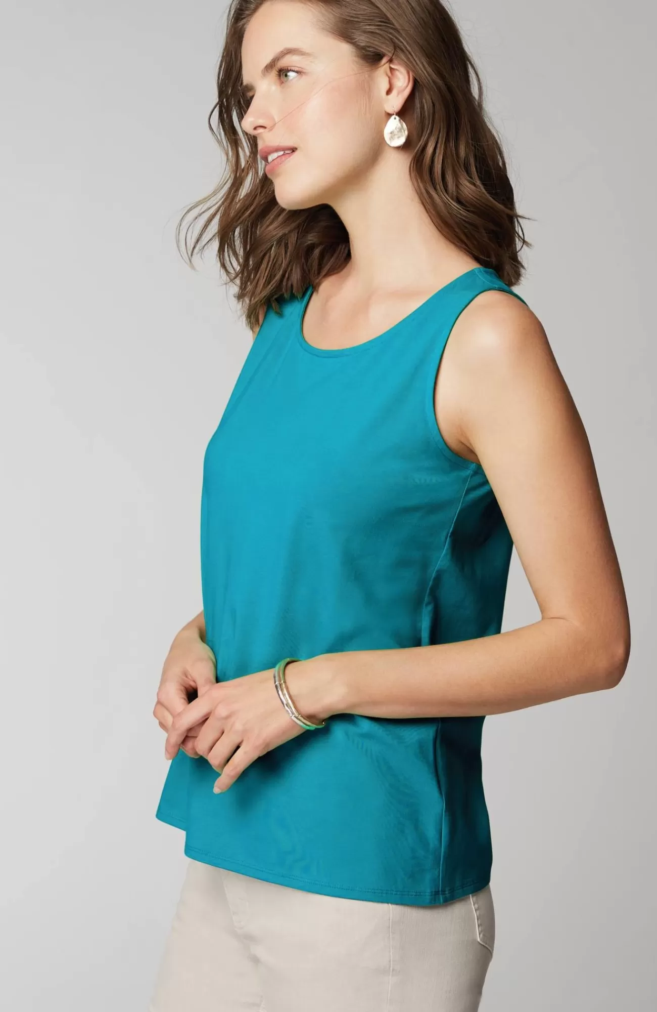 The ultimate outfit starter: an amazing tank in the world's finest pima cotton. Designed with a flattering round neckline, made for your favorite layers.