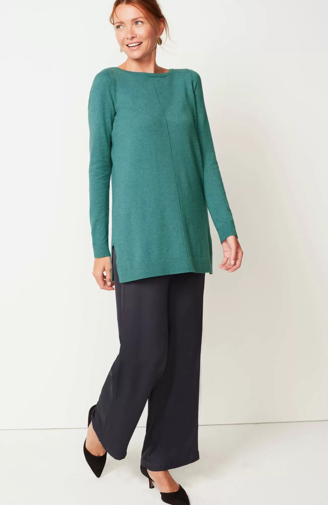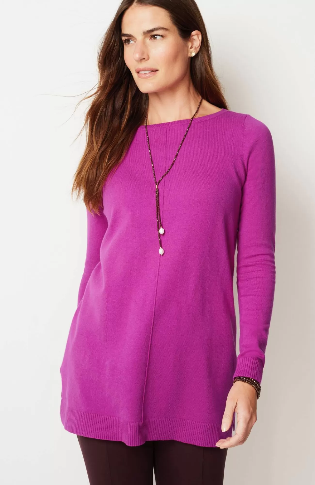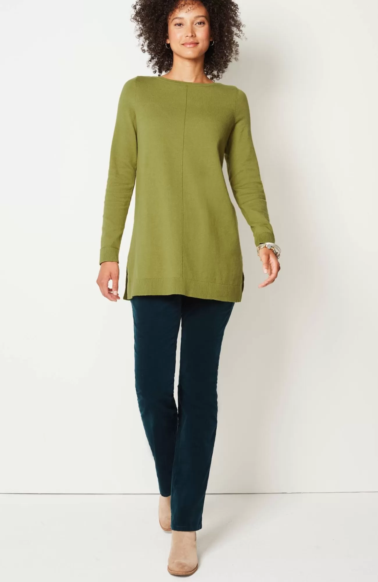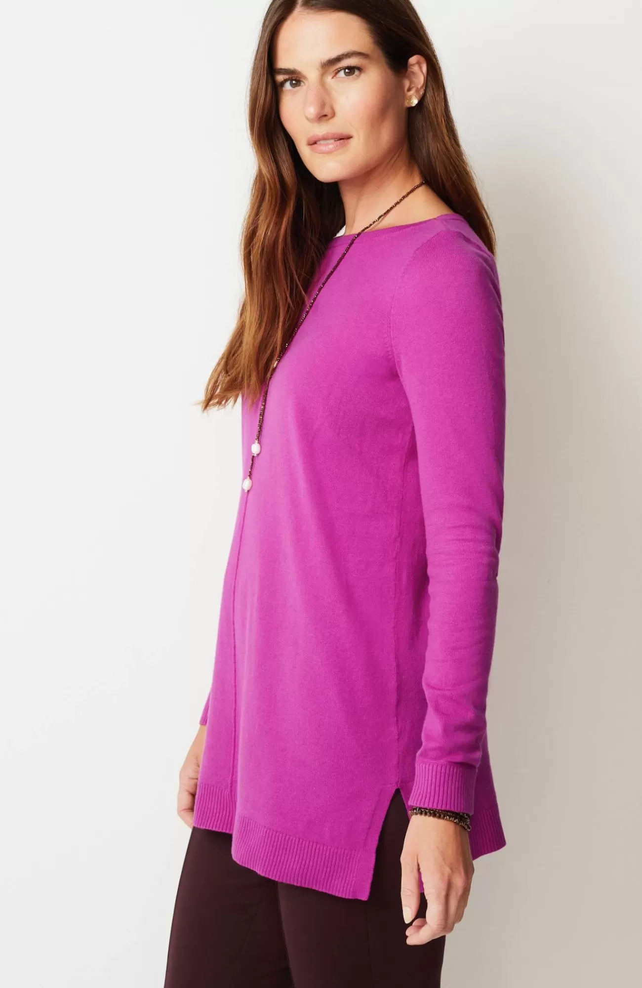 Soft and gently shaped, in so many happy colors?a favorite tunic for sure, plus side slits that give it plenty of movement.