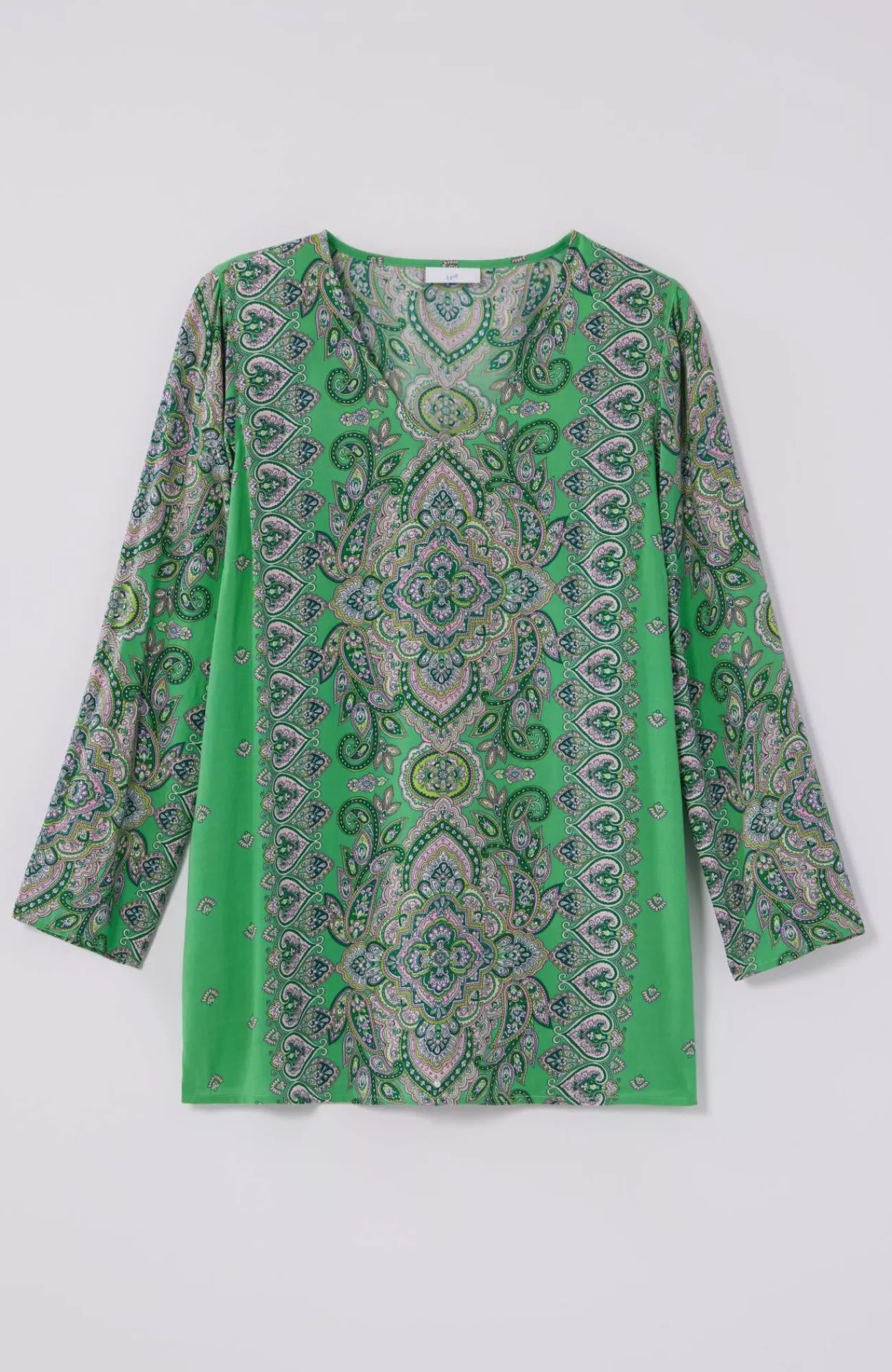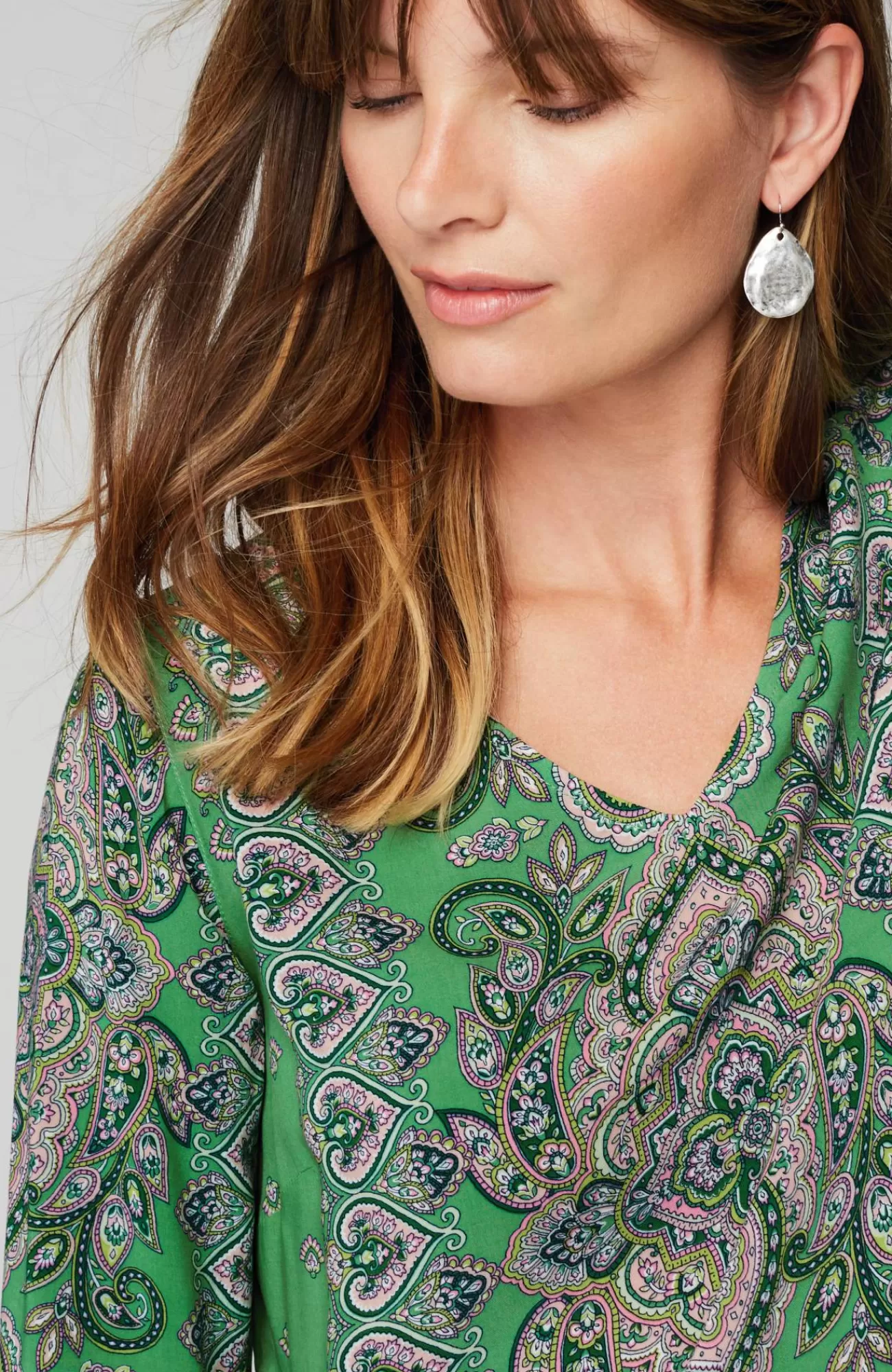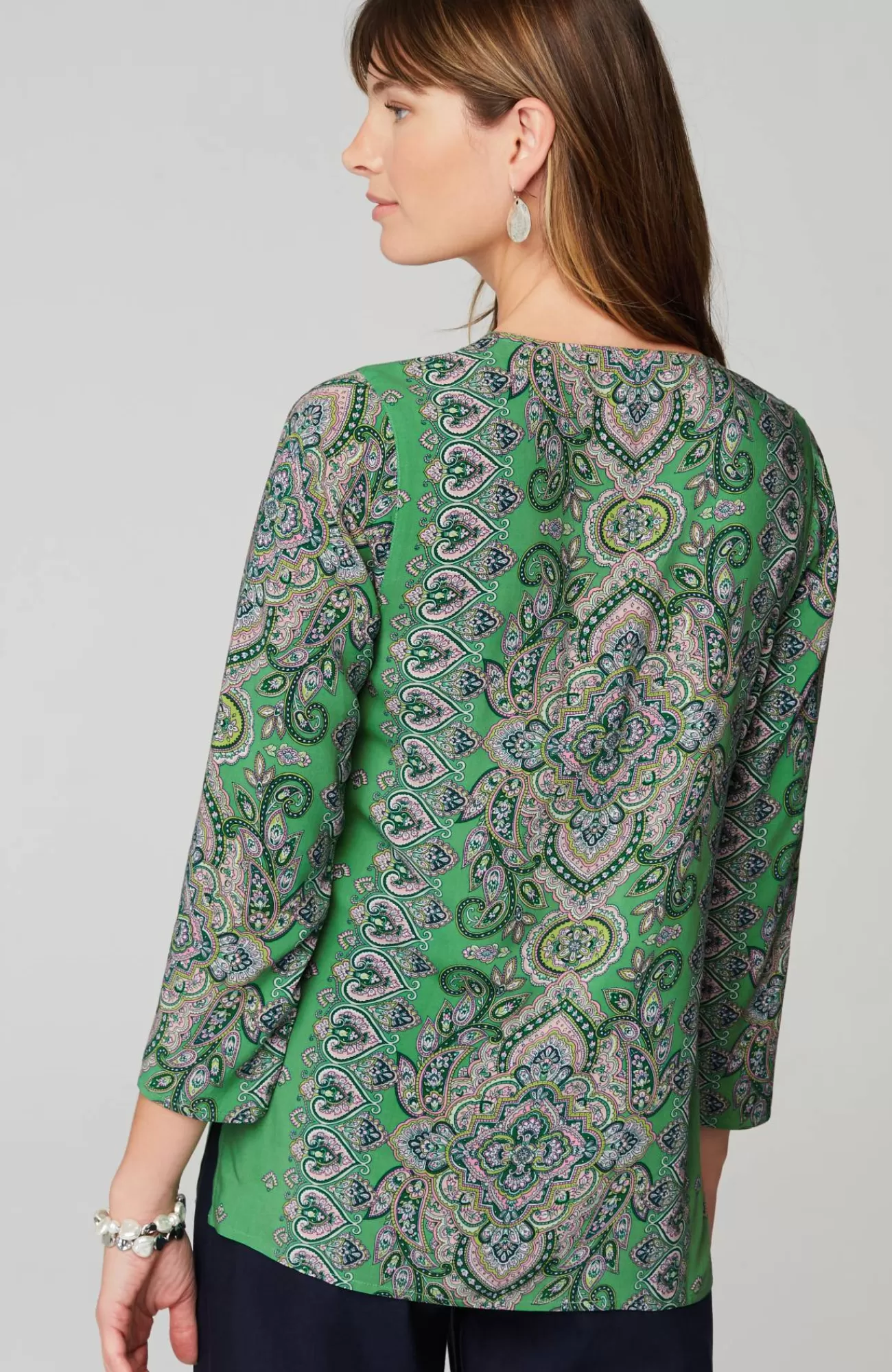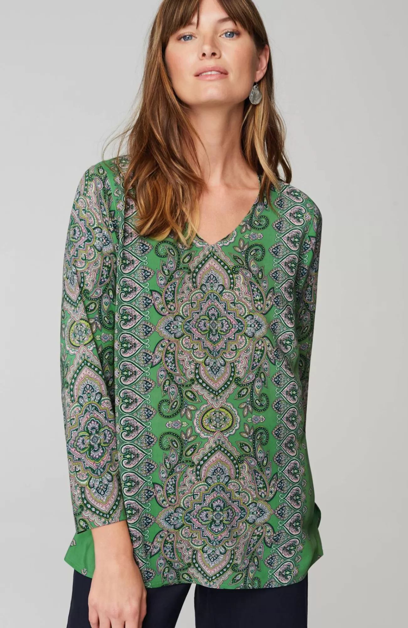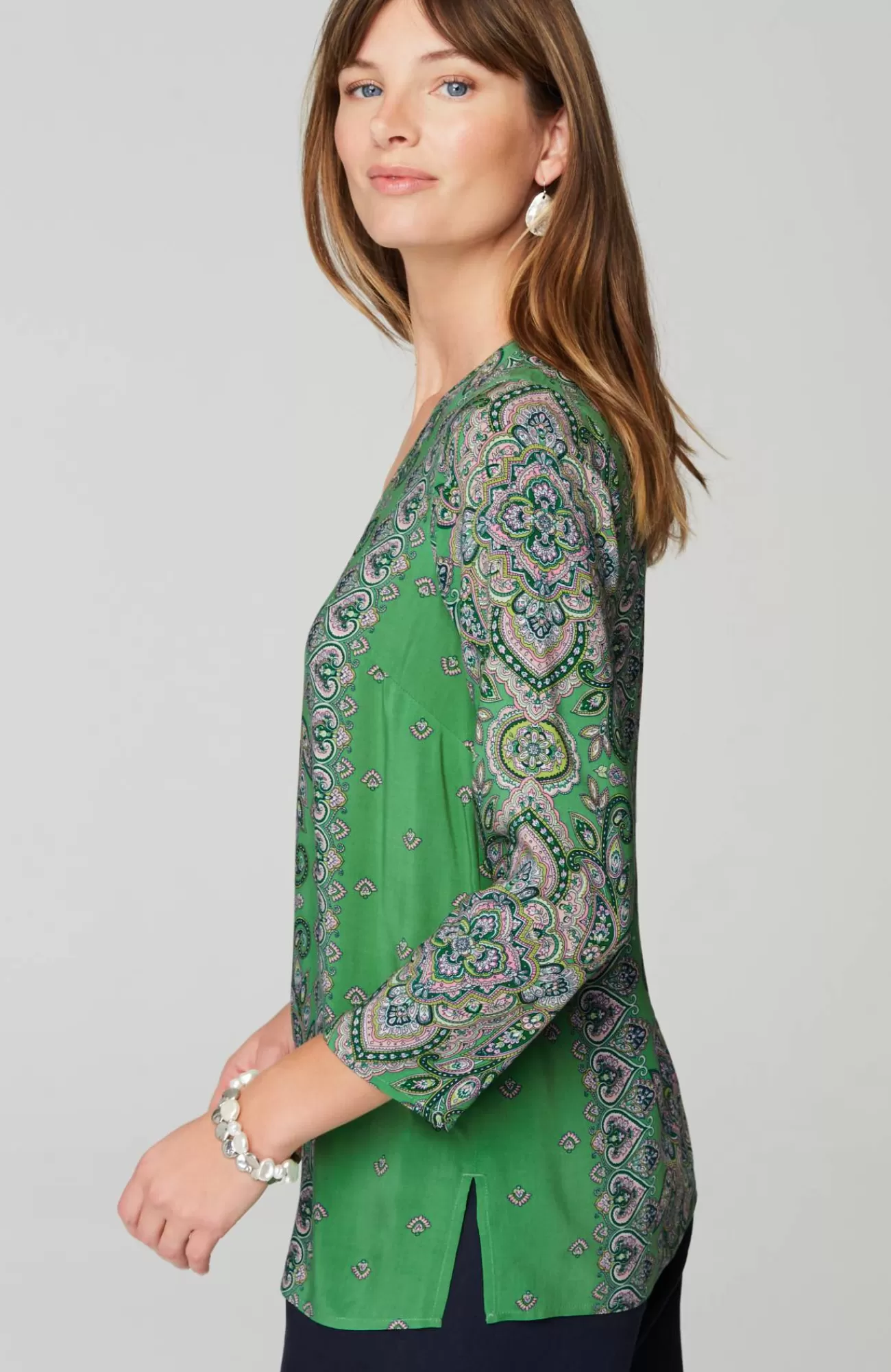 A timeless print all year long—newly refreshed in our versatile V-neck style, with placed-printed paisley at the front, back and sleeves. Side vents.