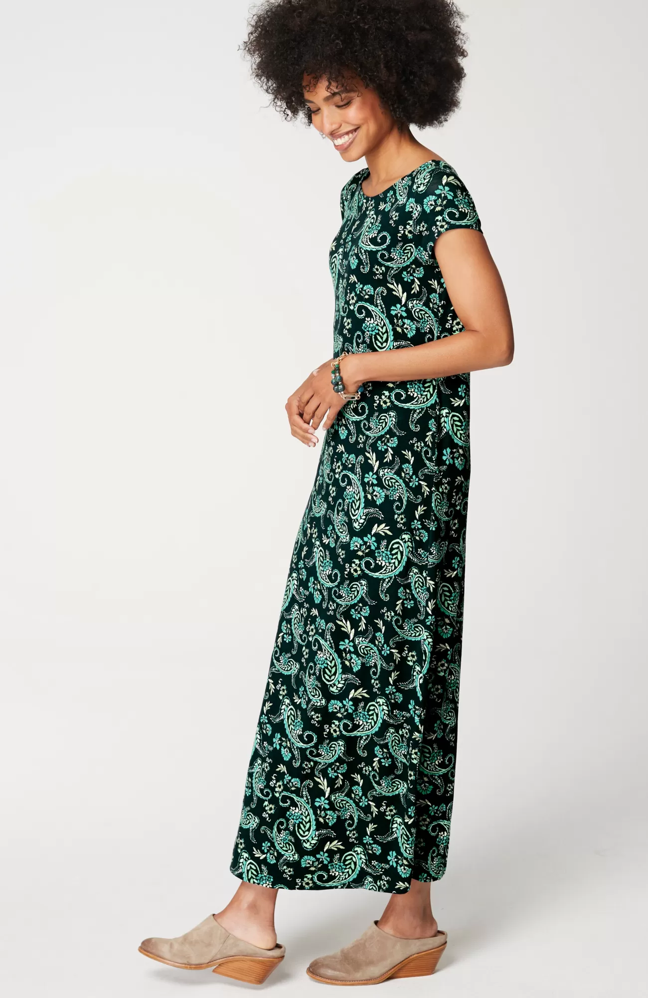Everyone needs an easy maxi dress—ours features a classic boat neckline at the front, a V-neck with a pleat at the back, a shirttail hem and, of course, pockets. The best part? You can feel good about wearing this style because the manufacturing of LENZING™ ECOVERO™ Viscose fibers generates up to 50% lower emissions and water impact compared to generic viscose. Unlined.