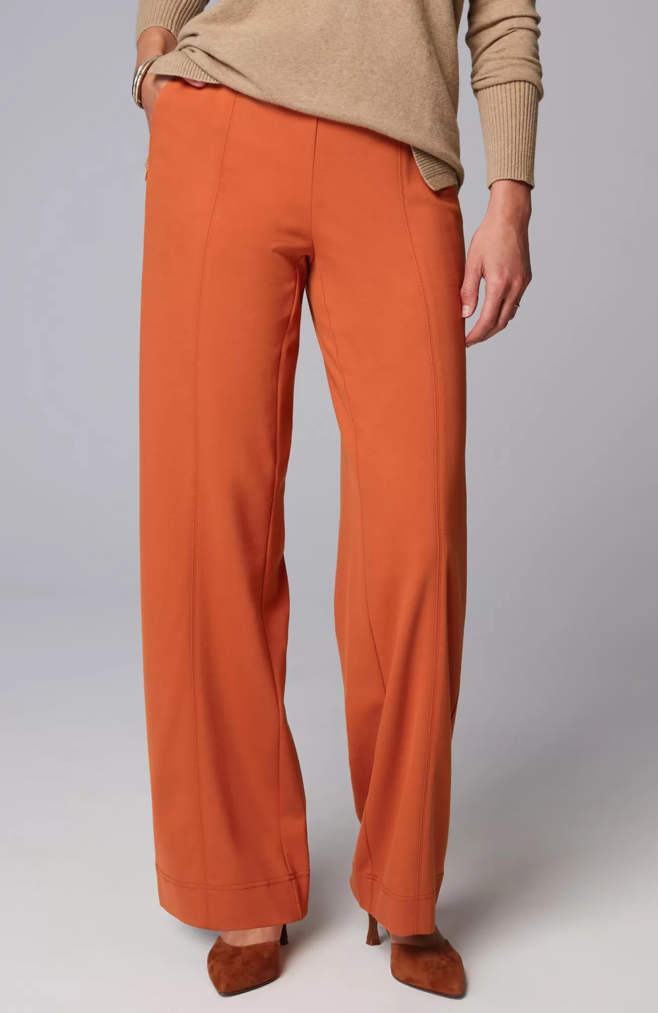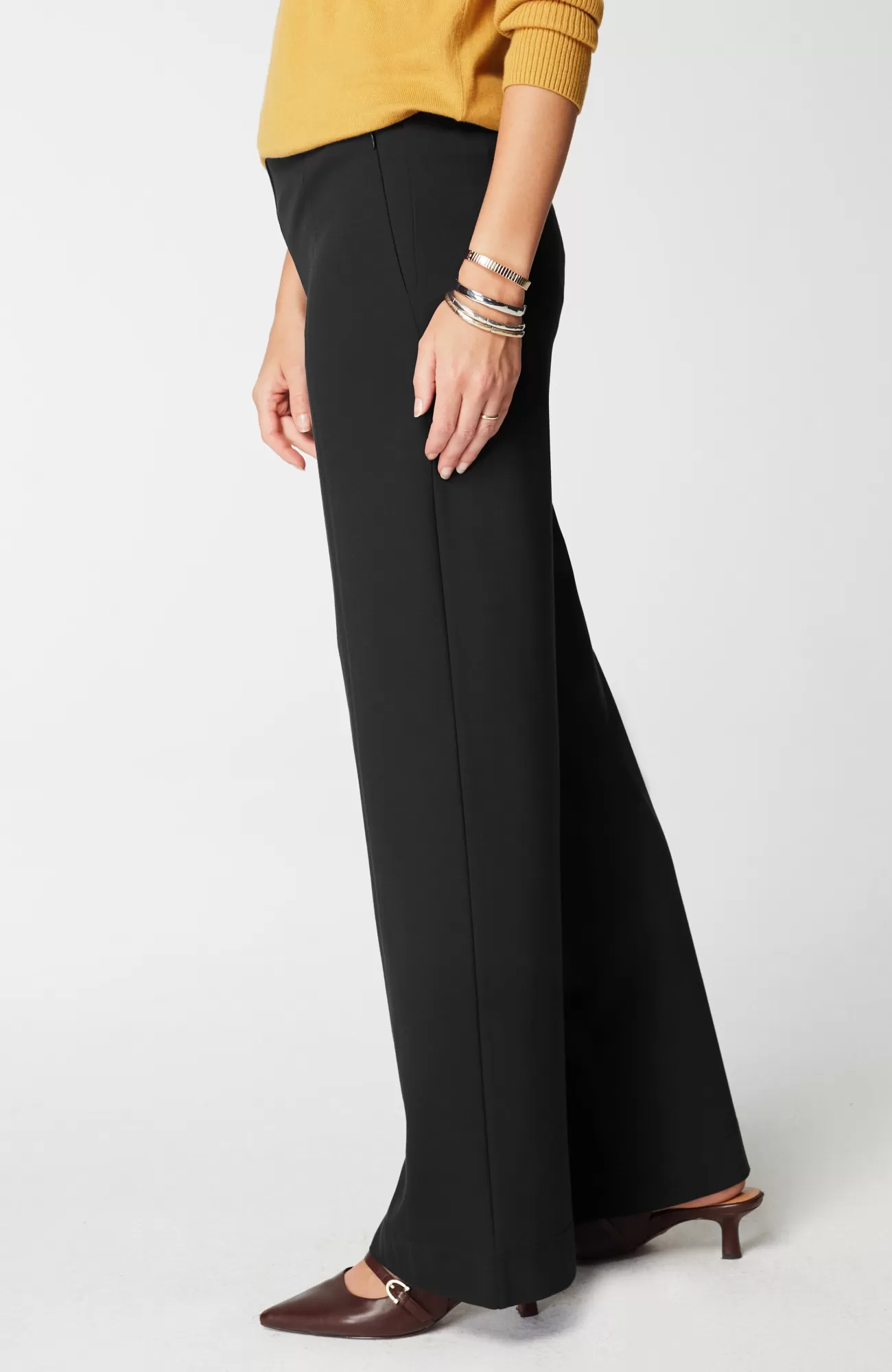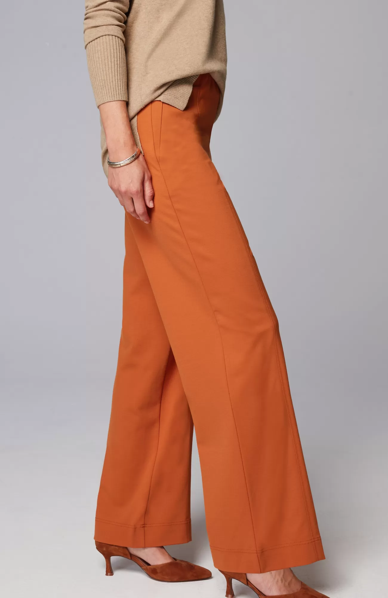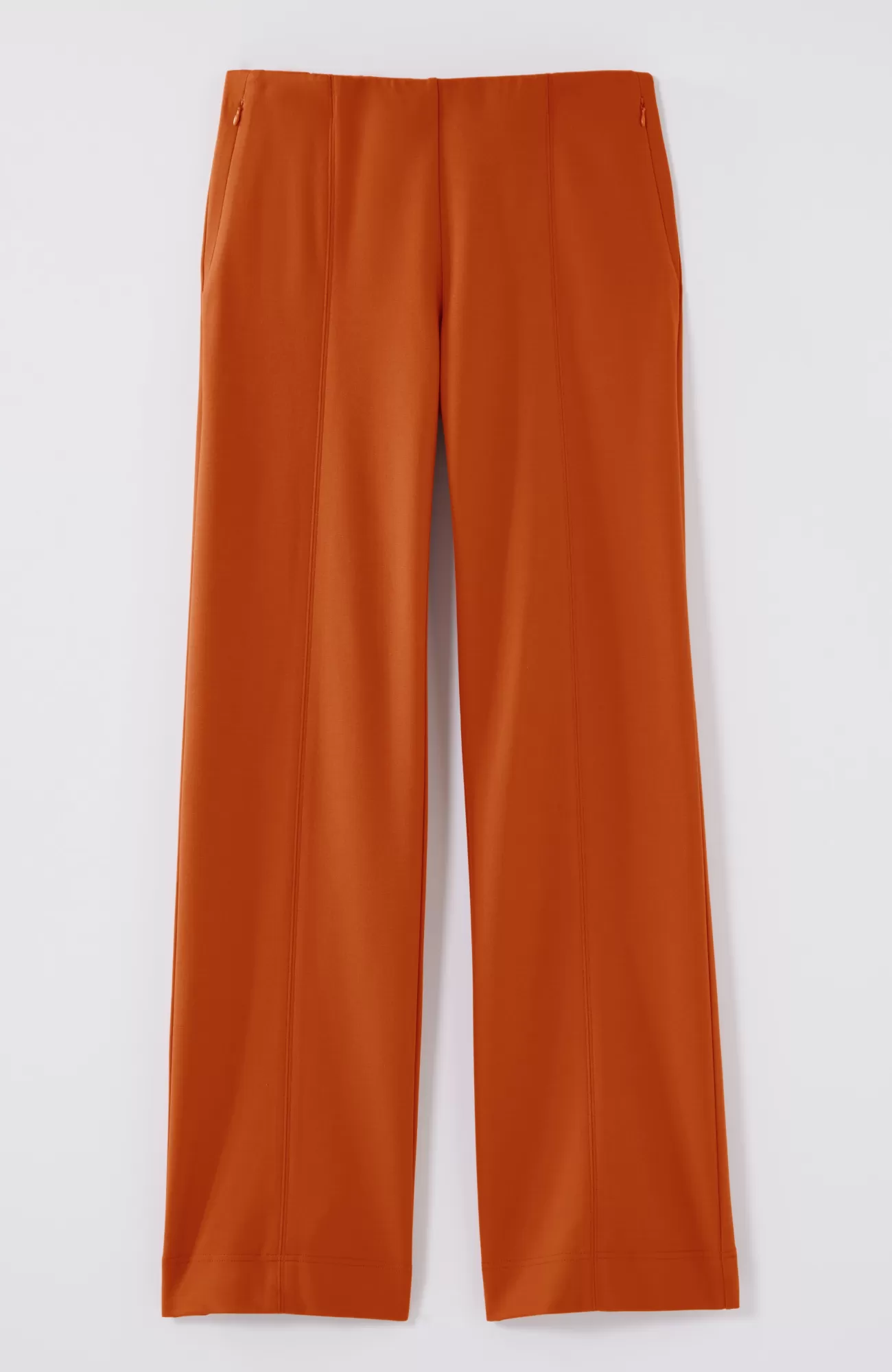 We combined our smoothing, comfortable, holds-its-shape ponte knit fabric with a full-leg design to create a versatile pair of pants that go wherever you do. A flat elasticized waist and great stretch add extra comfort. Angled front pockets with invisible zipper, back welt pockets and back darts add a tailored finish. Saddle-stitch center seam.
