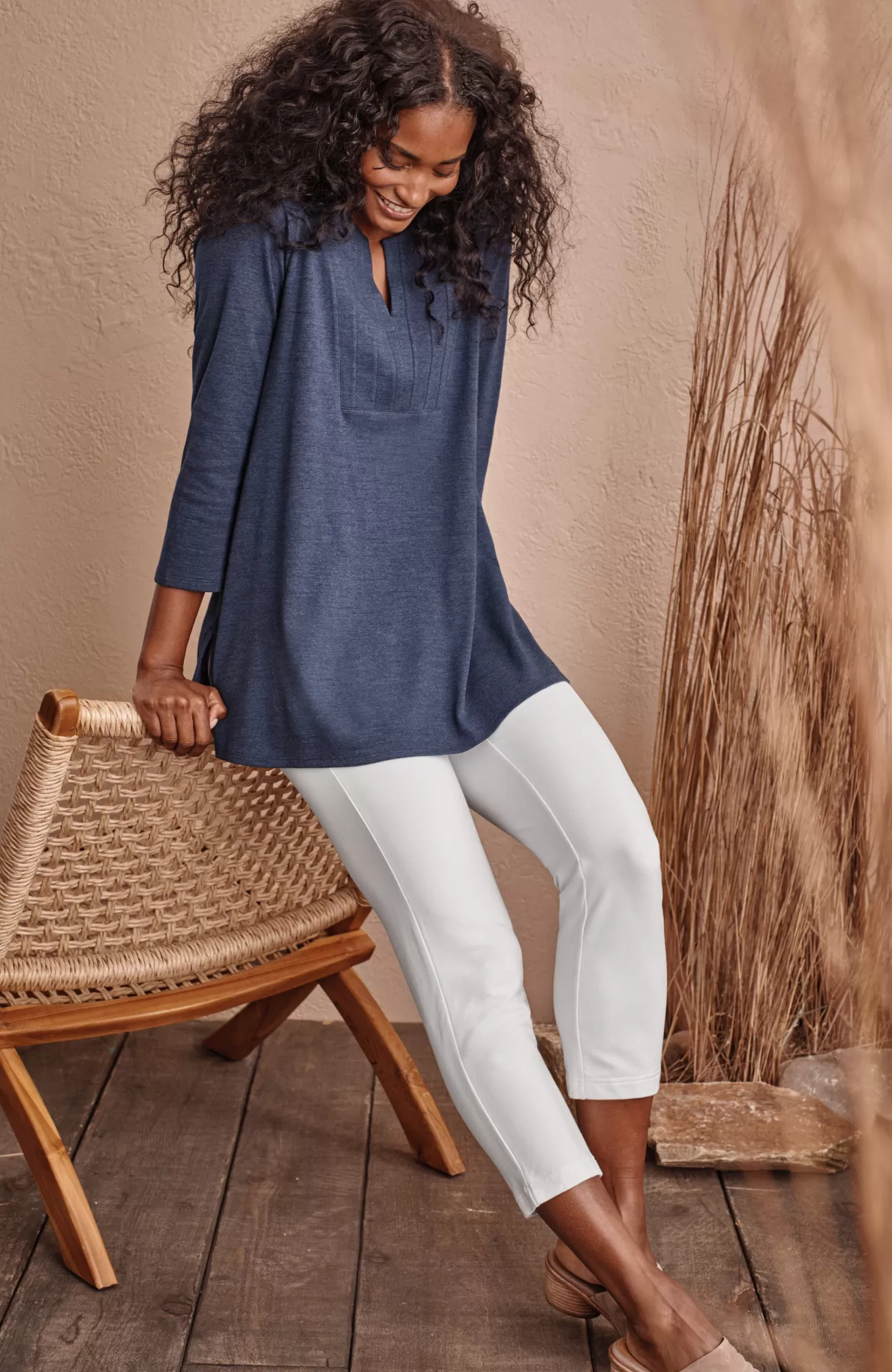 Anyone who has an affinity for softness will feel right at home wherever she wears these crops. Made from a special blend of pima cotton and modal rayon with a touch of stretch, they’re ultrasoft and always comfortable. We designed them in a slightly longer cropped length that’s perfect for warmer days. We love them with long-sleeve tees, tunics and long shirts. Elasticized waist. Angled front pockets. Back darts. Catalog & Online Exclusive