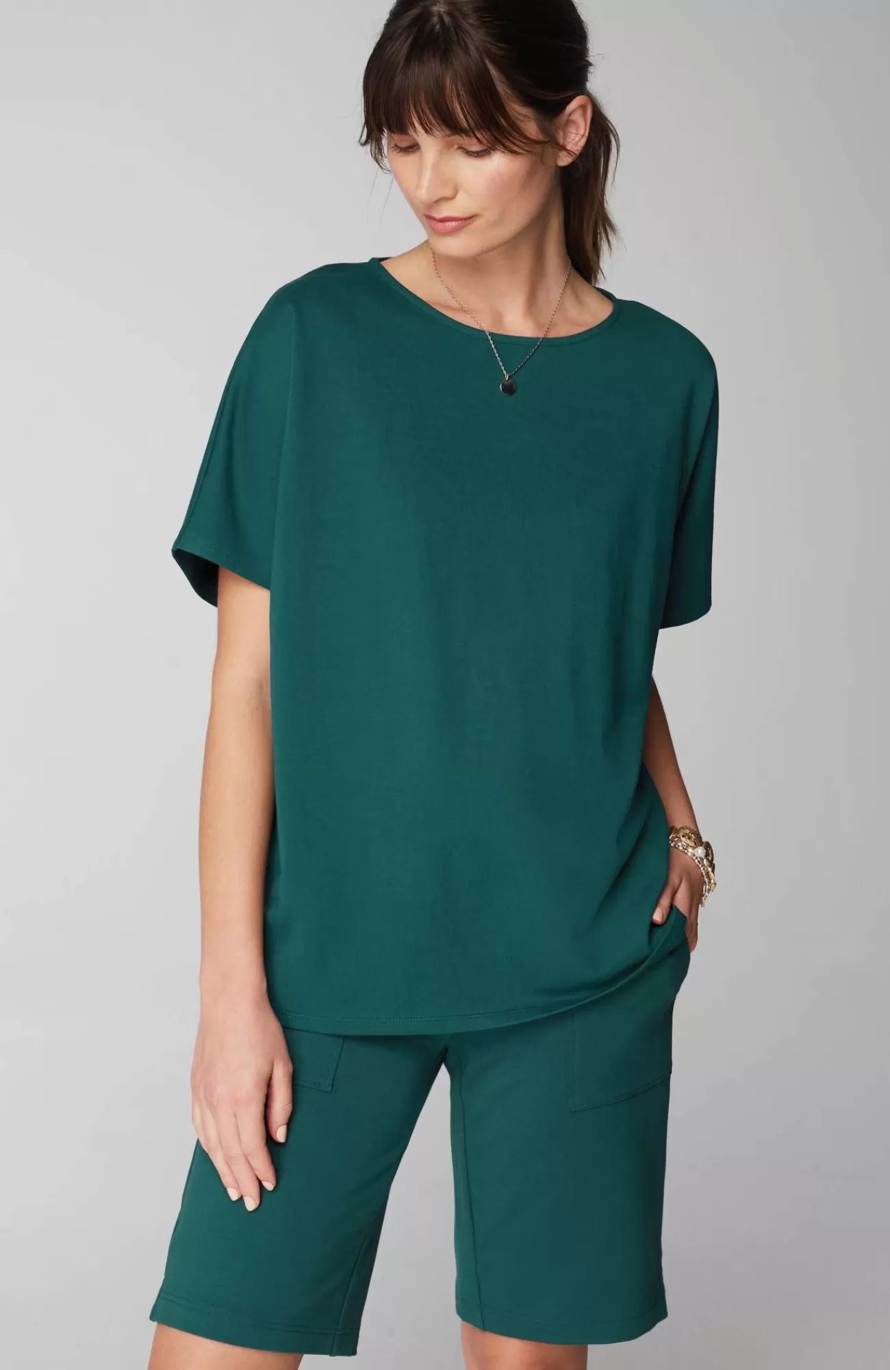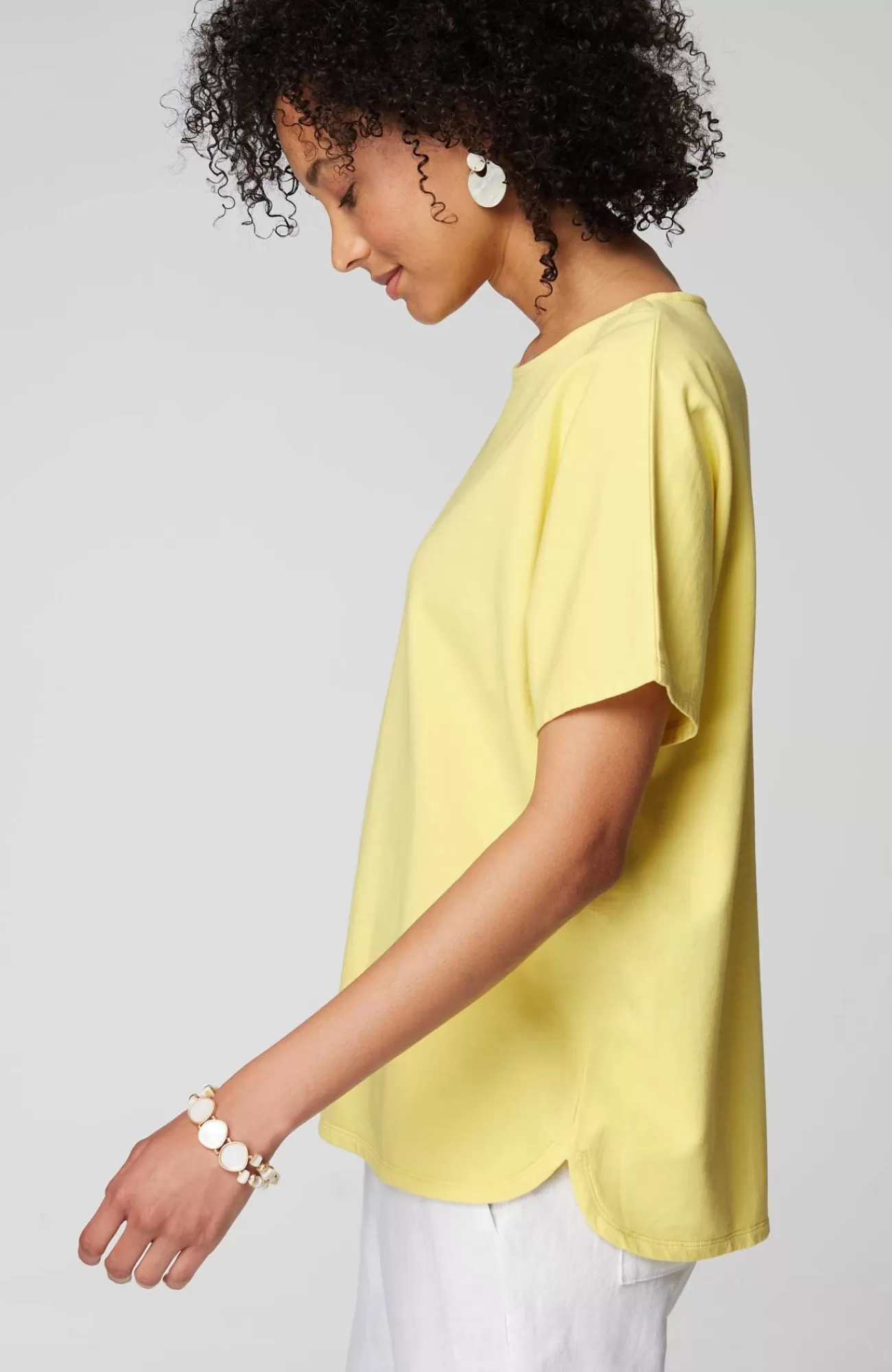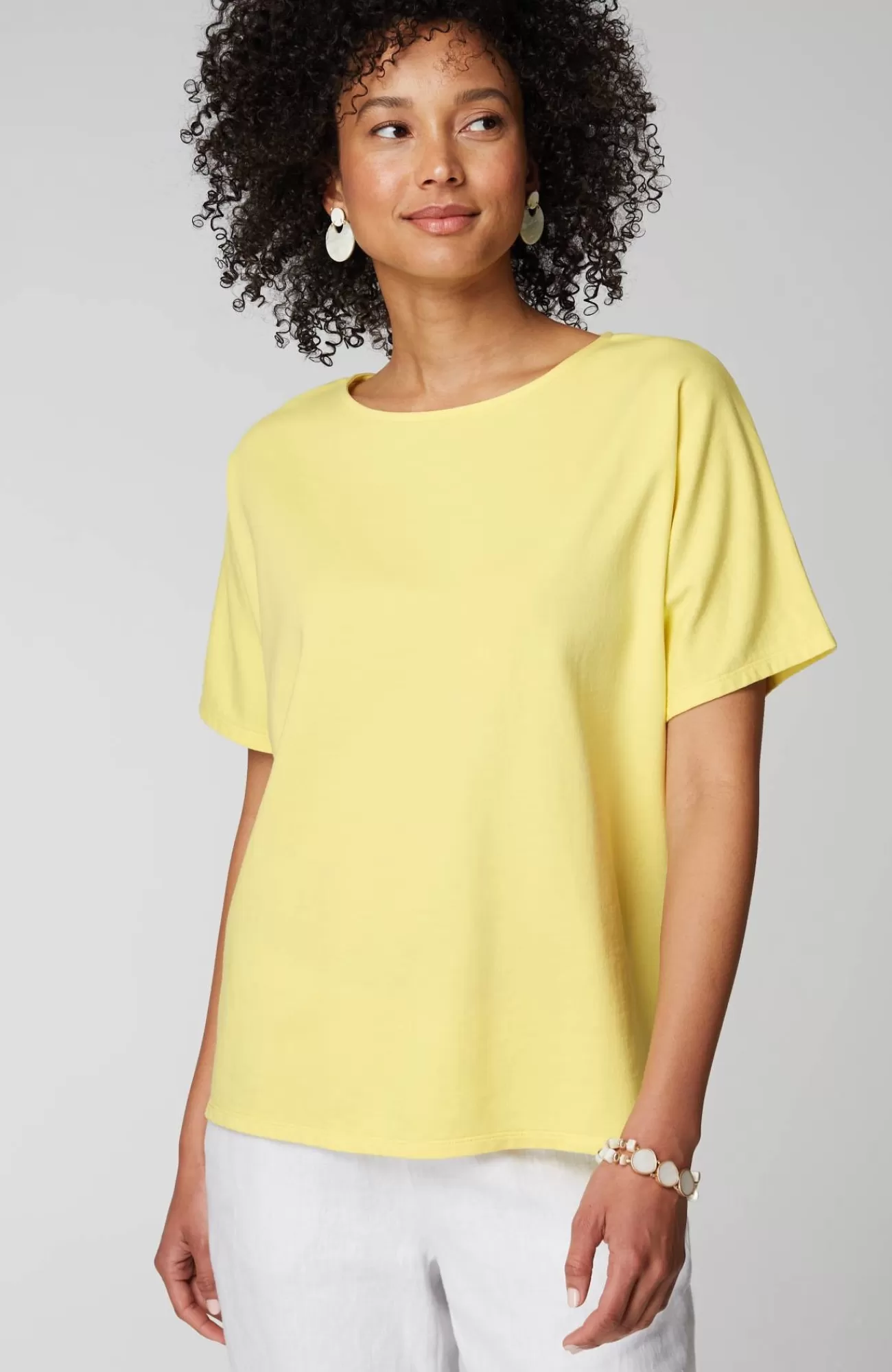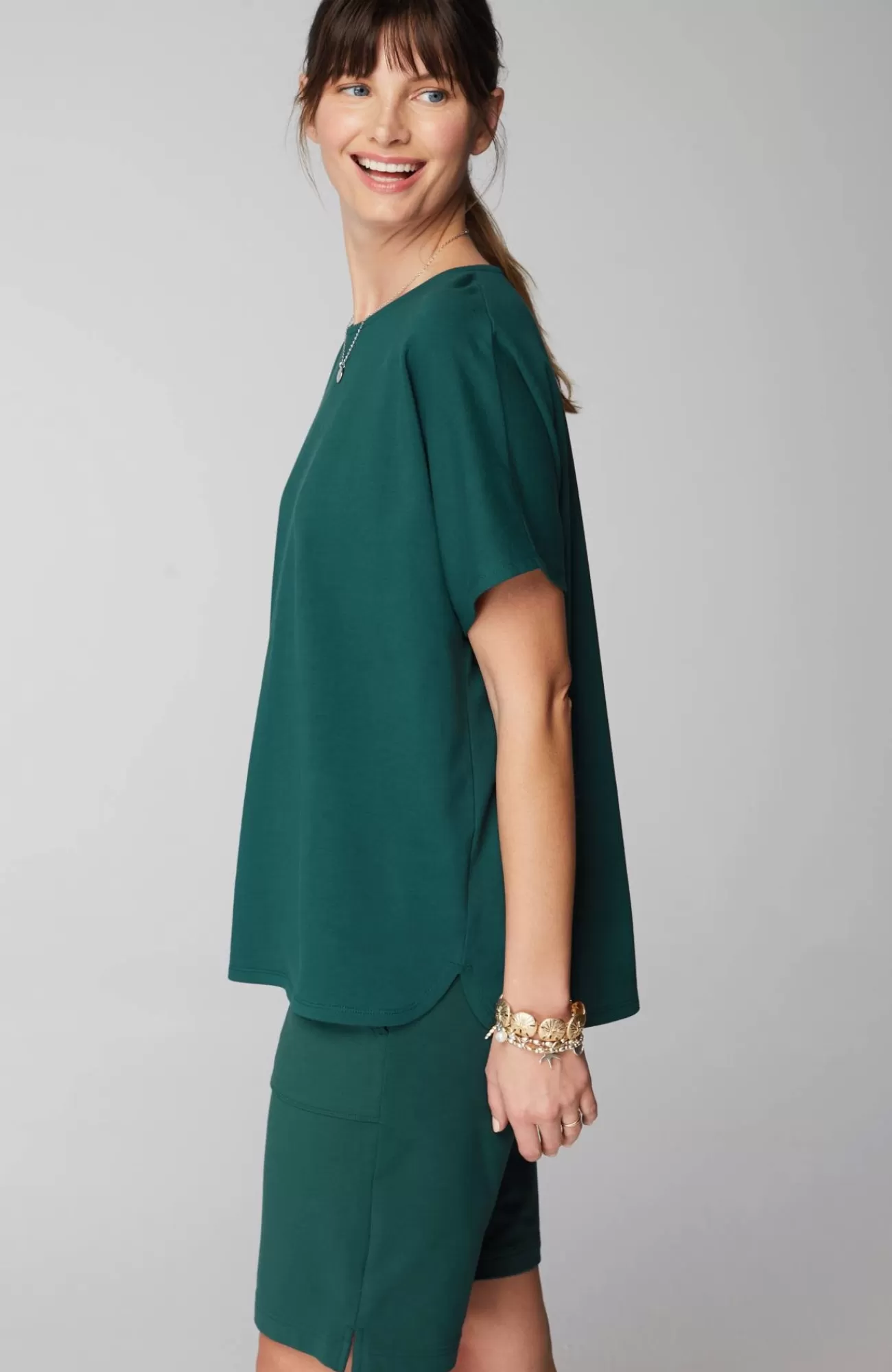 Quite possibly the perfect everyday top. A relaxed fit, easy dolman sleeves, a flattering curved hem and color that's made for the season. Plus, it's made with organically grown cotton so it looks as good as it feels.