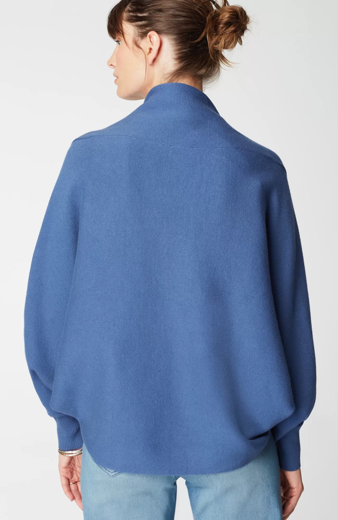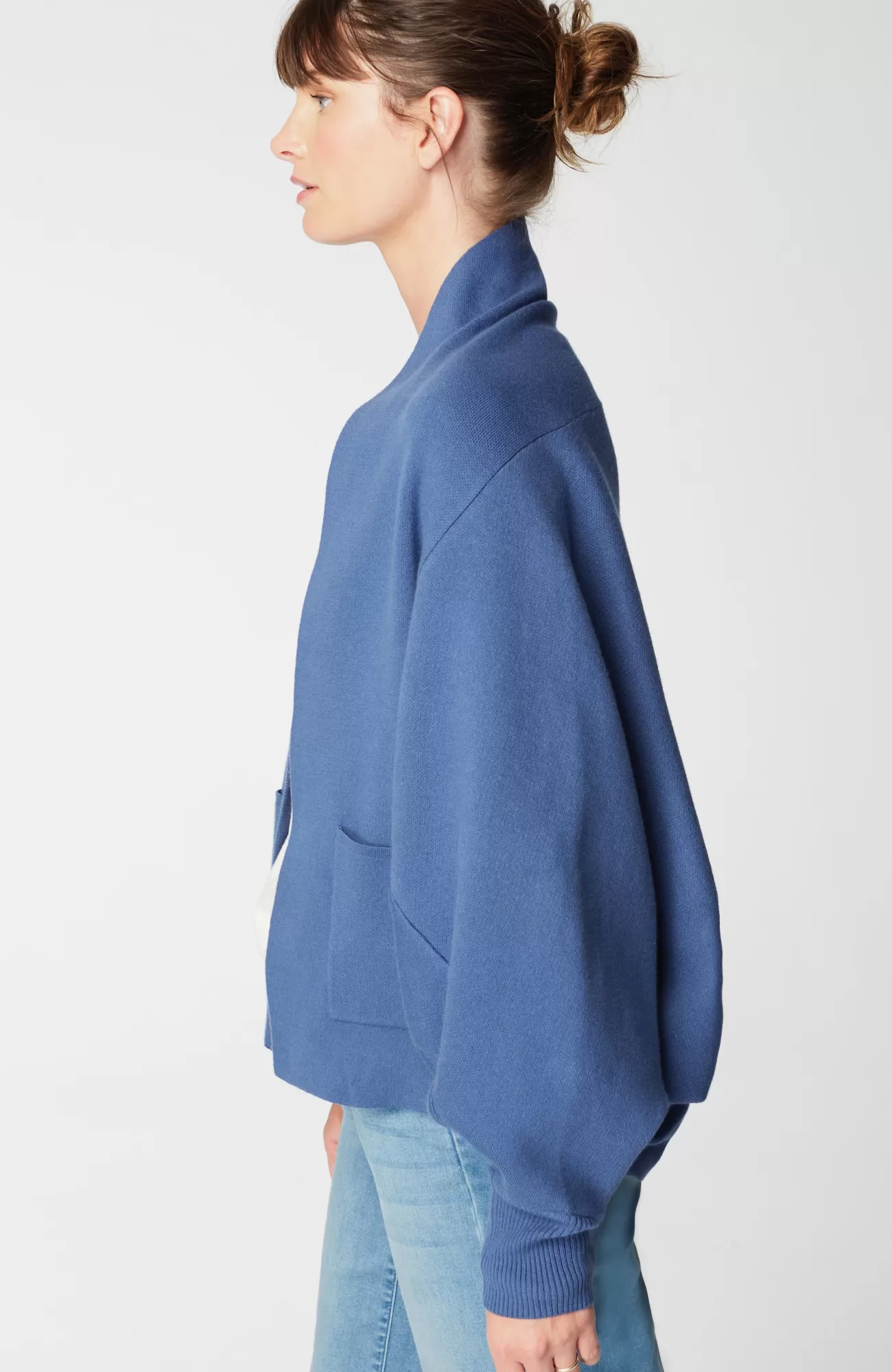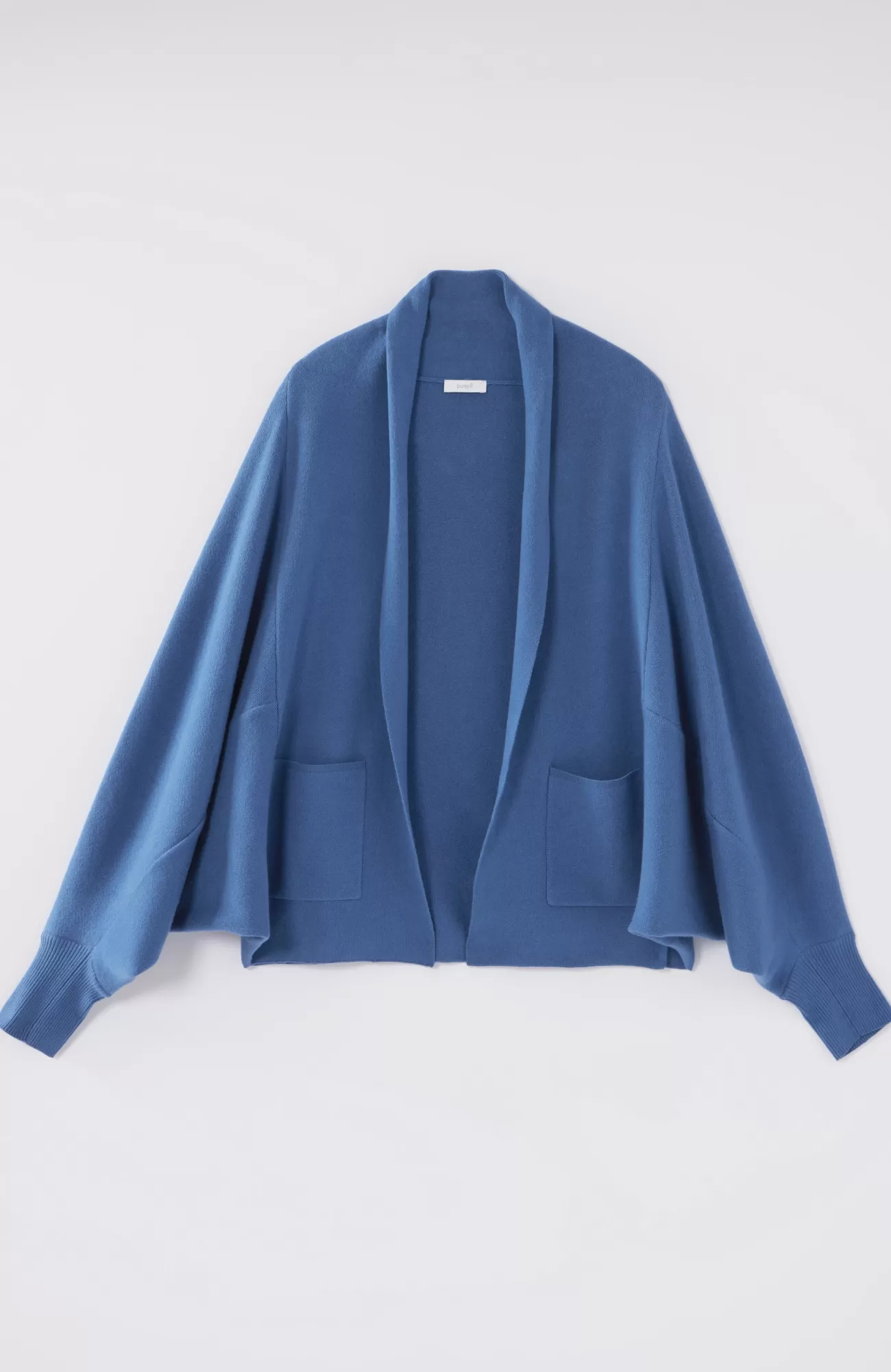 No fall wardrobe is complete without a cardigan, and we love this one for its beautiful dolman sleeves and rich blue color. It features a more substantial double-knit fabric—perfect for layering from season to season. Shawl collar. Front patch pockets. Ribbed cuffs.