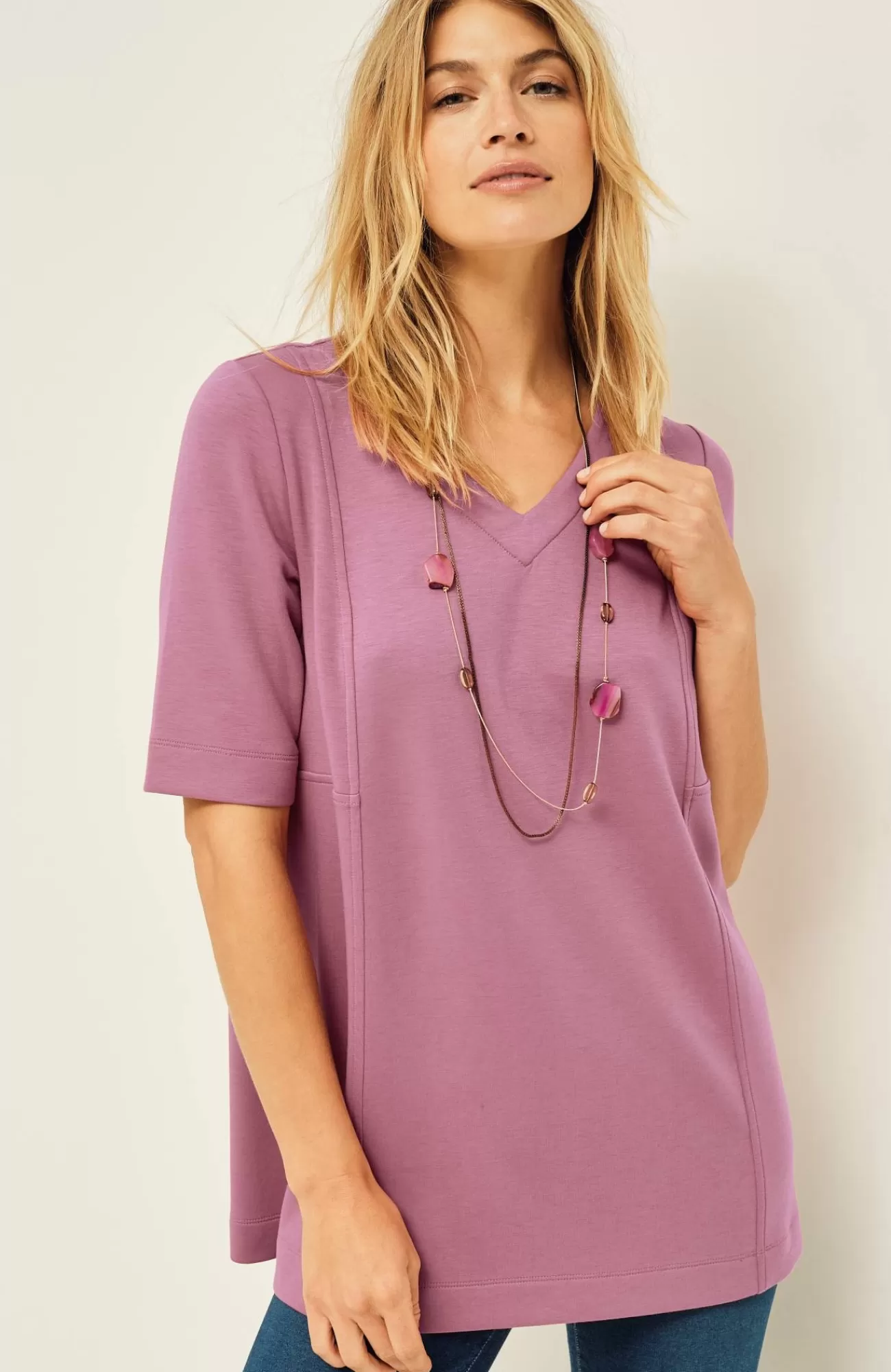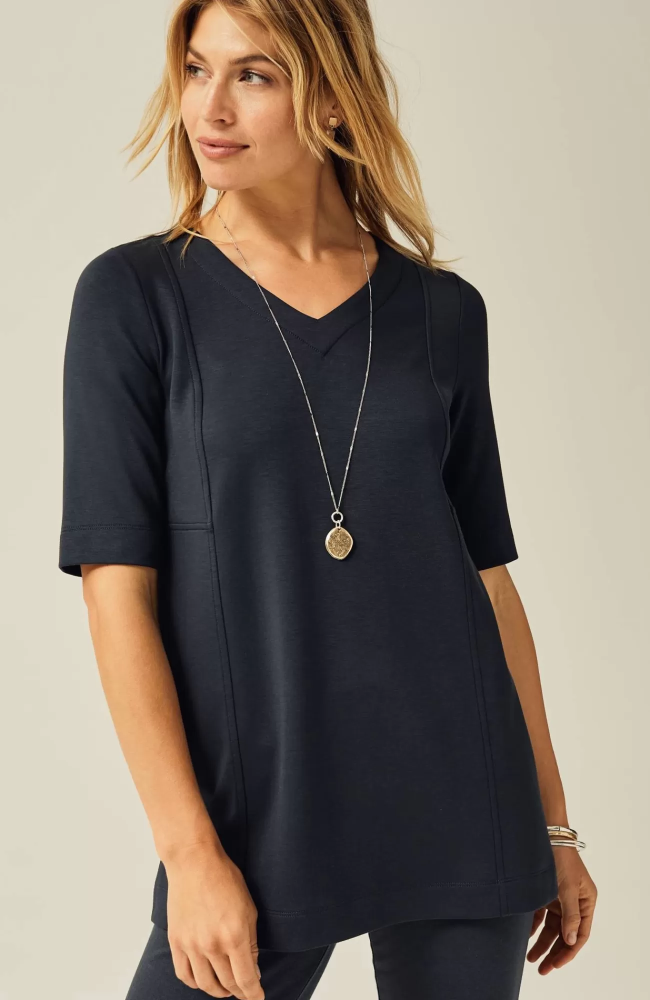 Our A-line tunic was designed with a double-knit fabric that feels slightly more substantial for this season into the next. Seams and topstitching finish off this everyday style. Pair it with our Pure Jill Affinity slim-leg pants for a made-to-match look. V-neckline.