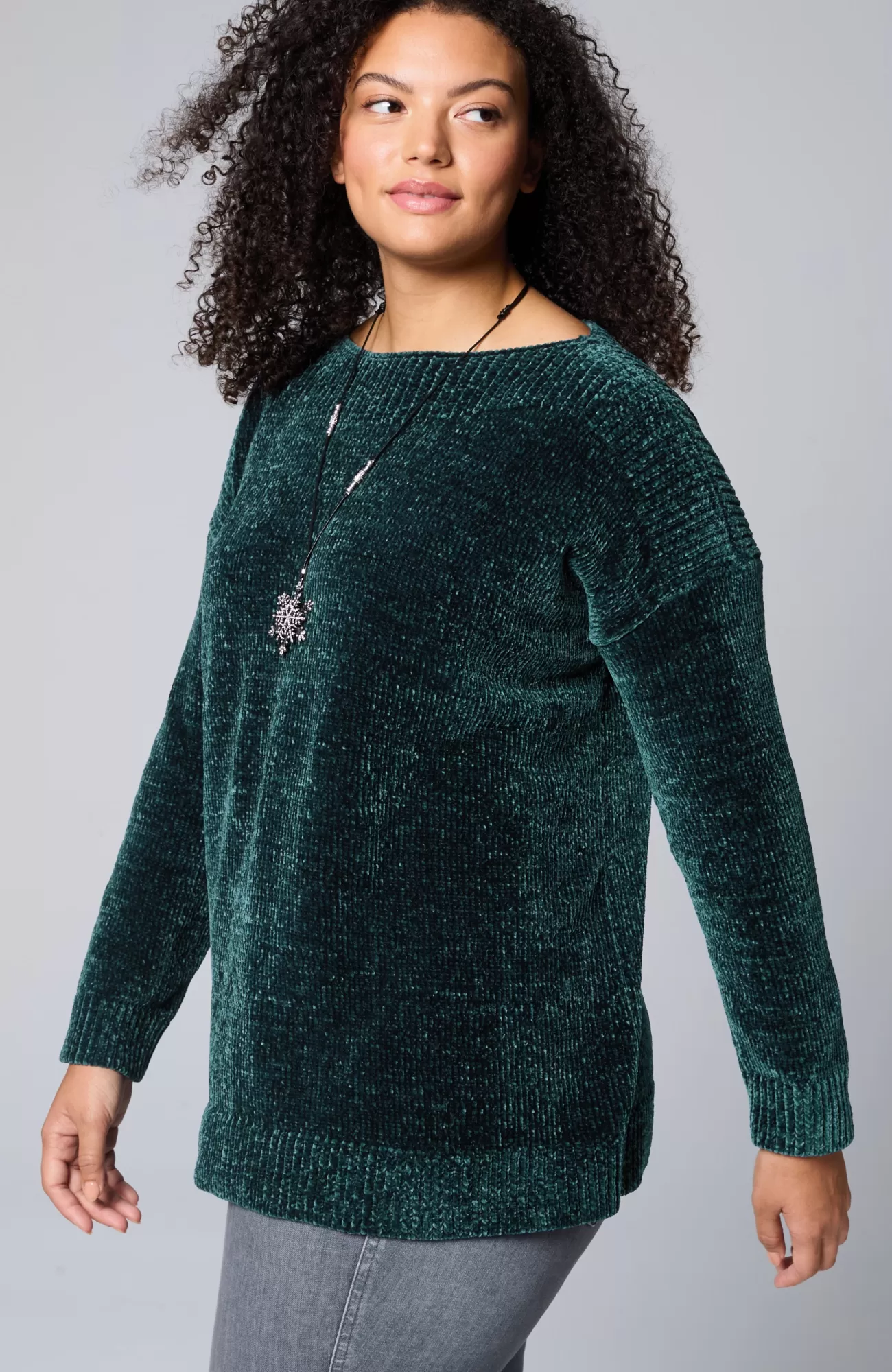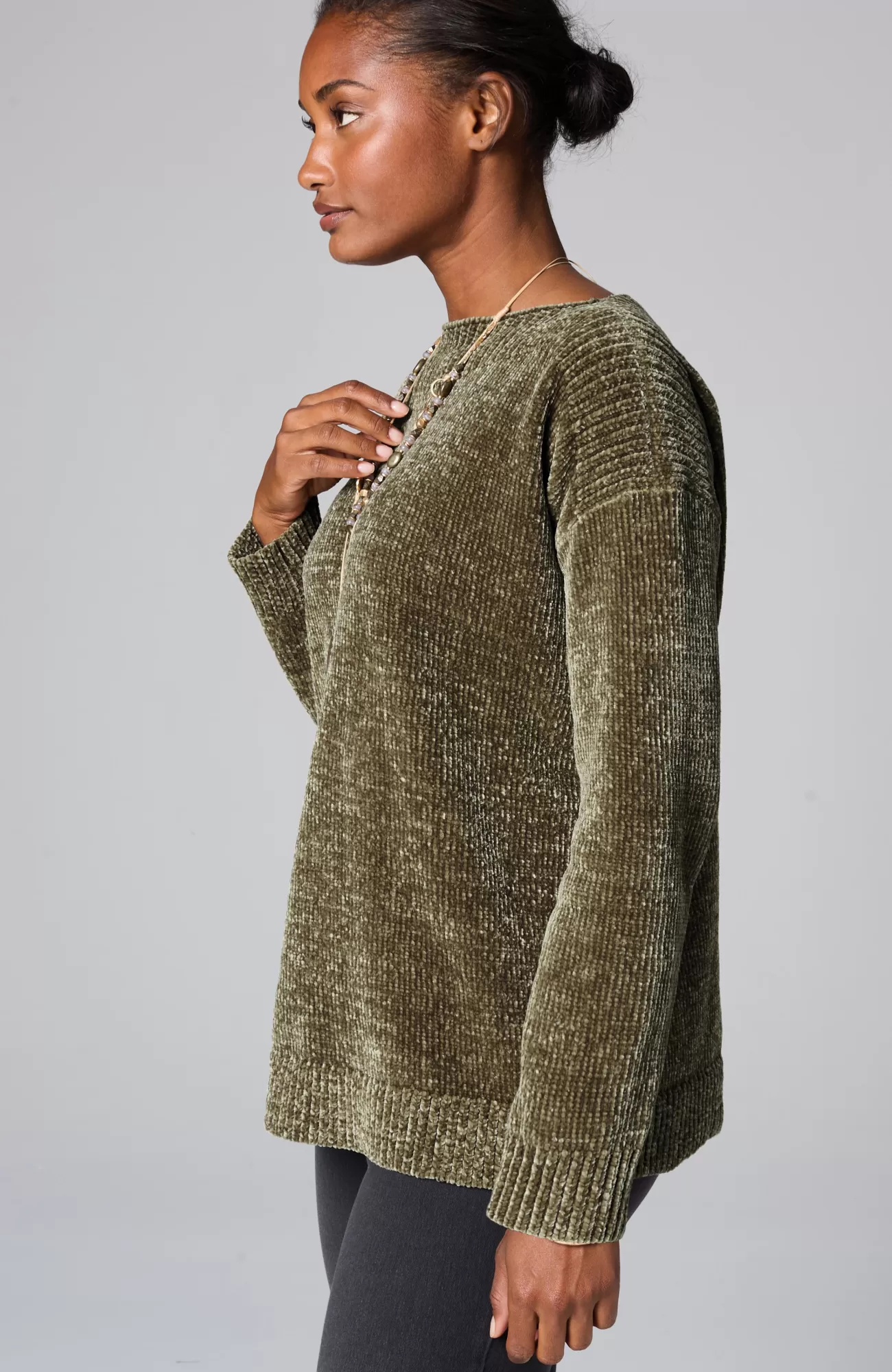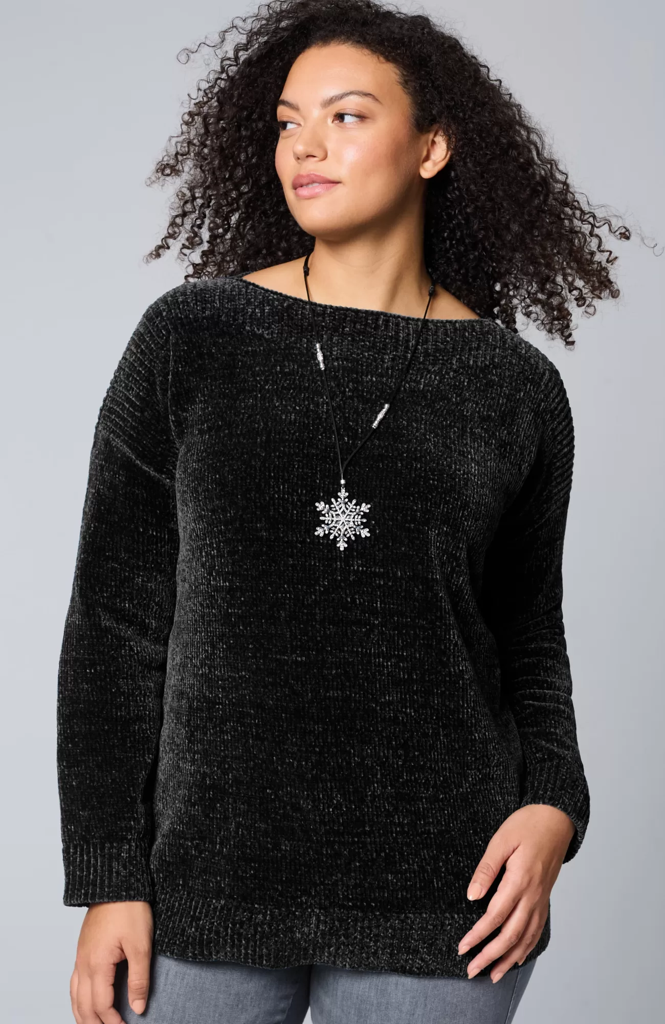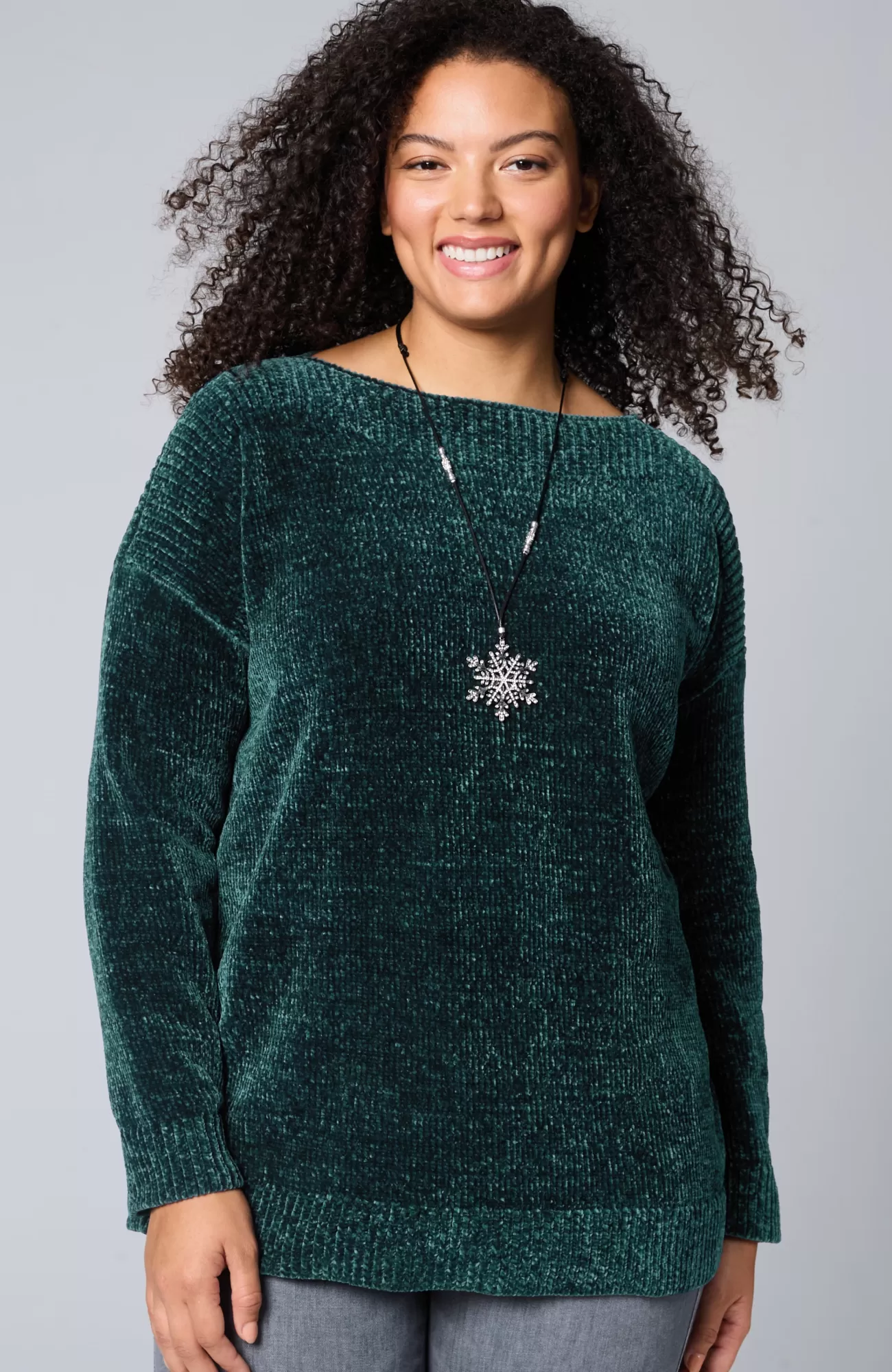 Sumptuous chenille gives this pullover softness that can be seen and felt and a beautifully subtle sheen. We also love how the ribbing at the yoke complements the flattering boat neckline. Finished with ribbed cuffs and hem.
