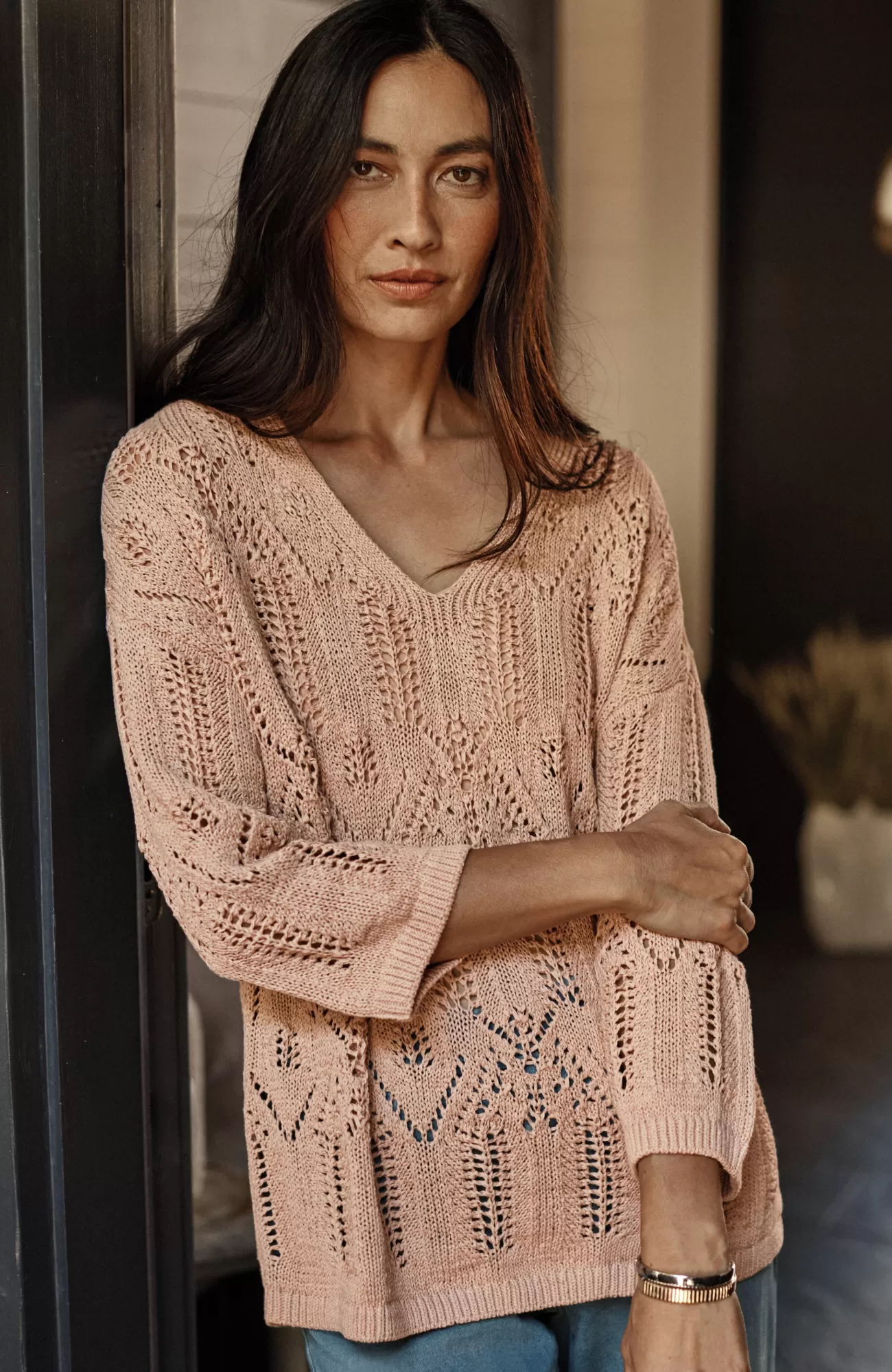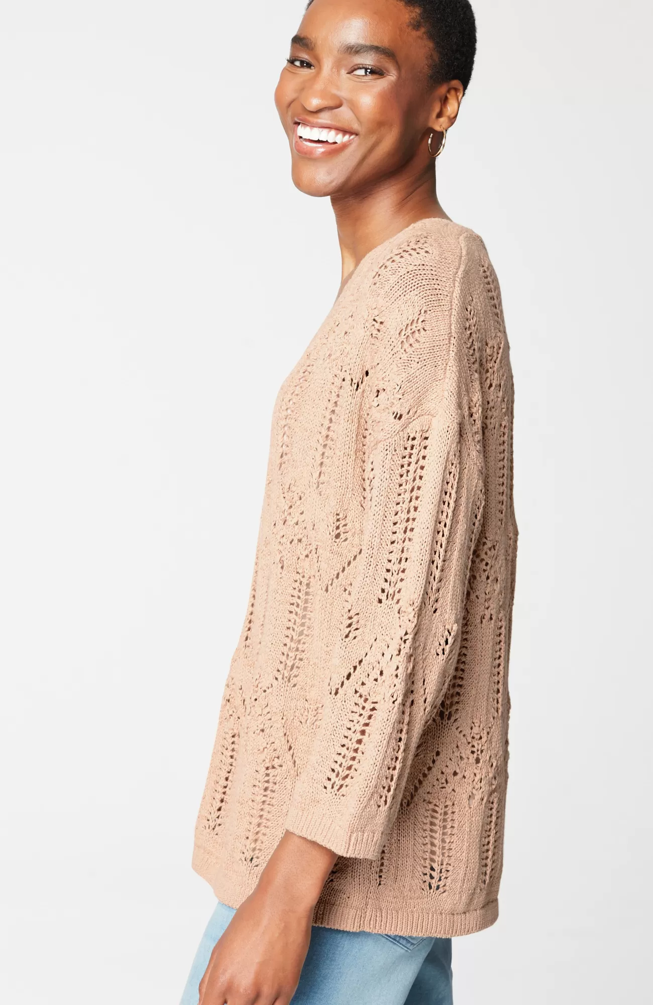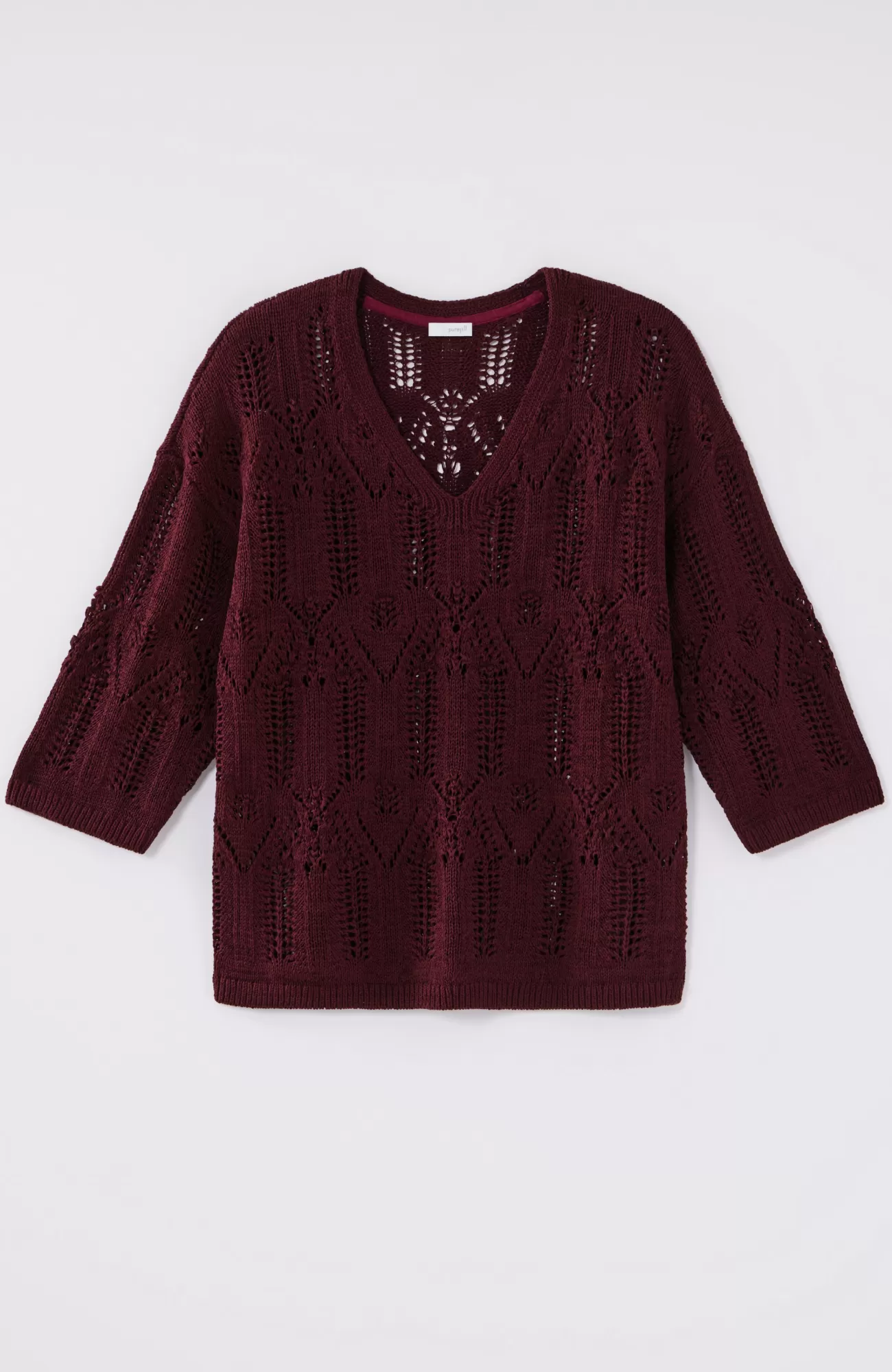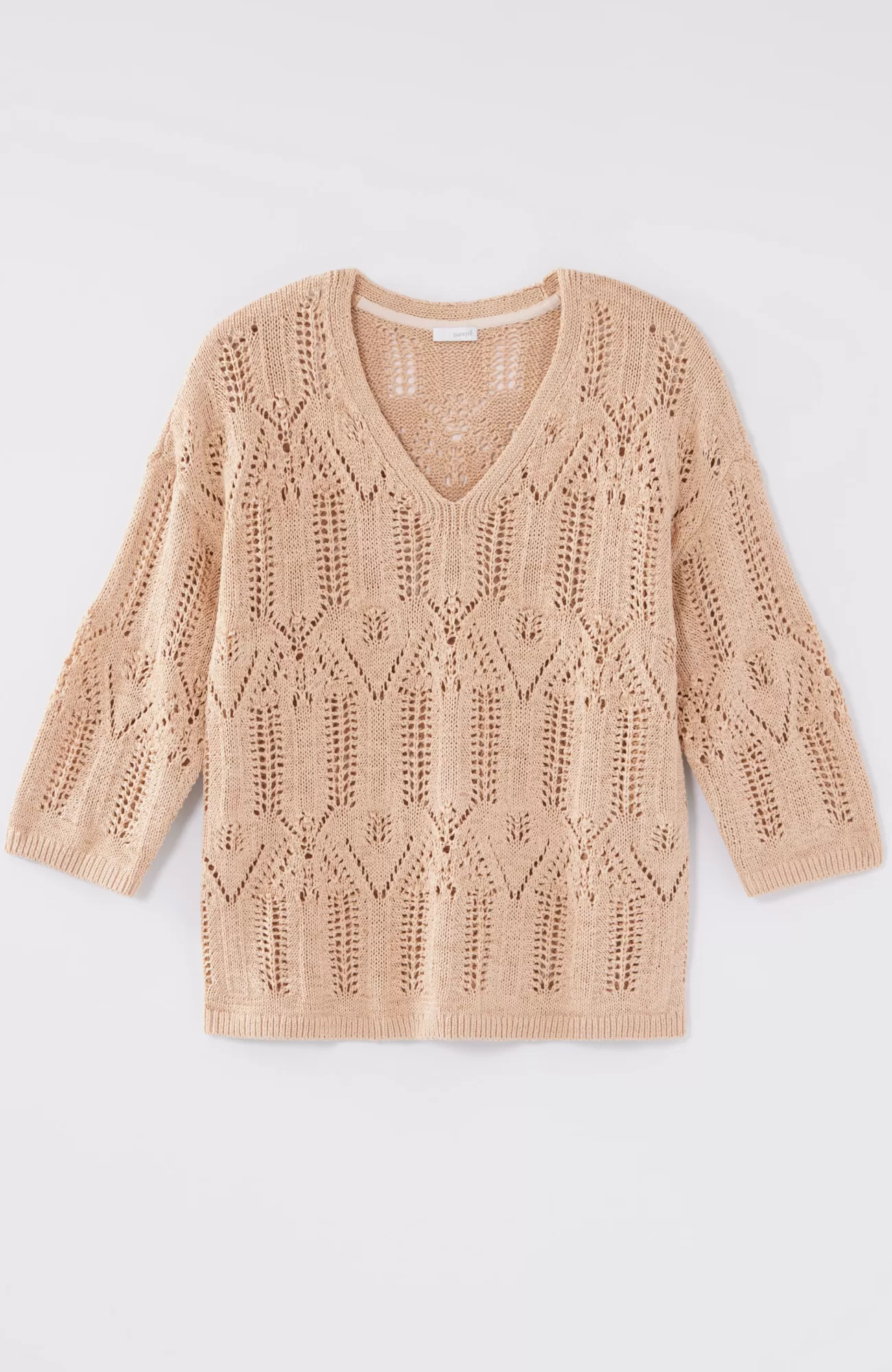 Exclusively part of our limited-edition Pure Jill Elements Collection. Our elegant V-neck sweater features a fine lace knit crafted from a rich cotton blend. The open texture makes it an ideal transitional piece—we recommend pairing it with our Pure Jill Layering Tank. Ribbed neckline, cuffs and hem.