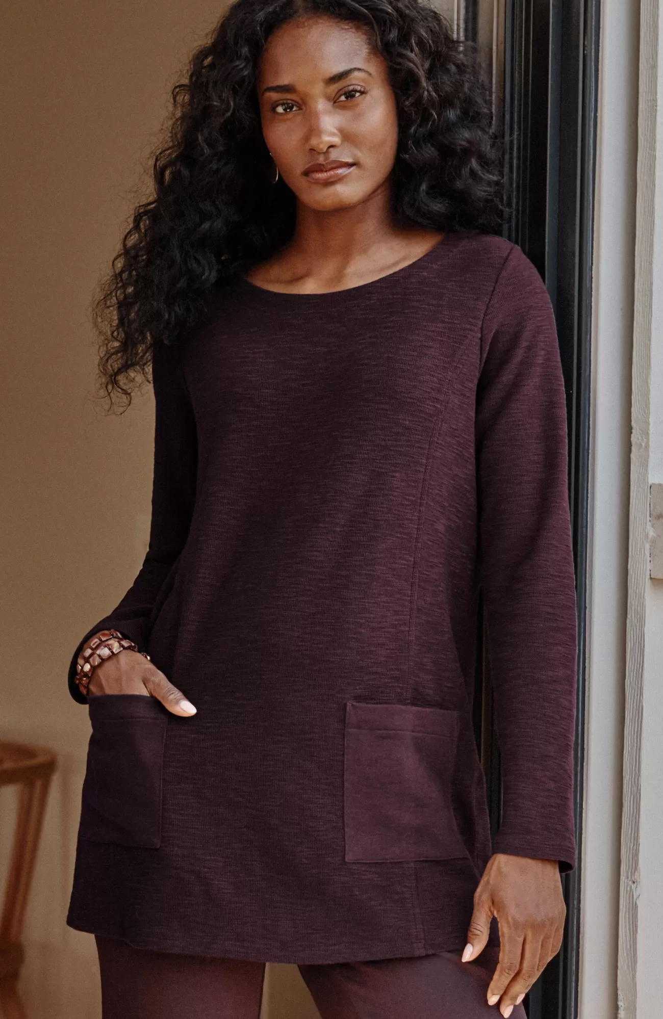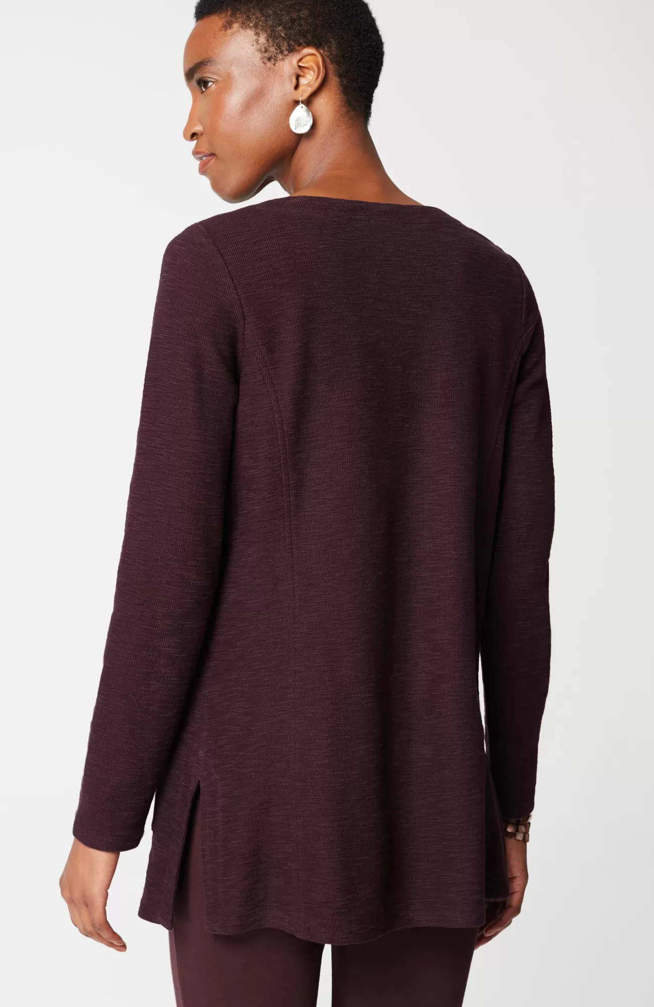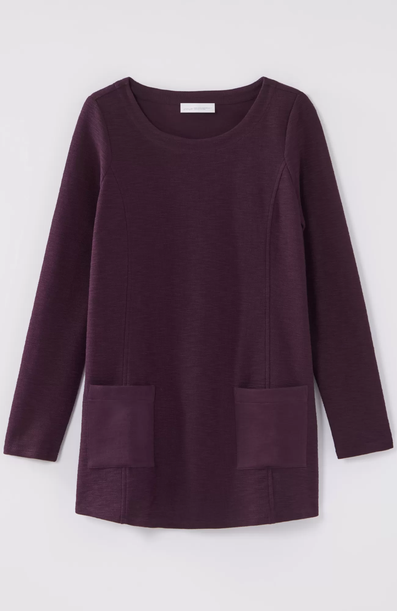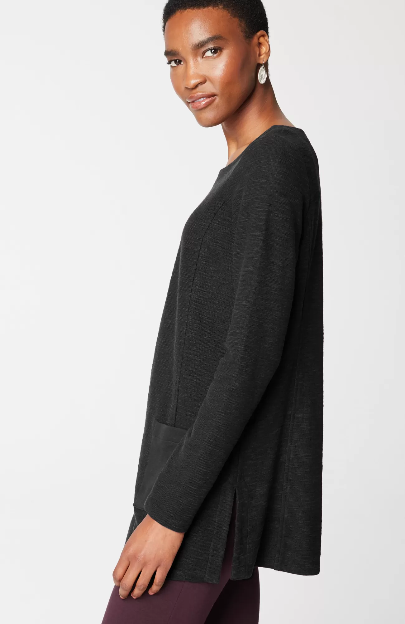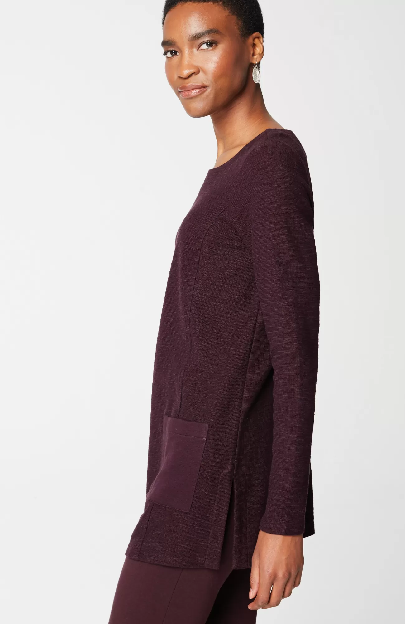 The supersoft, textural cotton fabric of this boat-neck top is breathable and promises all-day (and night) comfort. Thoughtfully placed patch pockets. Princess seams. Side vents.
