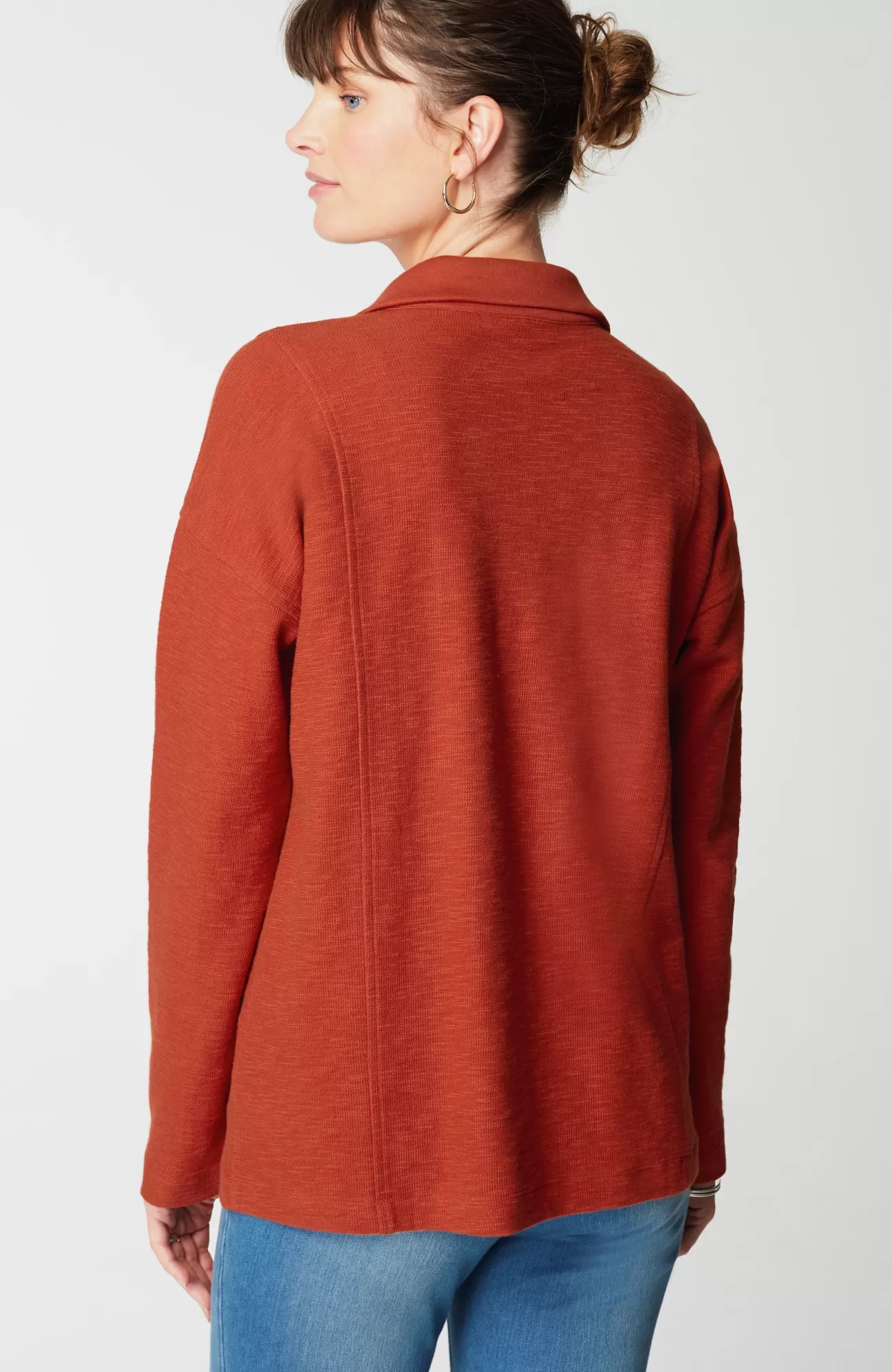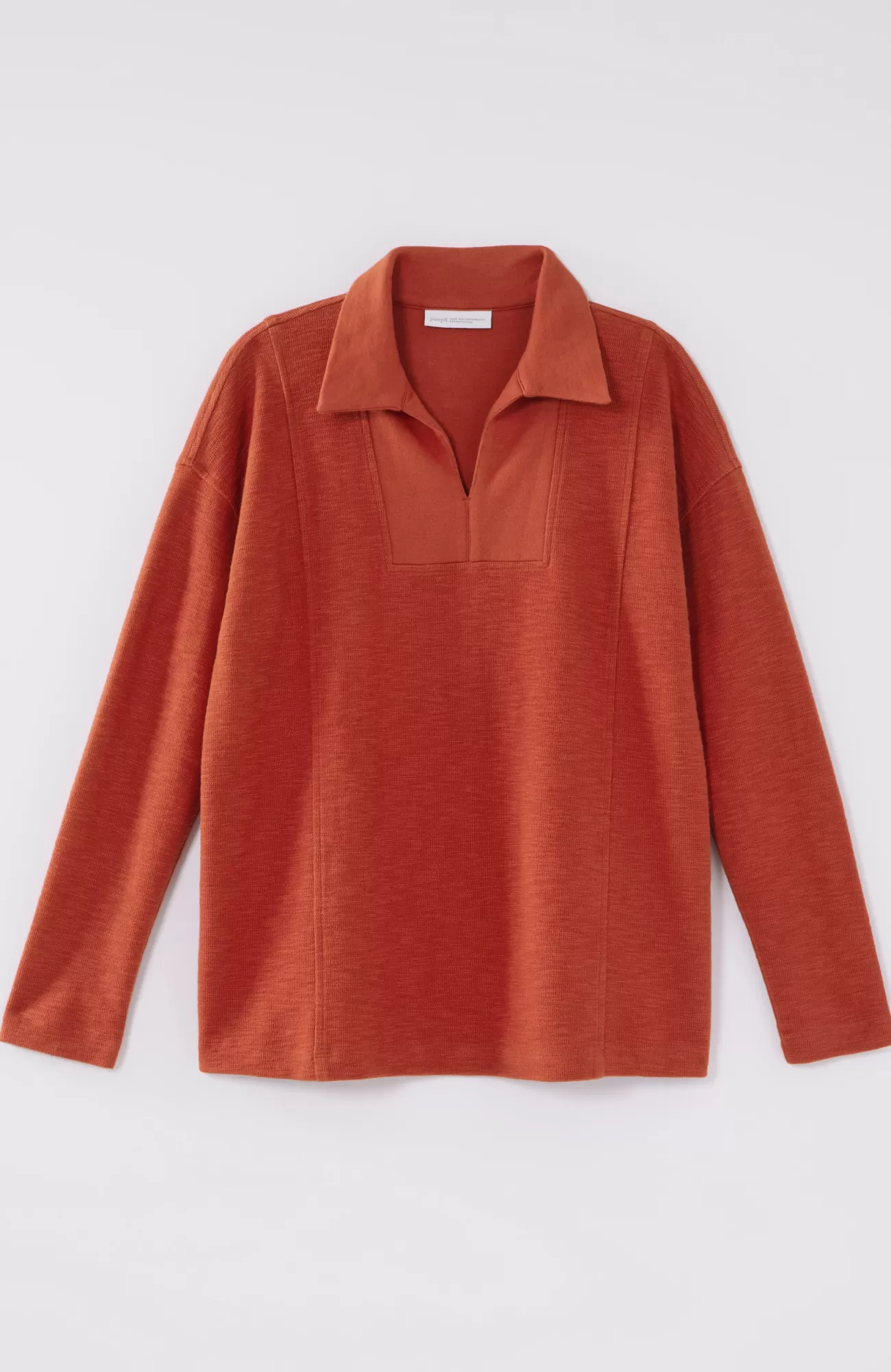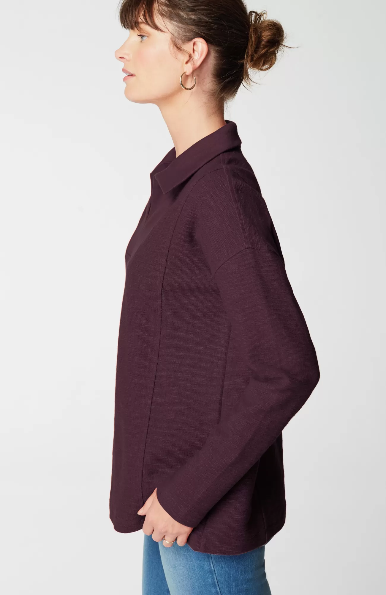 All the “it” factors you look for in a top: sumptuously soft fabric, a relaxed fit with princess seams for subtle structure, and an easy-to-style pullover design. We love the fold-over collar and split neck too—it gives this comfy piece an extra bit of polish.