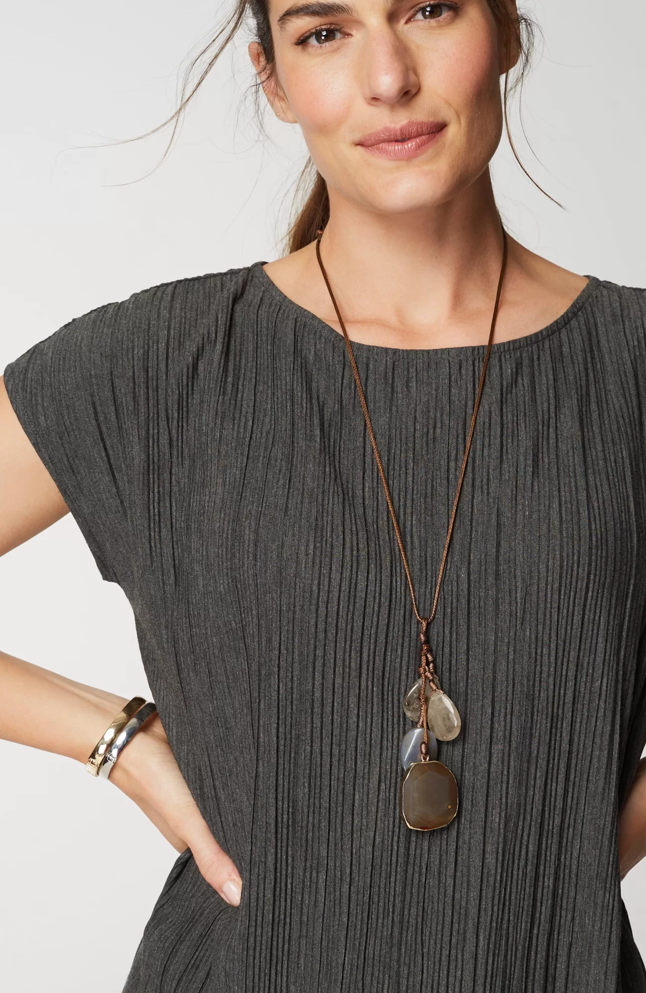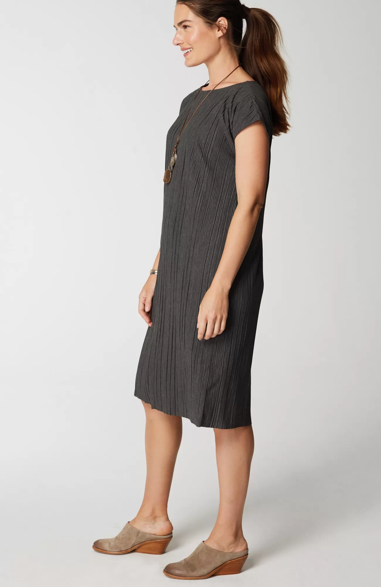 Exclusively part of our limited-edition Pure Jill Elements Collection. We created this sheath dress with fine, allover pleats and supremely soft fabric containing LENZING™ ECOVERO™ fibers. The manufacturing of LENZING™ ECOVERO™ Viscose fibers generates up to 50% lower emissions and water impact compared to generic viscose. Layer with our Pure Jill pleated knit duster for a made-to-match look. Unlined.