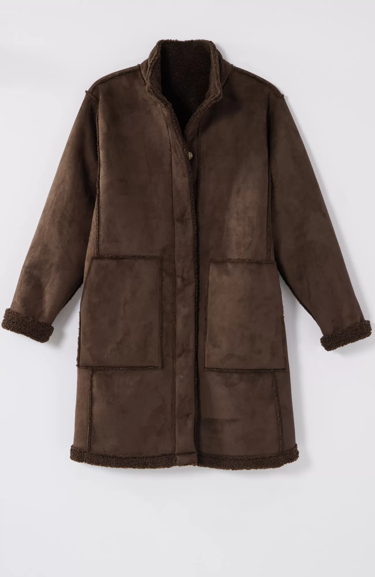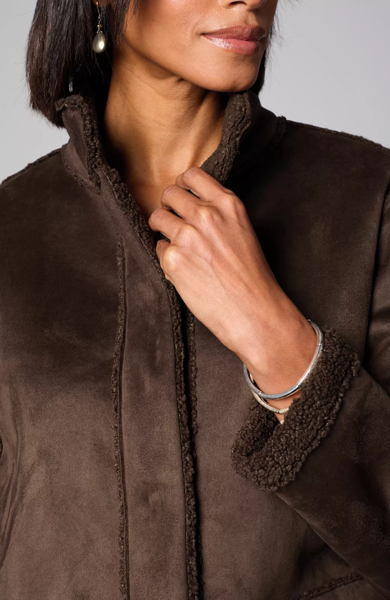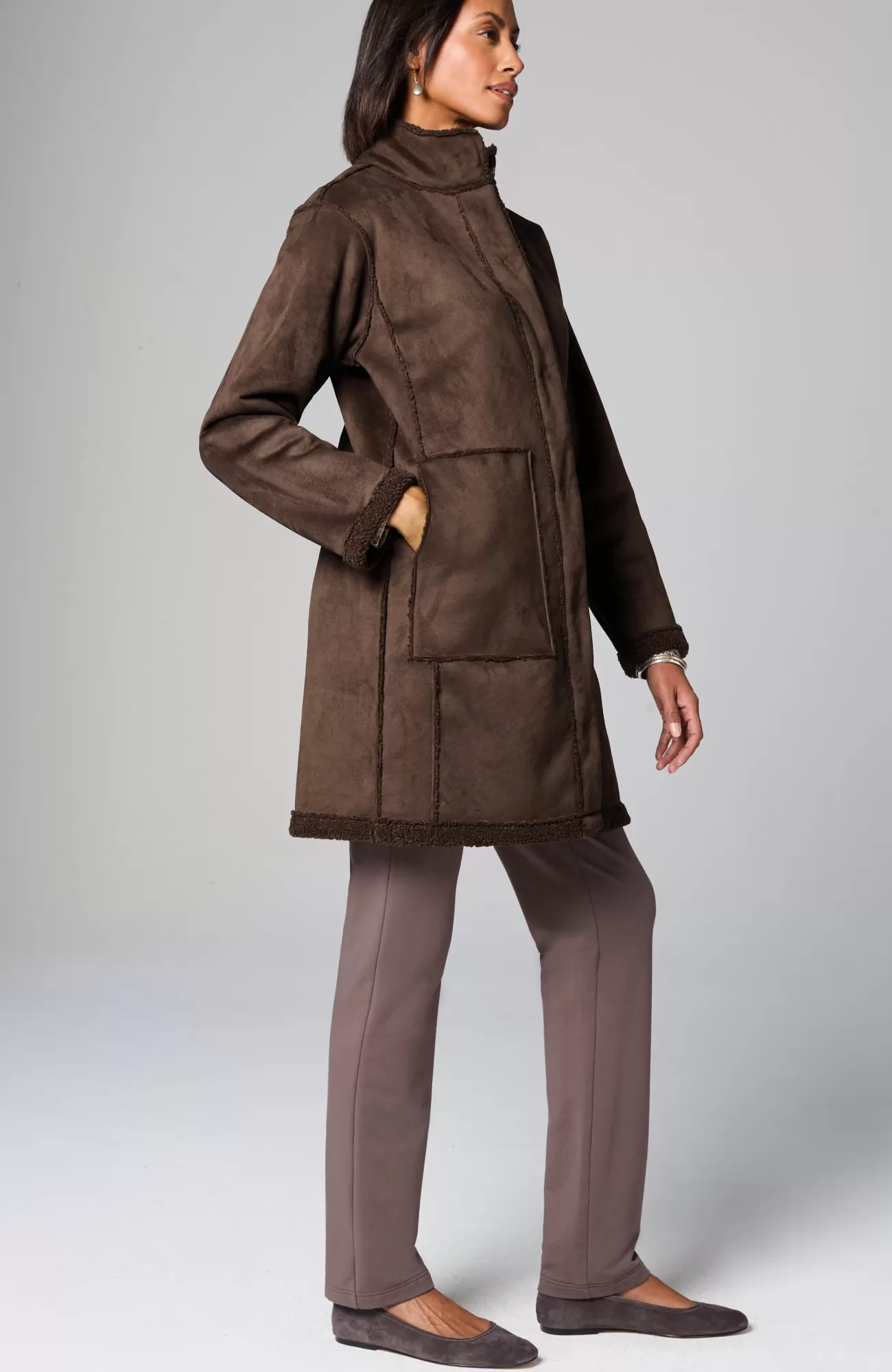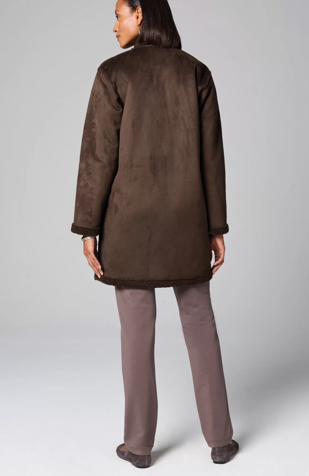 Exclusively part of our limited-edition Pure Jill Elements Collection. Reversible for twice the style: one side of our chic-yet-cozy coat has a smooth, faux-suede finish, while the other has a plush teddy texture. Stand collar. Hidden snap-front closure. Patch pockets on both sides. Unlined.