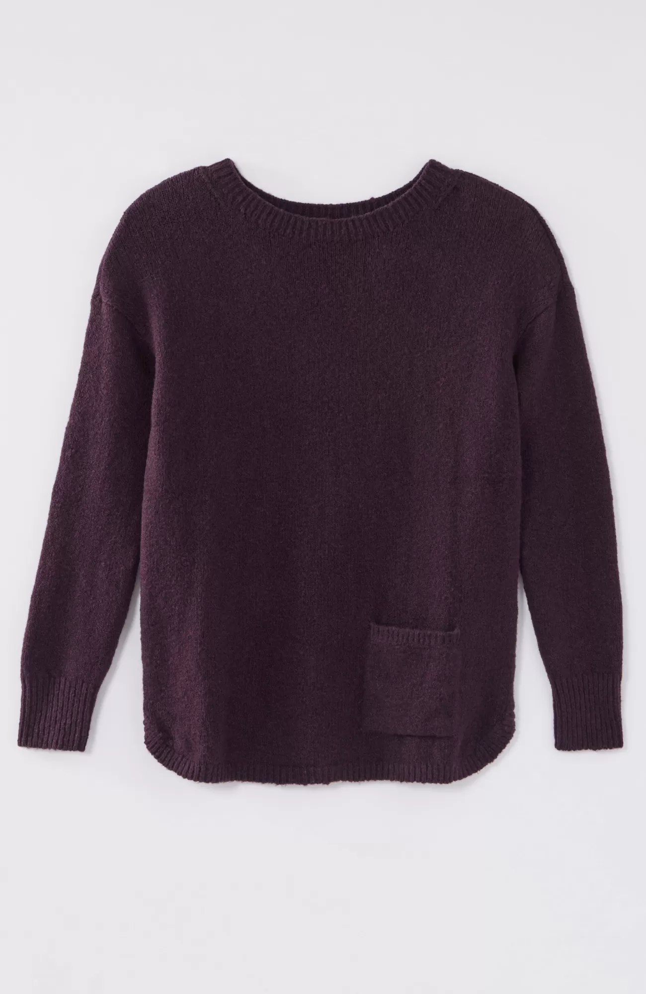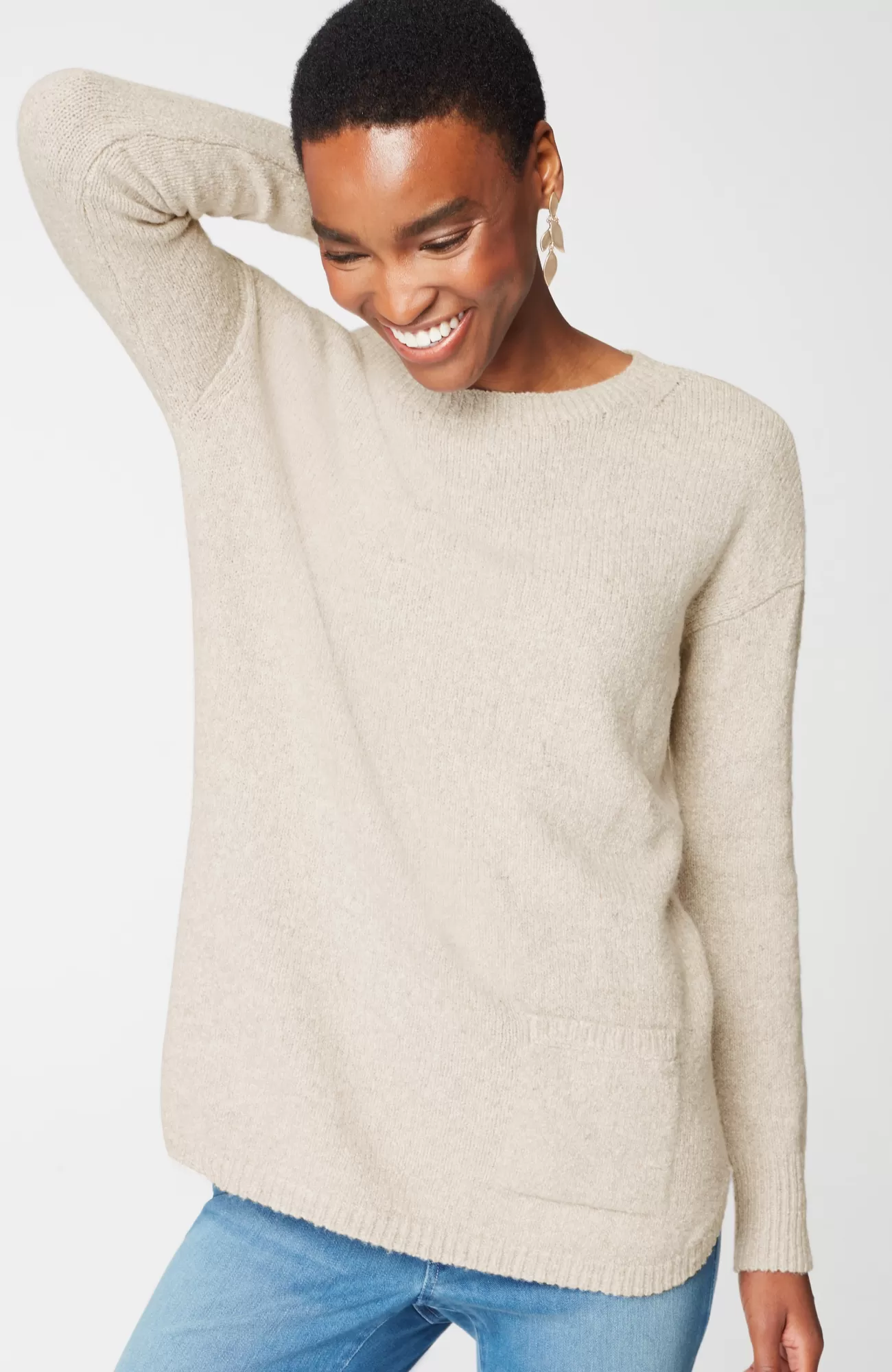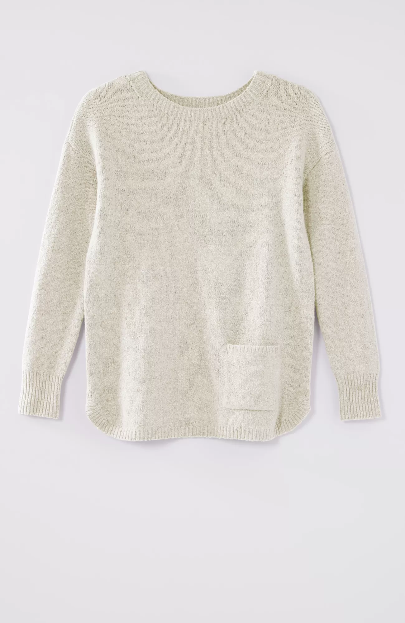 The sweater that checks all your style boxes: a supersoft marled knit, front patch pocket and shirttail hemline. Ribbed neck opening and cuffs.