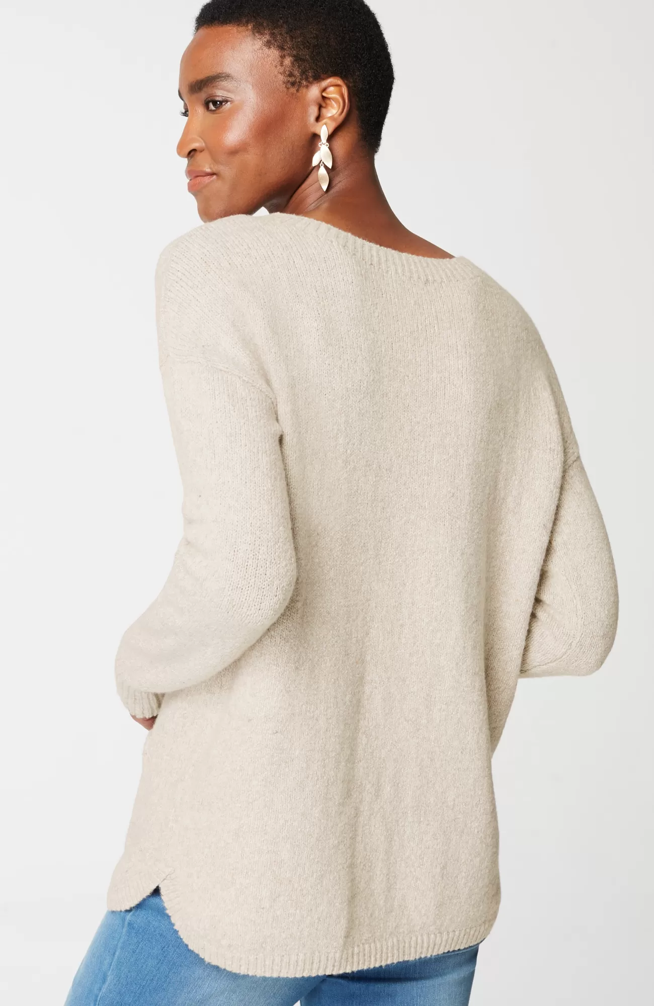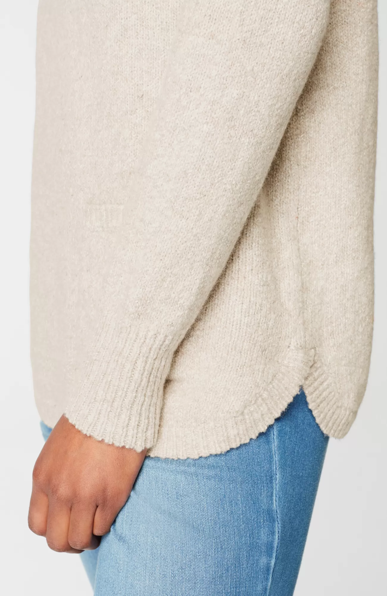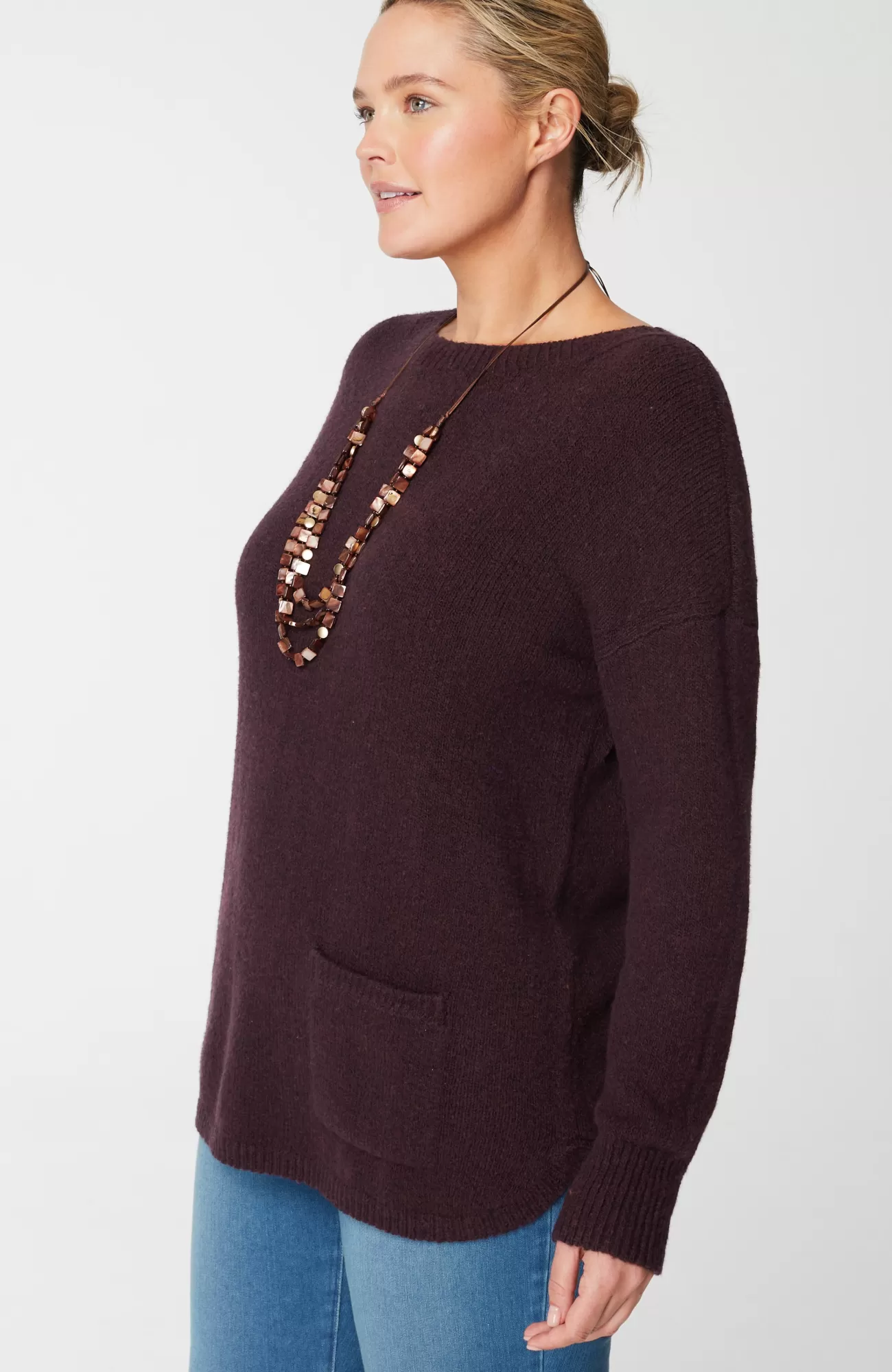 The sweater that checks all your style boxes: a supersoft marled knit, front patch pocket and shirttail hemline. Ribbed neck opening and cuffs.