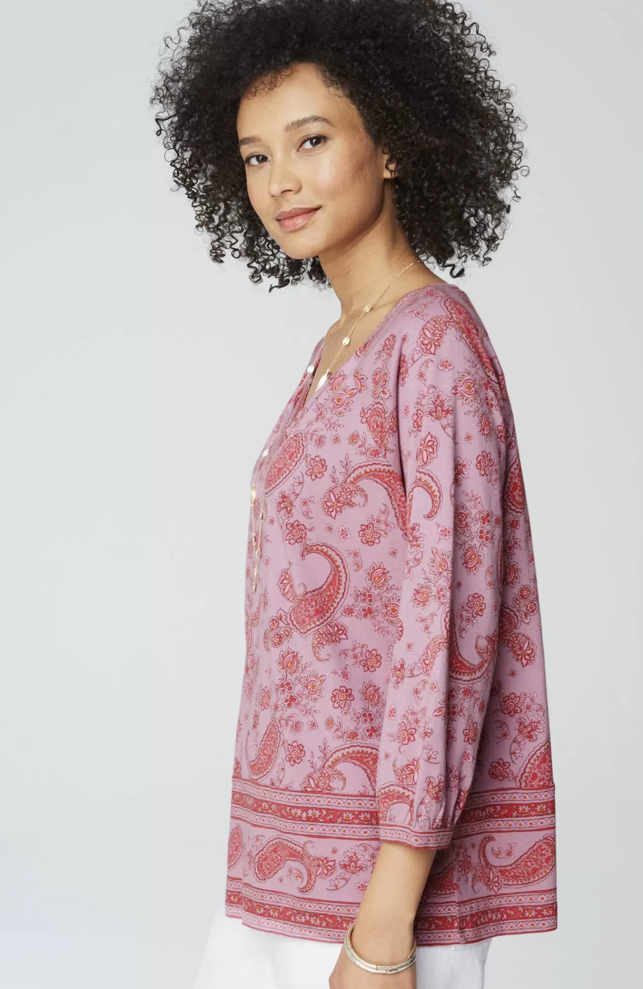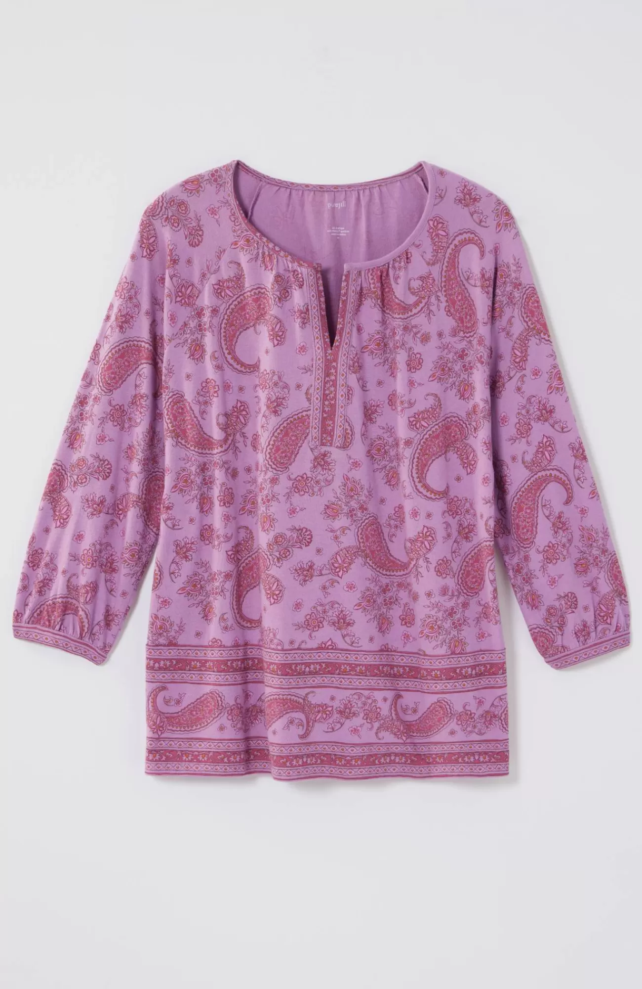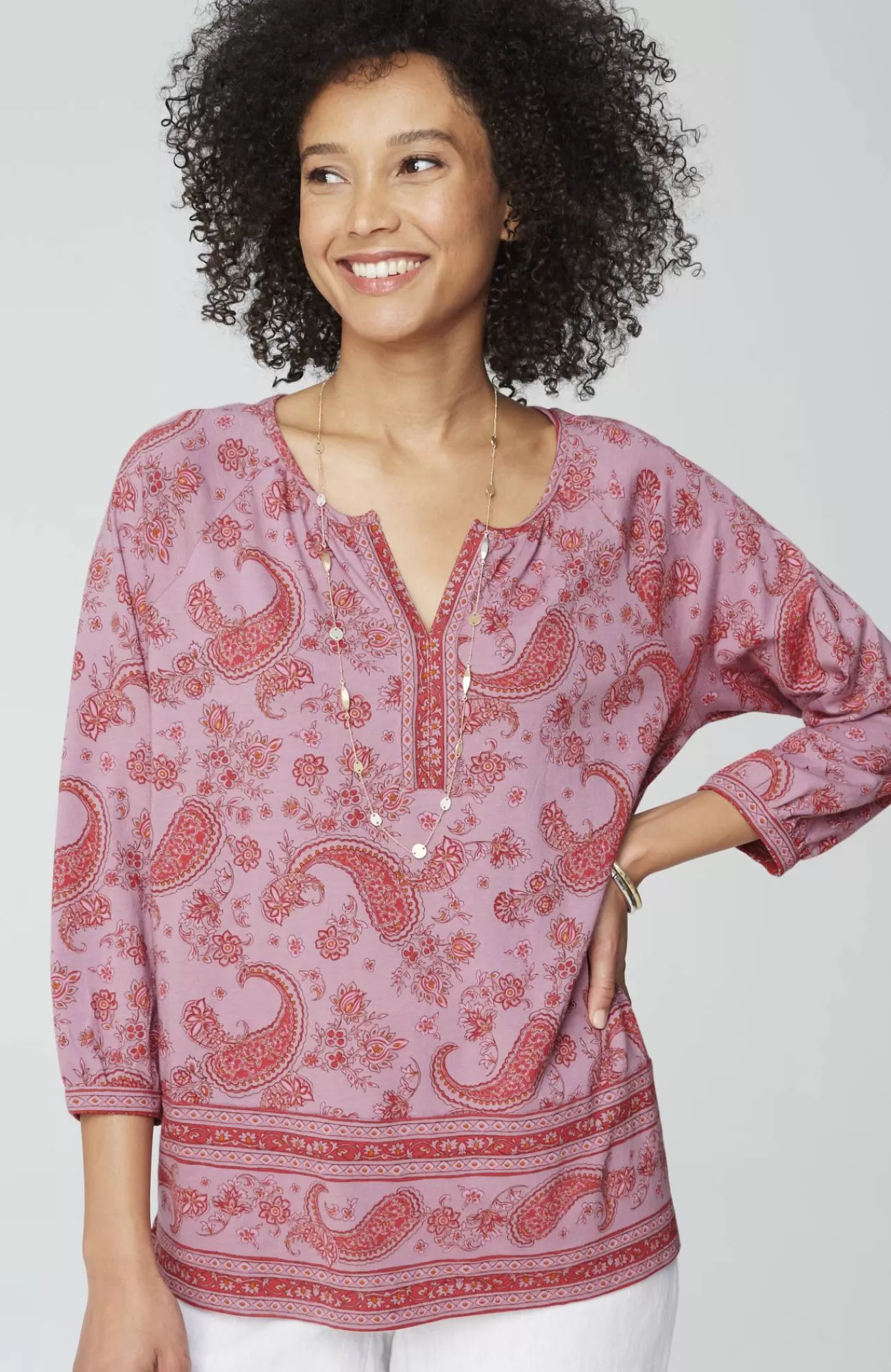 The elegant top for every day: crafted from our own airy, lightweight cotton blend, with a shirred split neckline in a spectrum of sunlit colors.