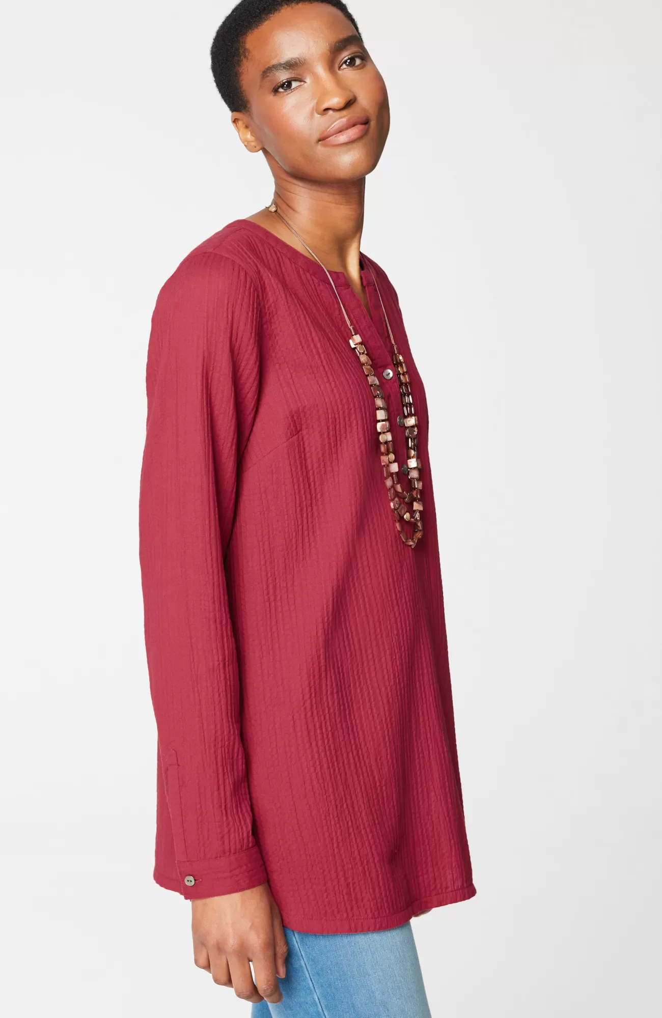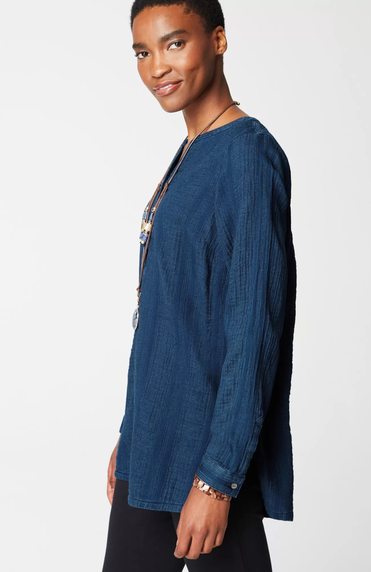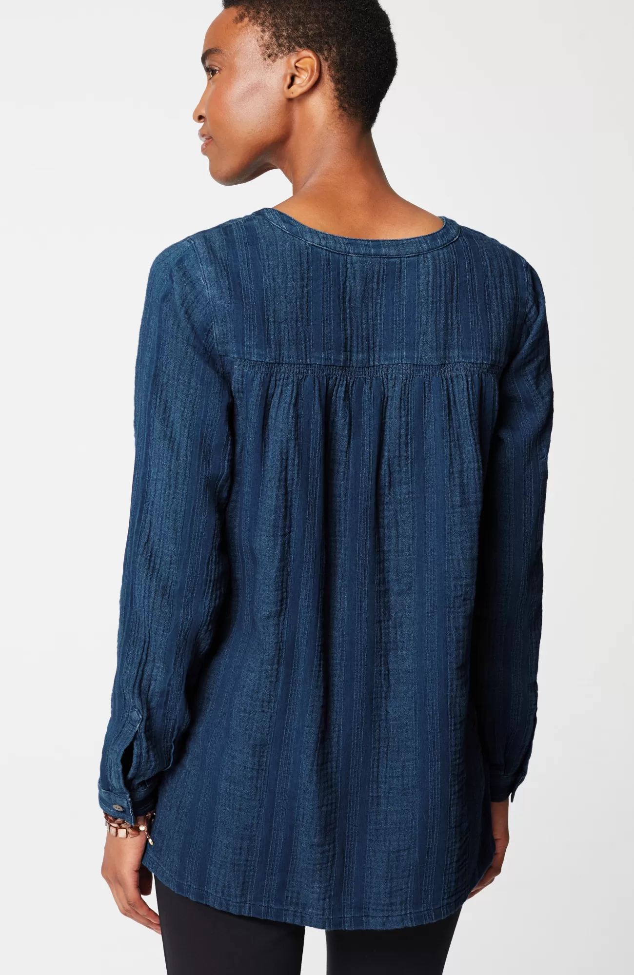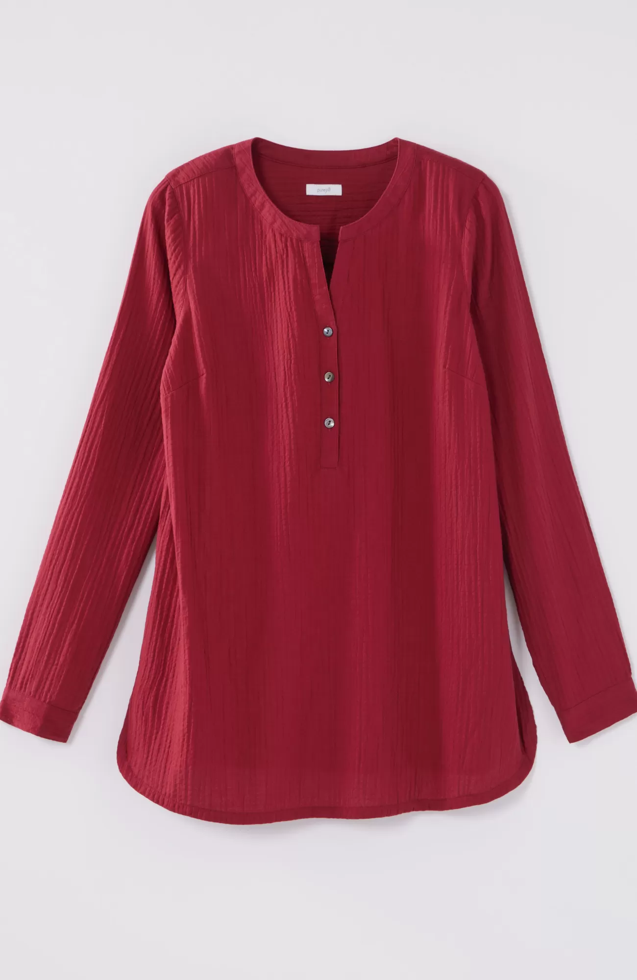 We've taken your favorite top and given it the longer length and details you love, including a soft, gauze-like texture, smocking and a shirttail hemline. Side slits.