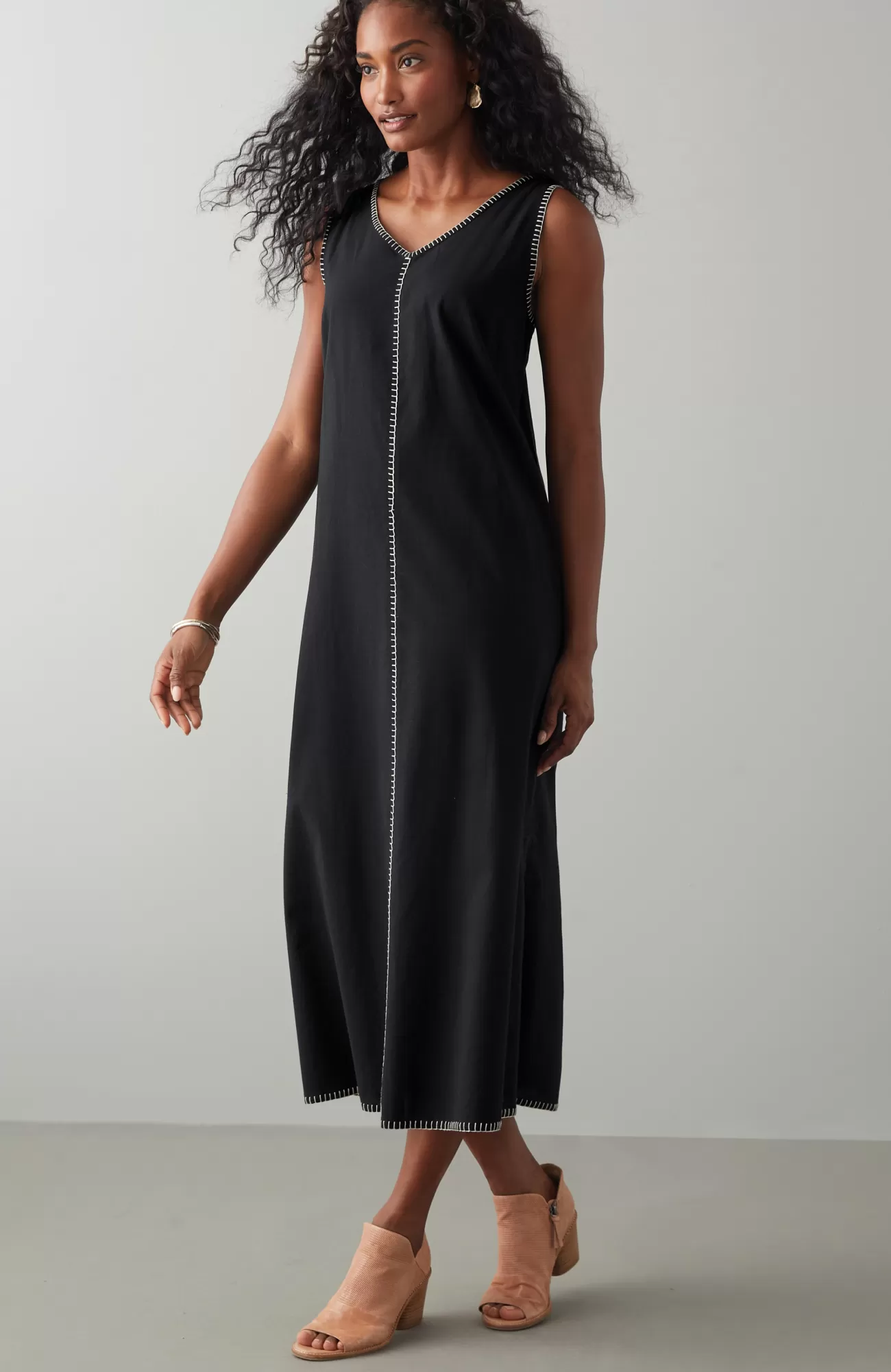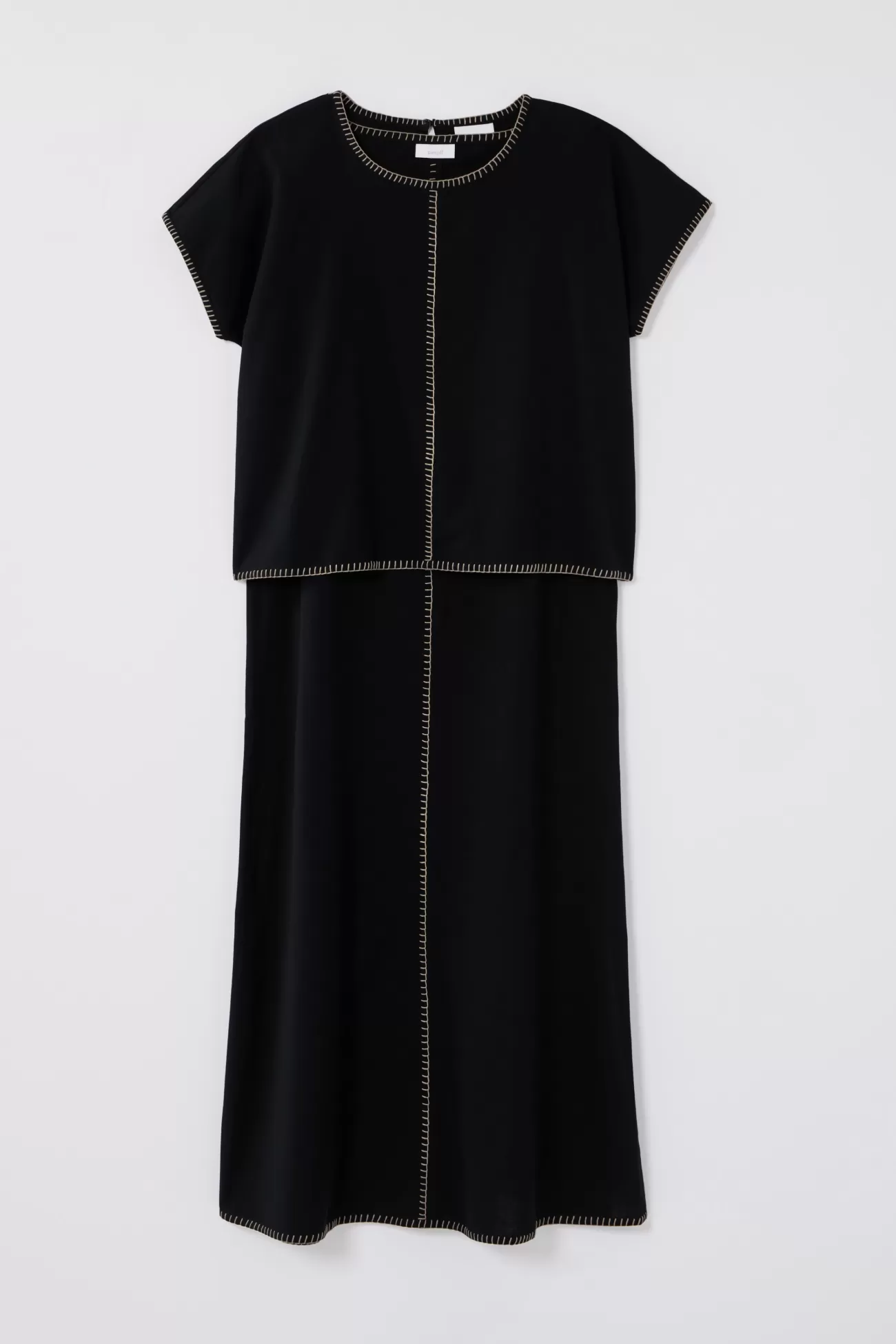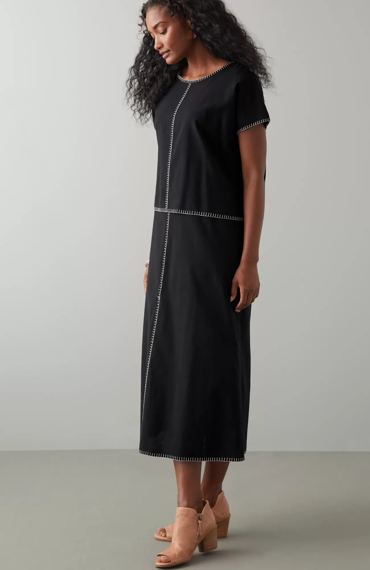 The versatility of two dresses in one?with all the artisanal flair. Our two-piece dress was designed with contrasting hand-stitched seams finishing the cuffs, center front and hemline. Whether you match the short-sleeve top and sleeveless dress or wear them apart, the style possibilities are endless.