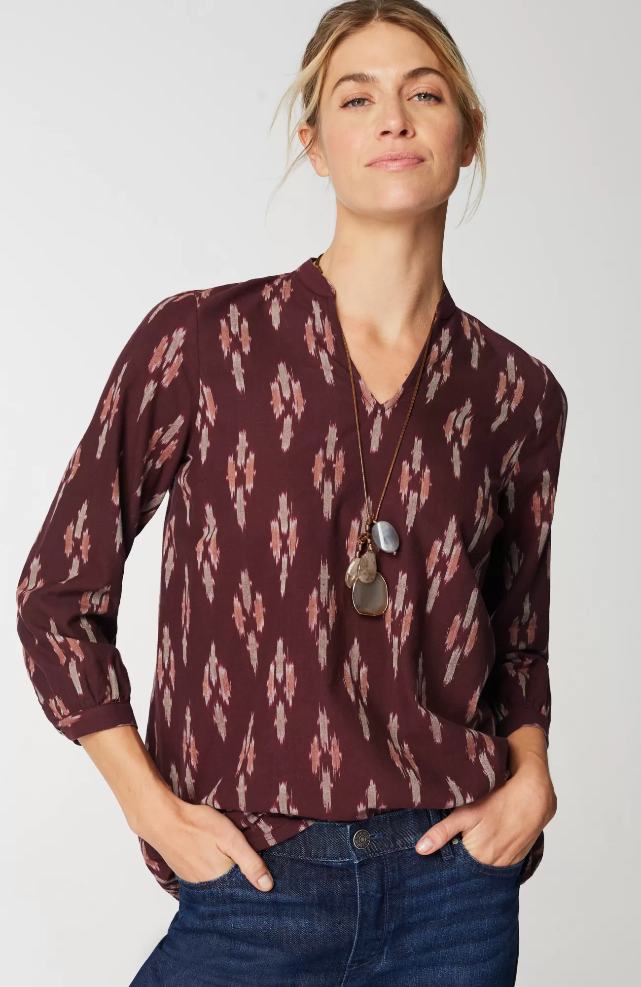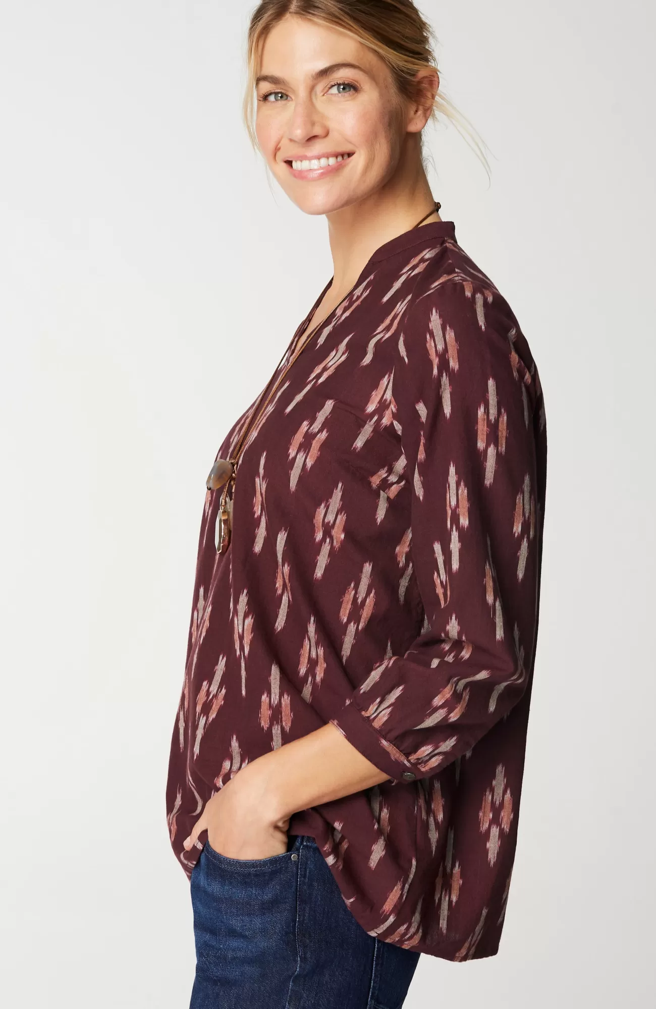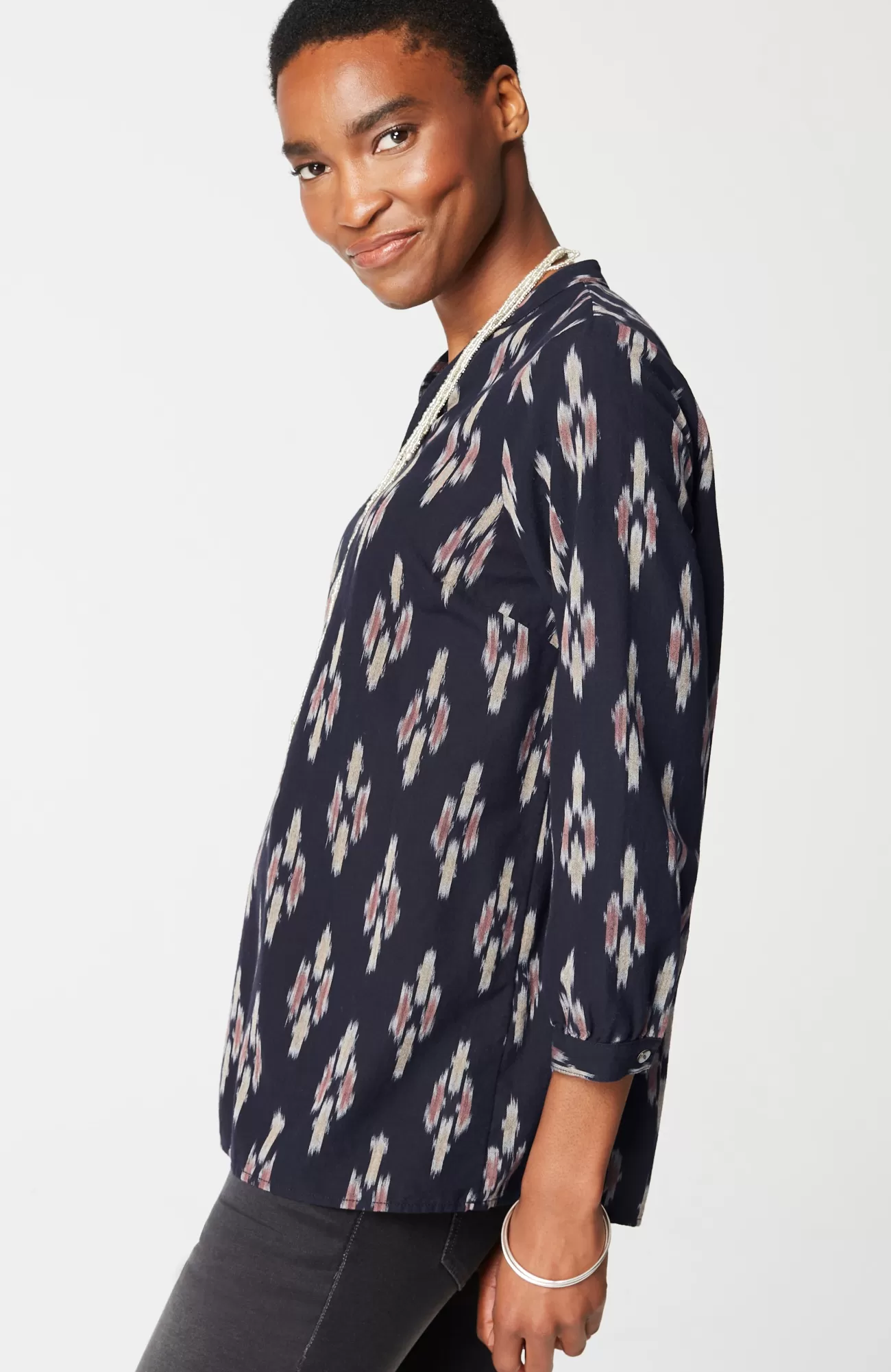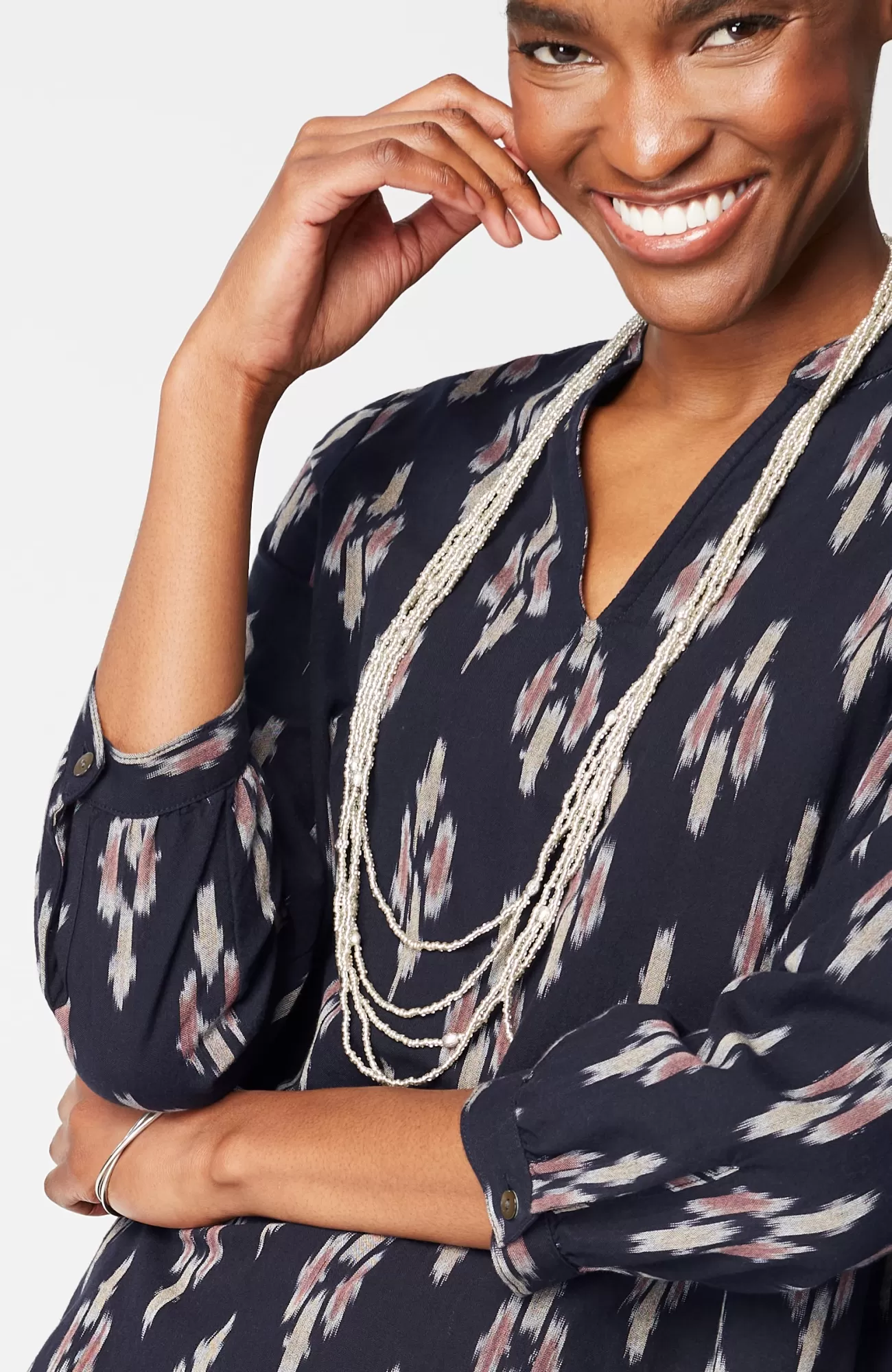 Exclusively part of our limited-edition Pure Jill Elements Collection. The effortless A-line top that's soft to the touch and easy to style. Plus, the genuine ikat print brings an artisanal flair to your outfit. Shirring at the cuffs.