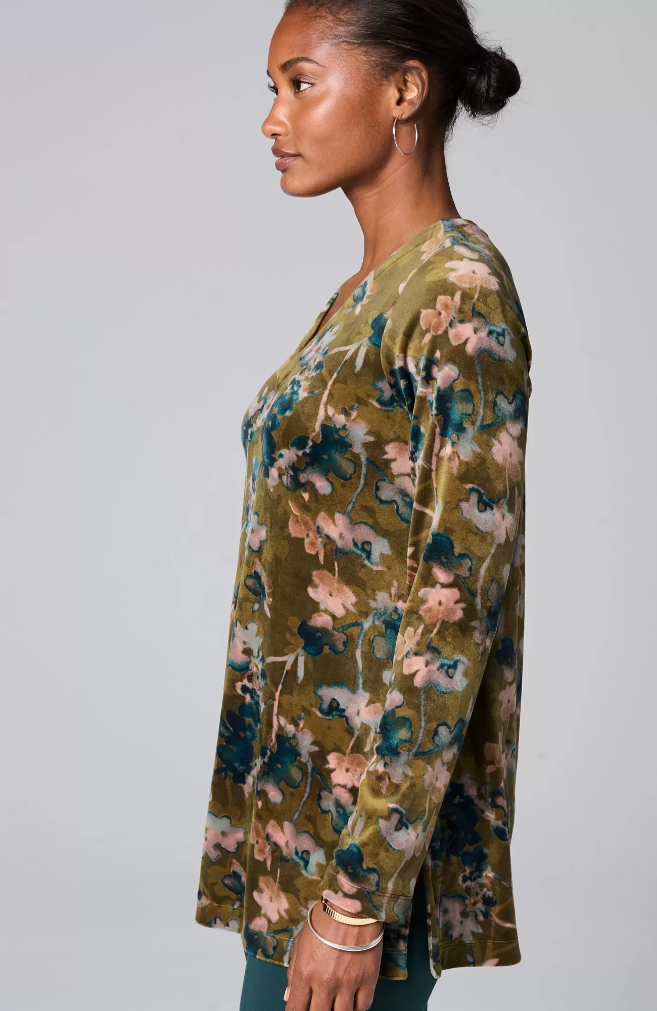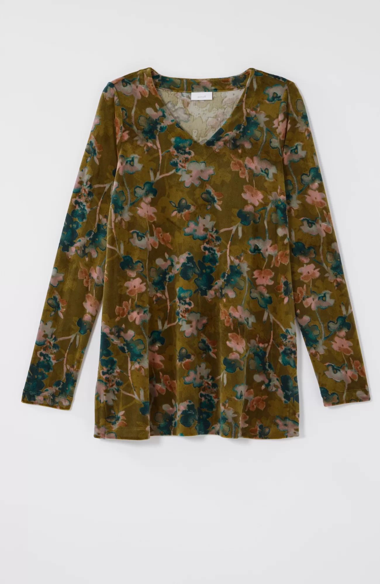 Every wardrobe needs a showstopper, and this top is yours. It has a plush texture, soft-focus floral print and beautiful drape. Plus, its A-line shape and side vents promise comfort and ease of movement.