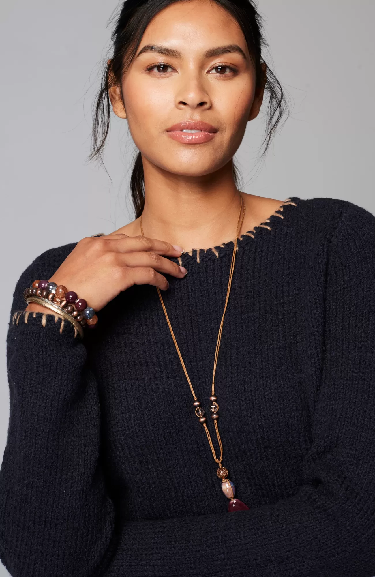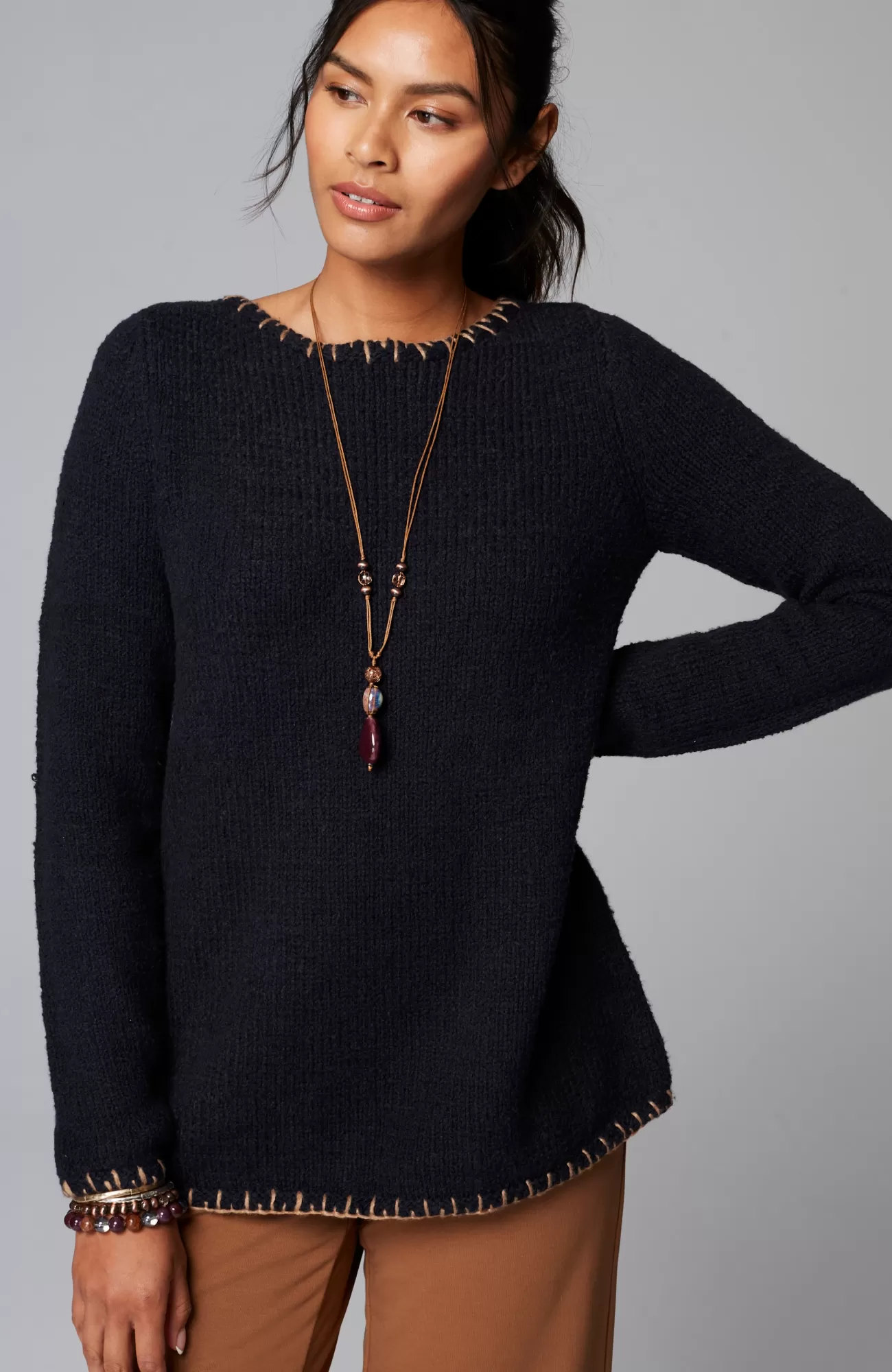 Our cotton-blend pullover is a special, unexpected piece for your wardrobe, thanks to the contrast stitching along the elegant boat neckline, cuffs and hem. Our favorite detail? The stitching was done by hand.