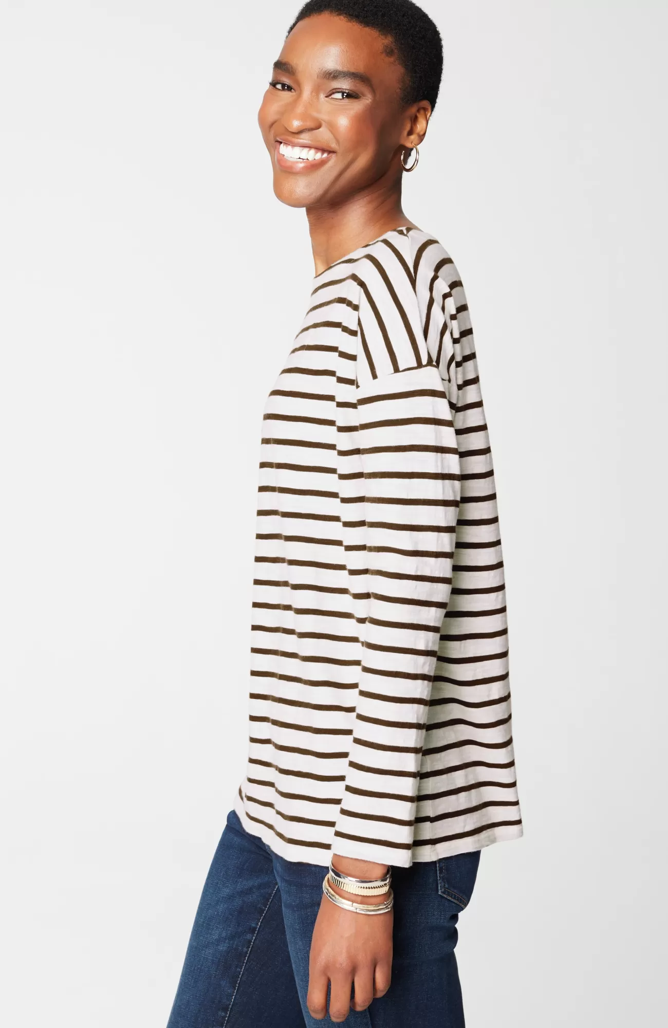 Made with 100% cotton with yarn-dyed stripes and subtle slub texture, our easy-to-wear tee is a versatile update to classic nautical style. It's an all-time favorite with a modern feel that effortlessly pairs with jeans, crops, pants and shorts.