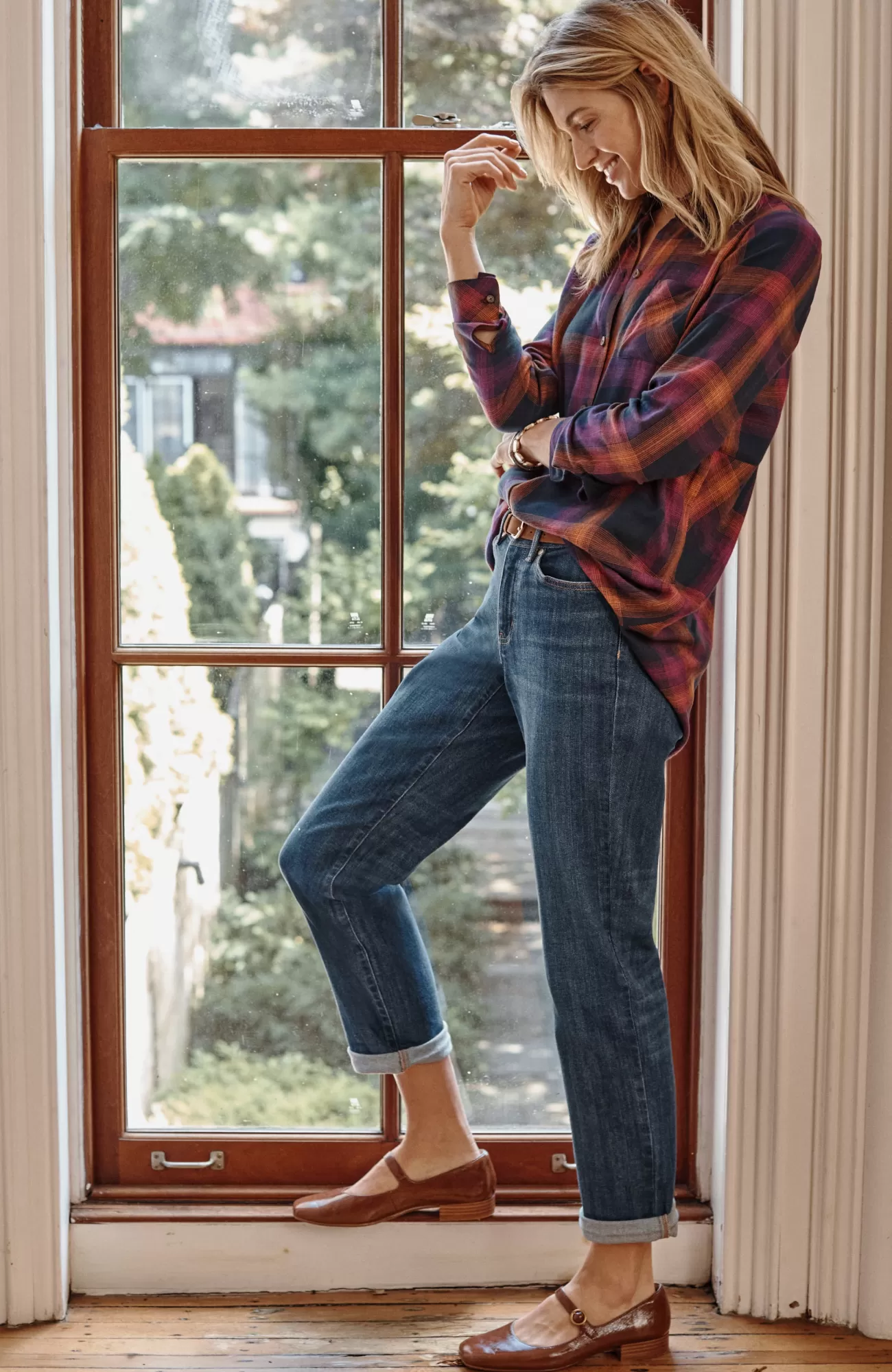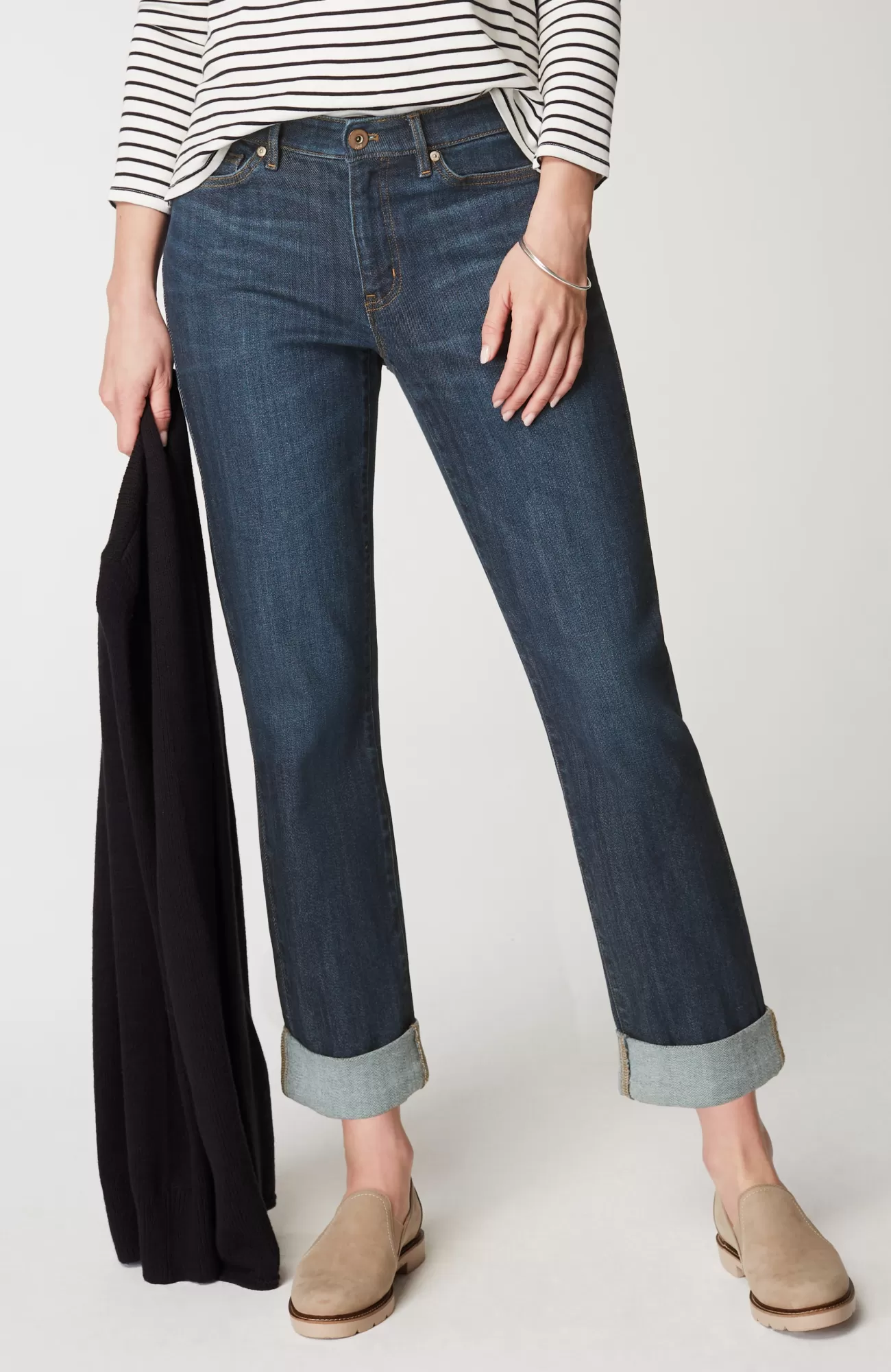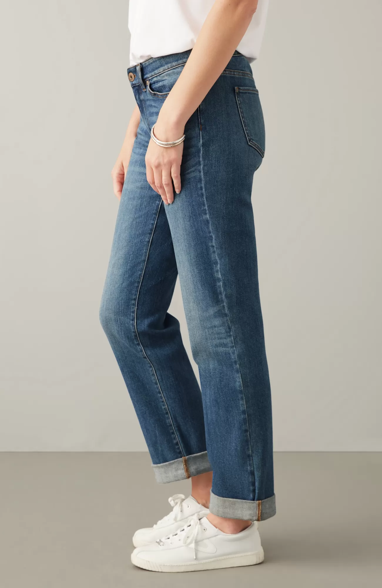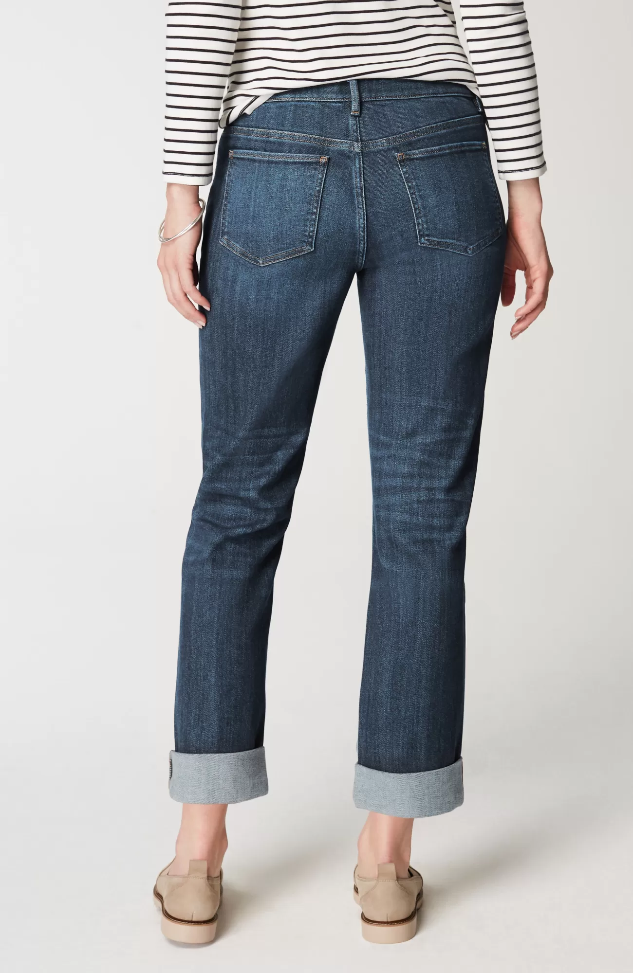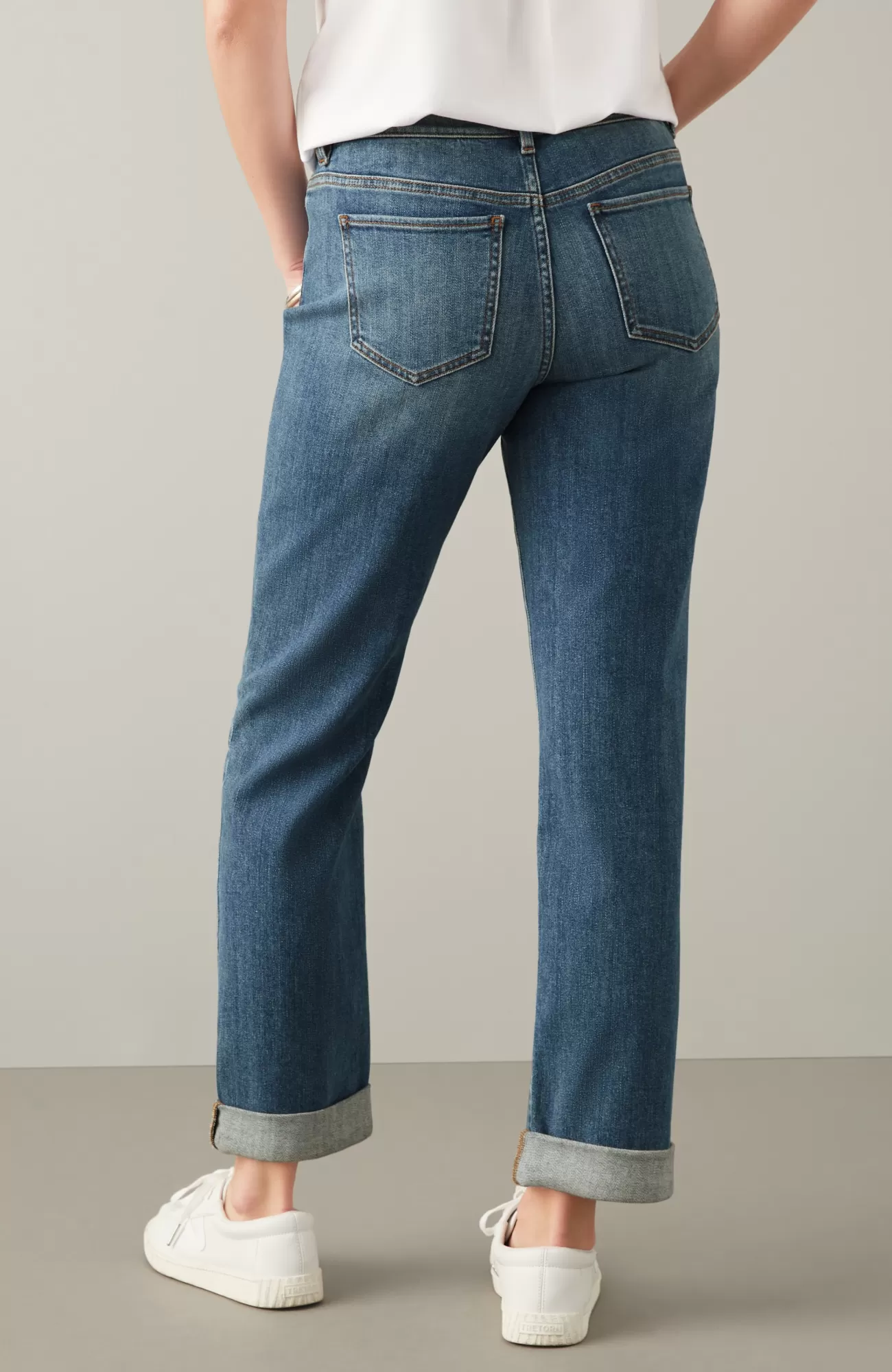 Our 5-pocket boyfriend jeans are back in a more relaxed cotton blend for the softness and ease you know and love. They’ll be one of your casual-day favorites to pair with shirts, tees and sweaters. Rolled cuffs can be adjusted to your desired height. Belt loops. Fly front with tack closure.