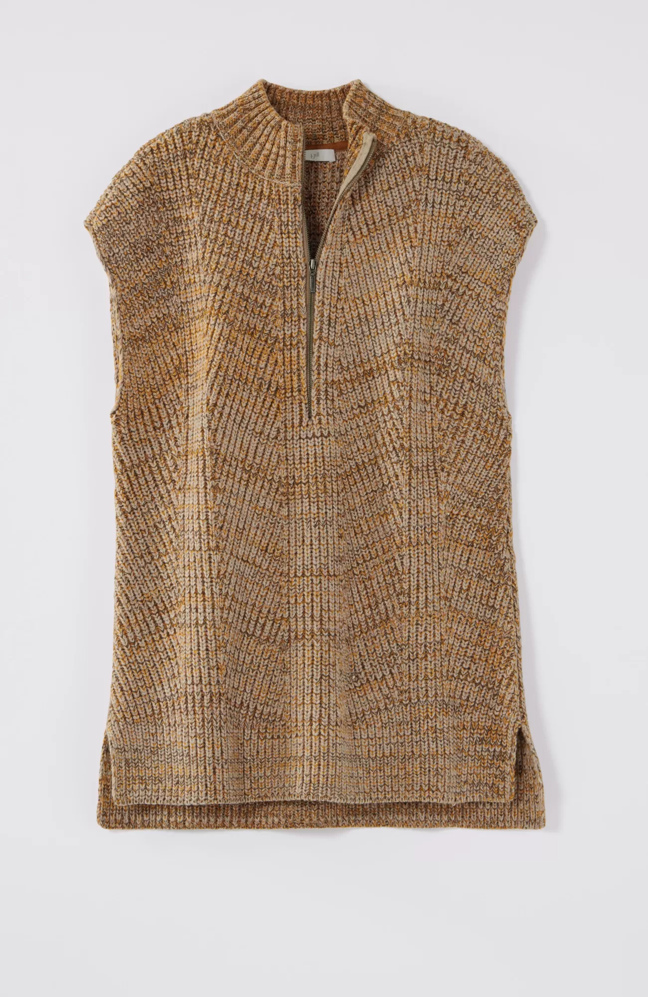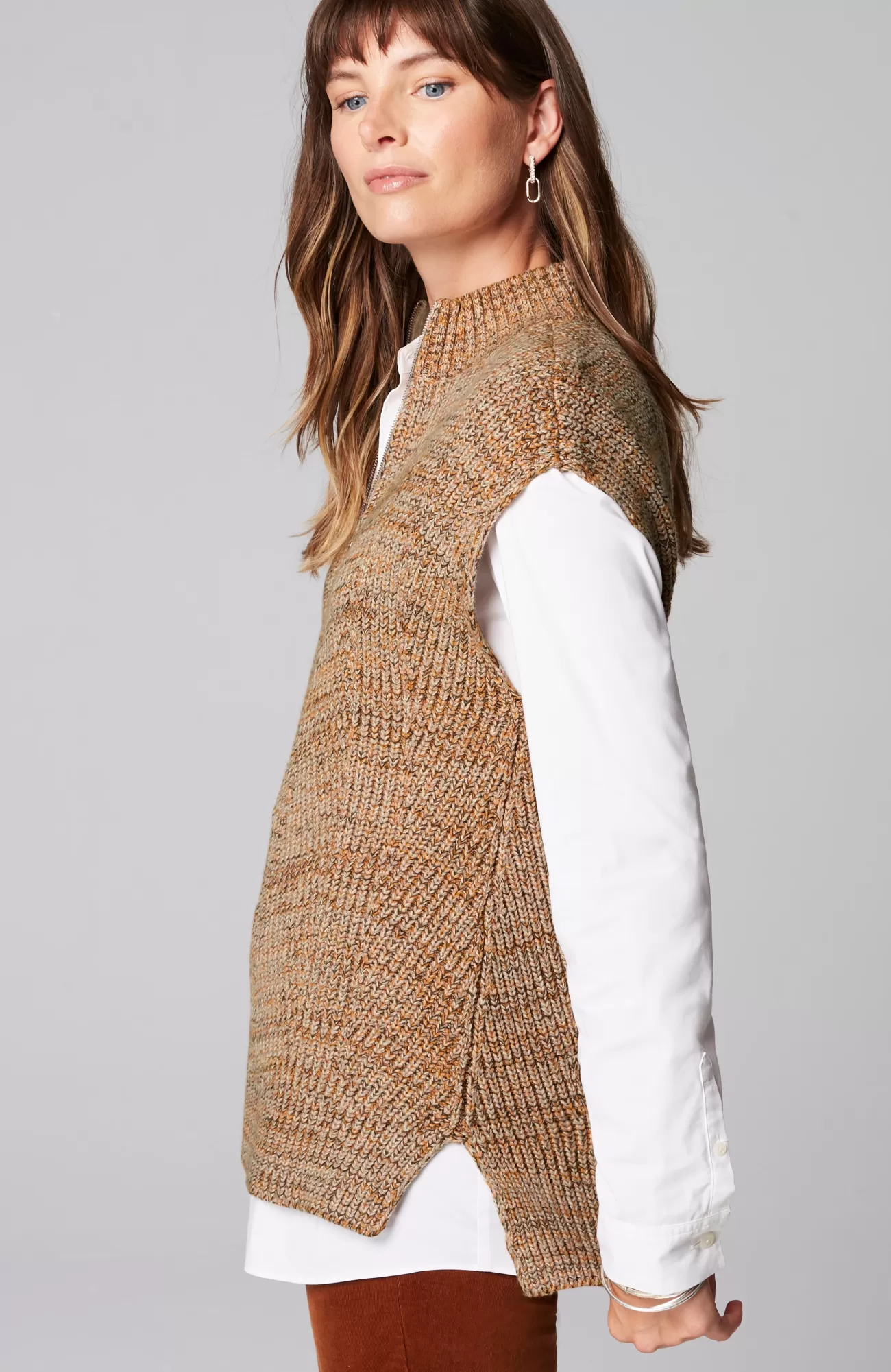 Our stand-collar sweater-vest adds instant dimension to any fall look. Soft, cotton-rich marled yarns create the chunky rib knit, and the half zipper along the front makes it a snap to style this piece solo or wear as a layer. Side vents.