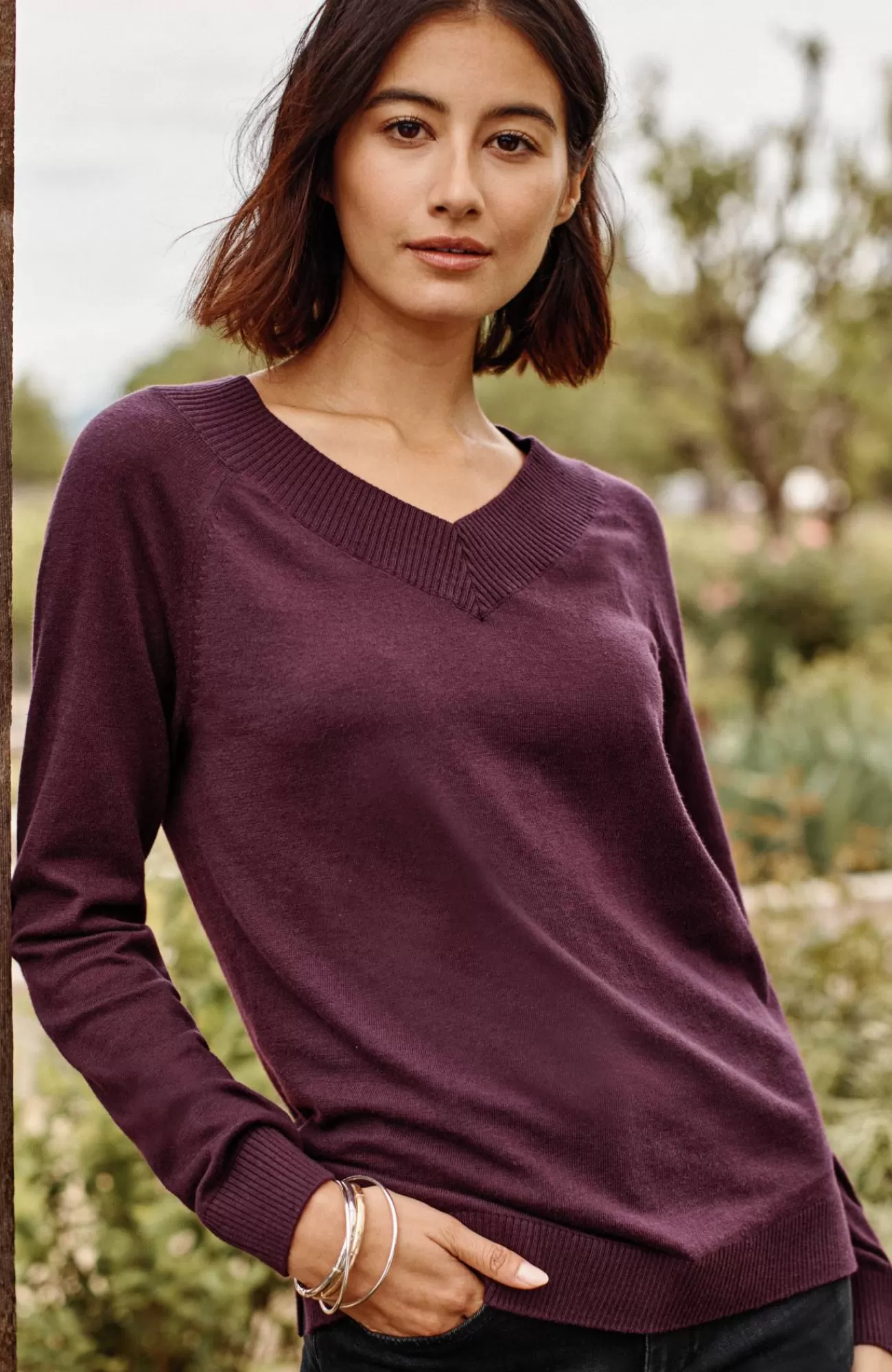 We elevated our classic pullover with a sporty raglan-sleeve design and ribbing that finishes the V-neckline, cuffs and hemline. It's a cotton-rich style that pairs well with pants and jeans from weekdays to weekends. Side vents.