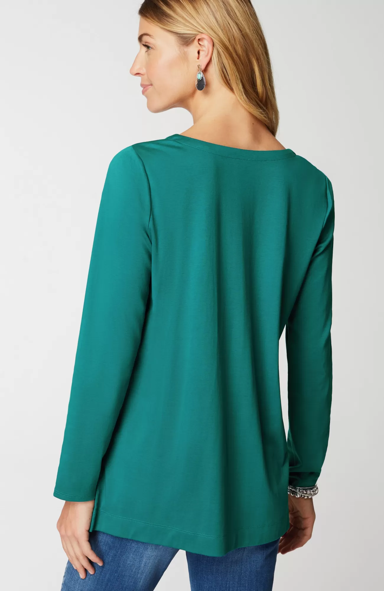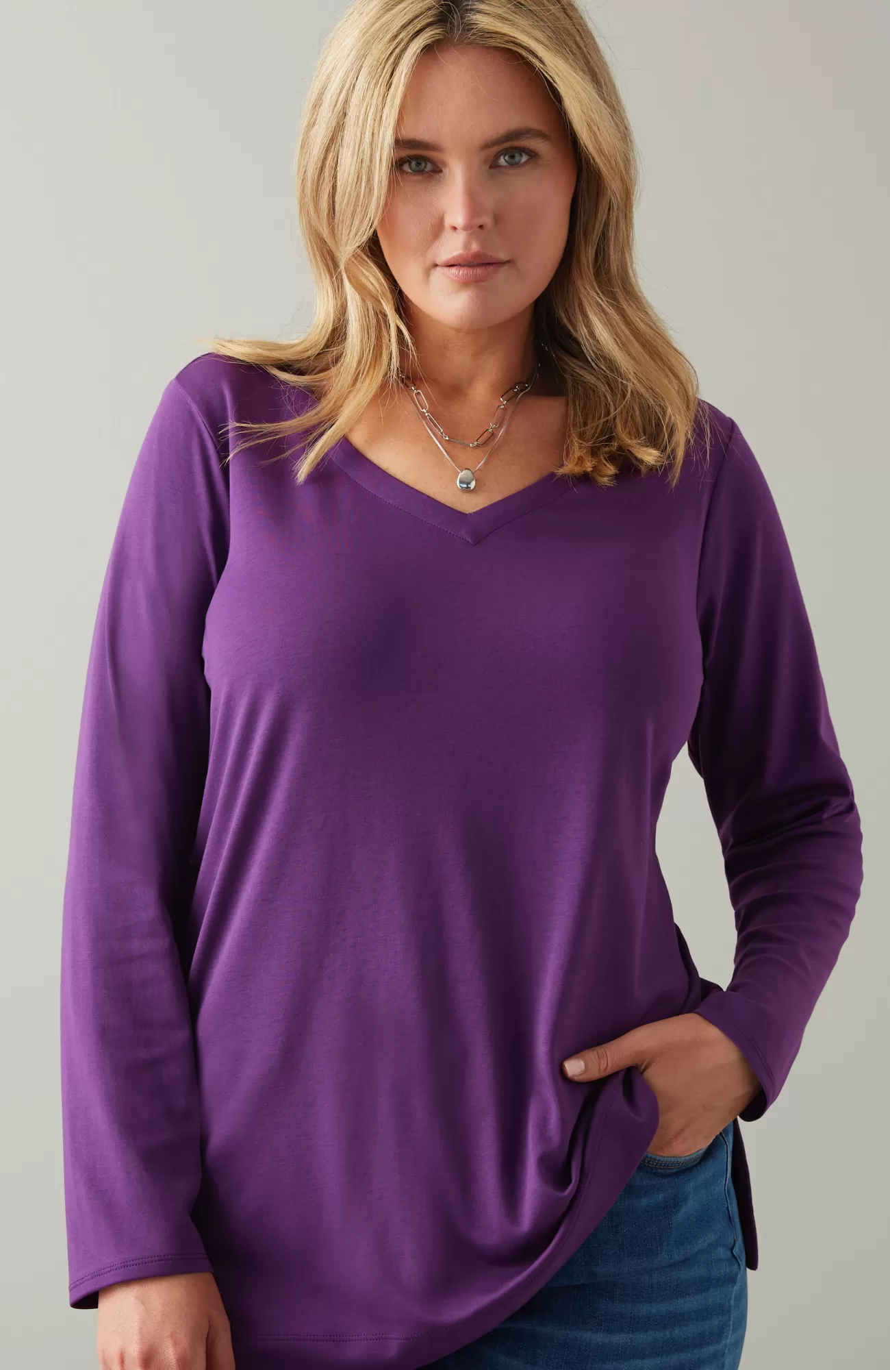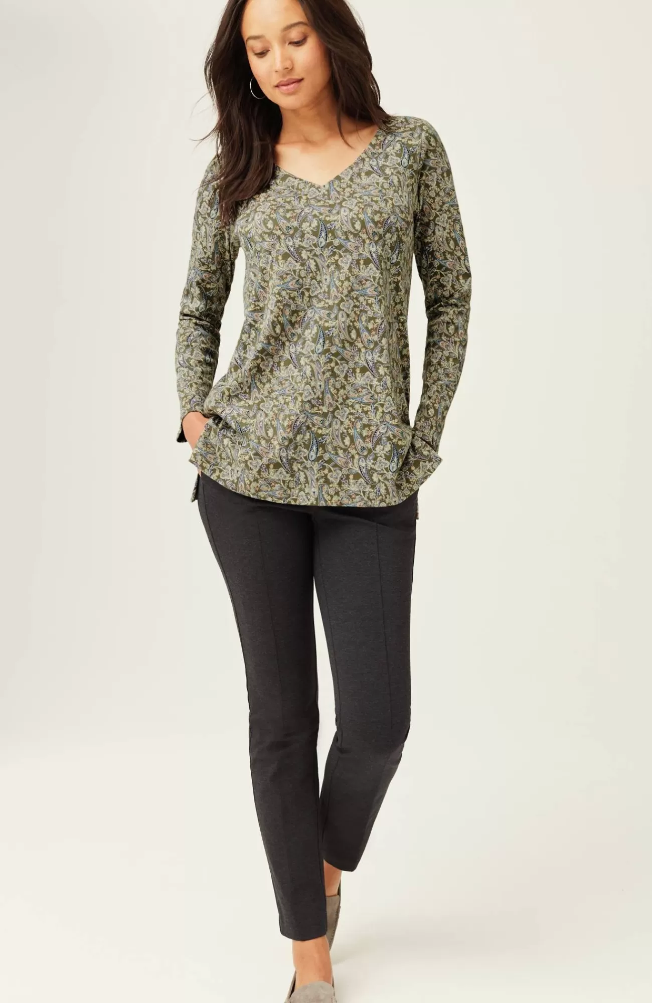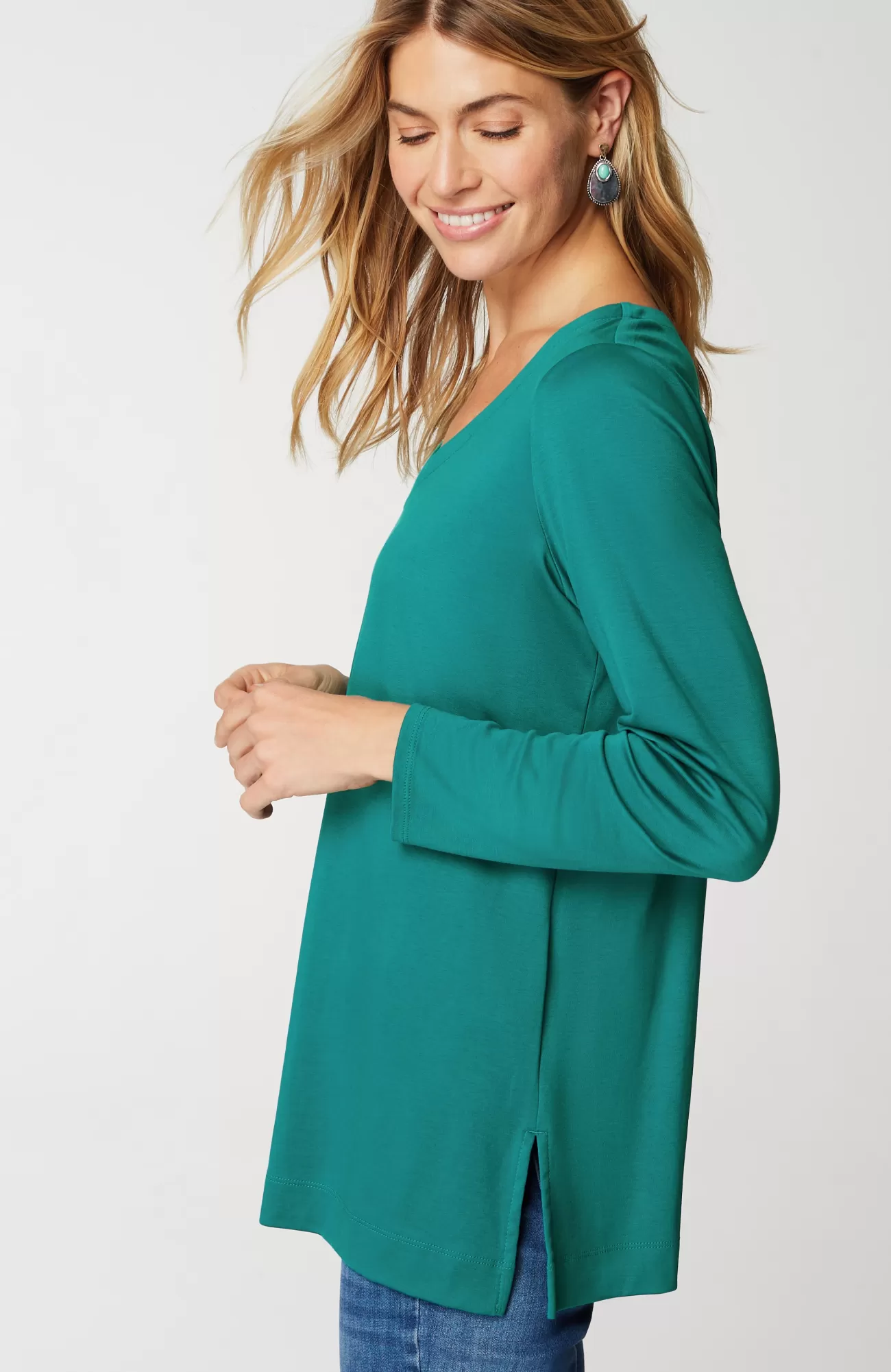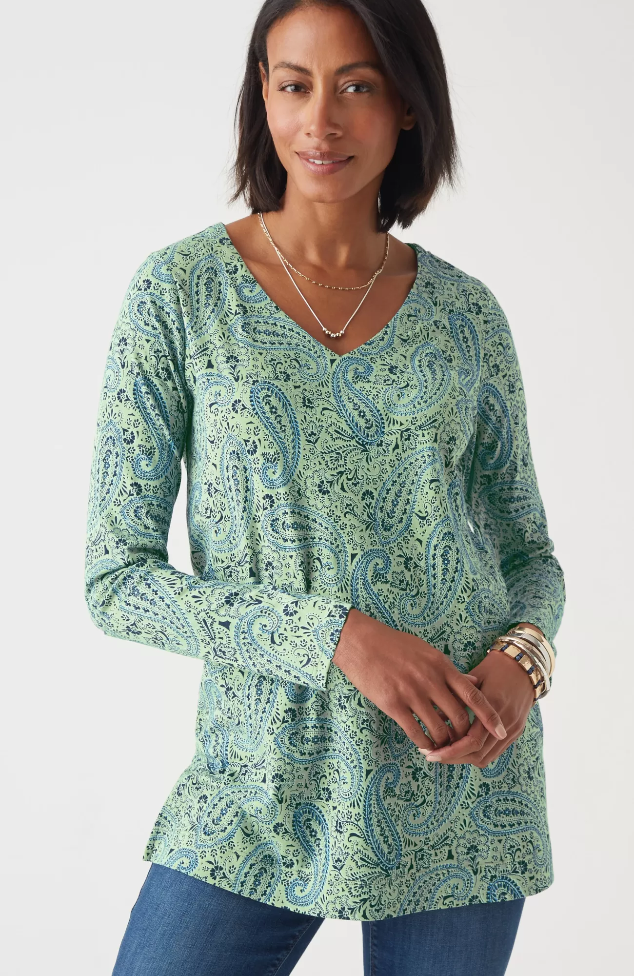 Our better-than-basic tunic is designed with the ultimate softness of Supima® cotton for all-day comfort and style. V-neckline. Side vents.