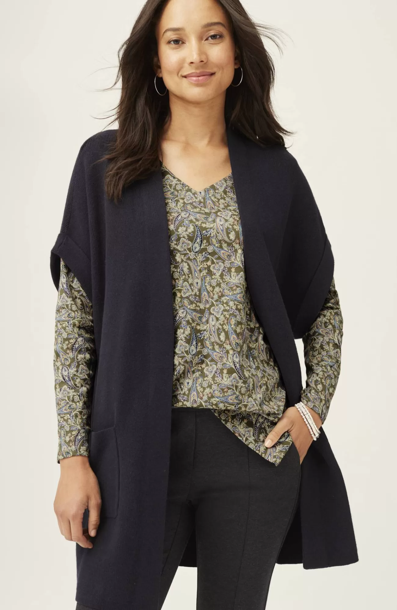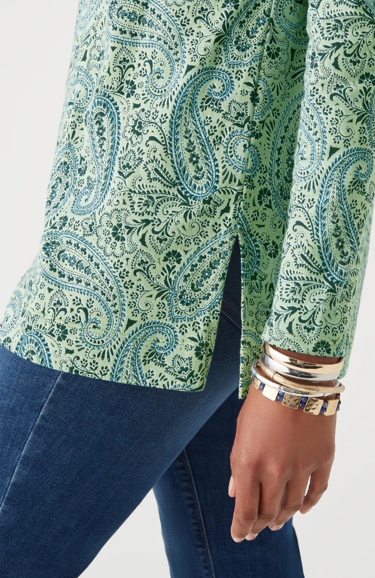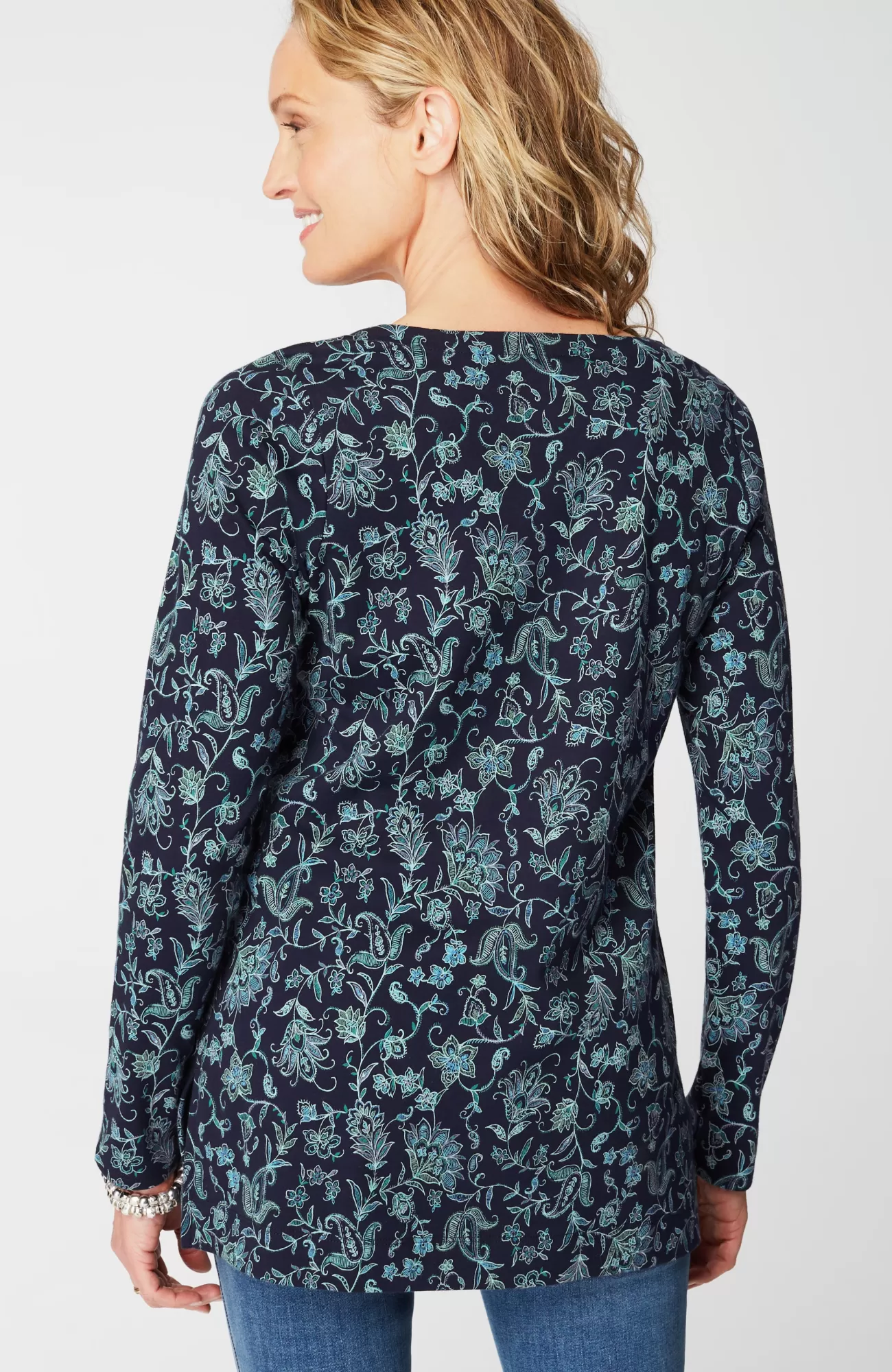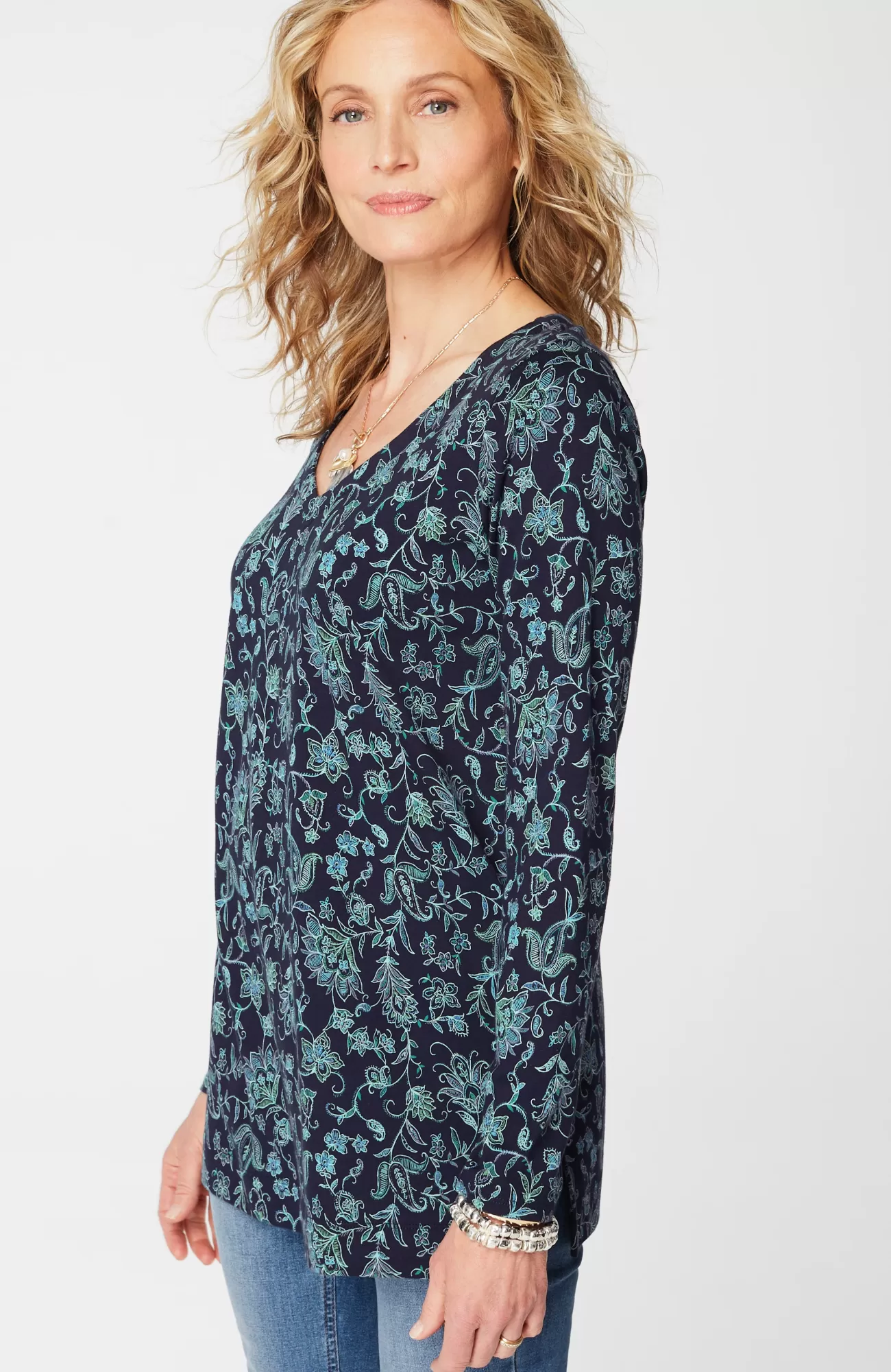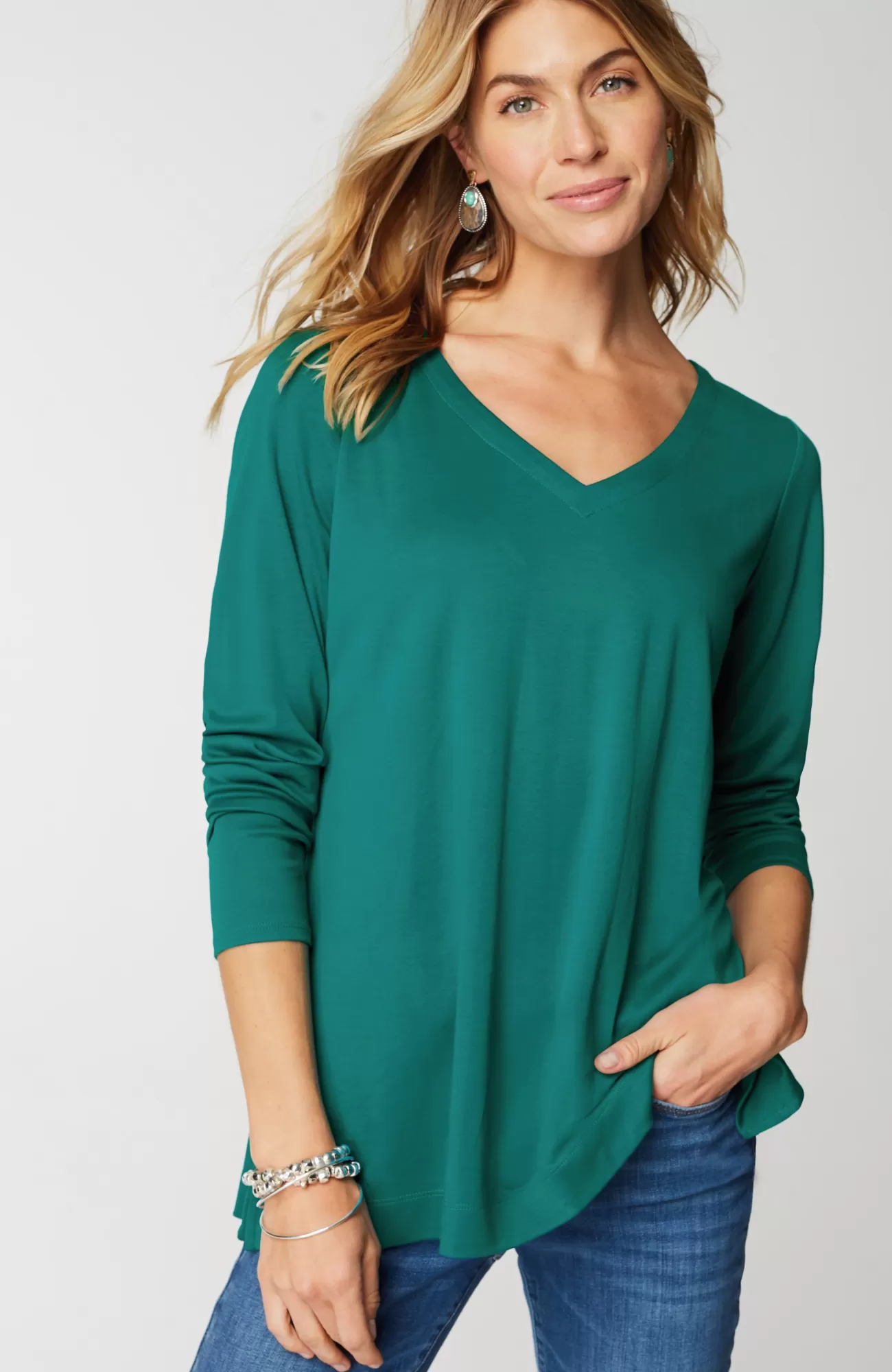 Our better-than-basic tunic is designed with the ultimate softness of Supima® cotton for all-day comfort and style. V-neckline. Side vents.