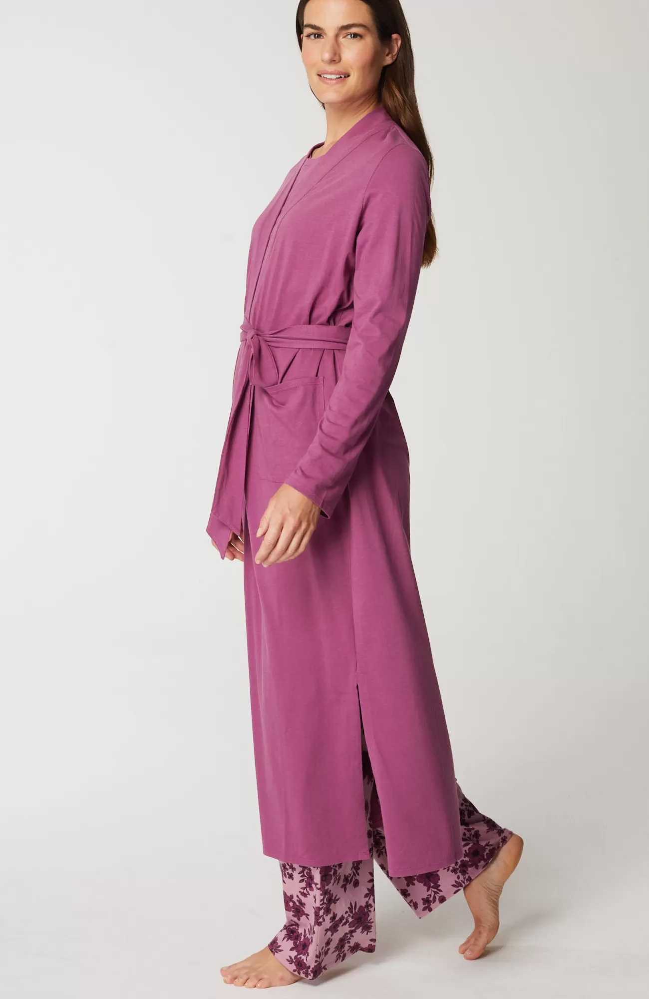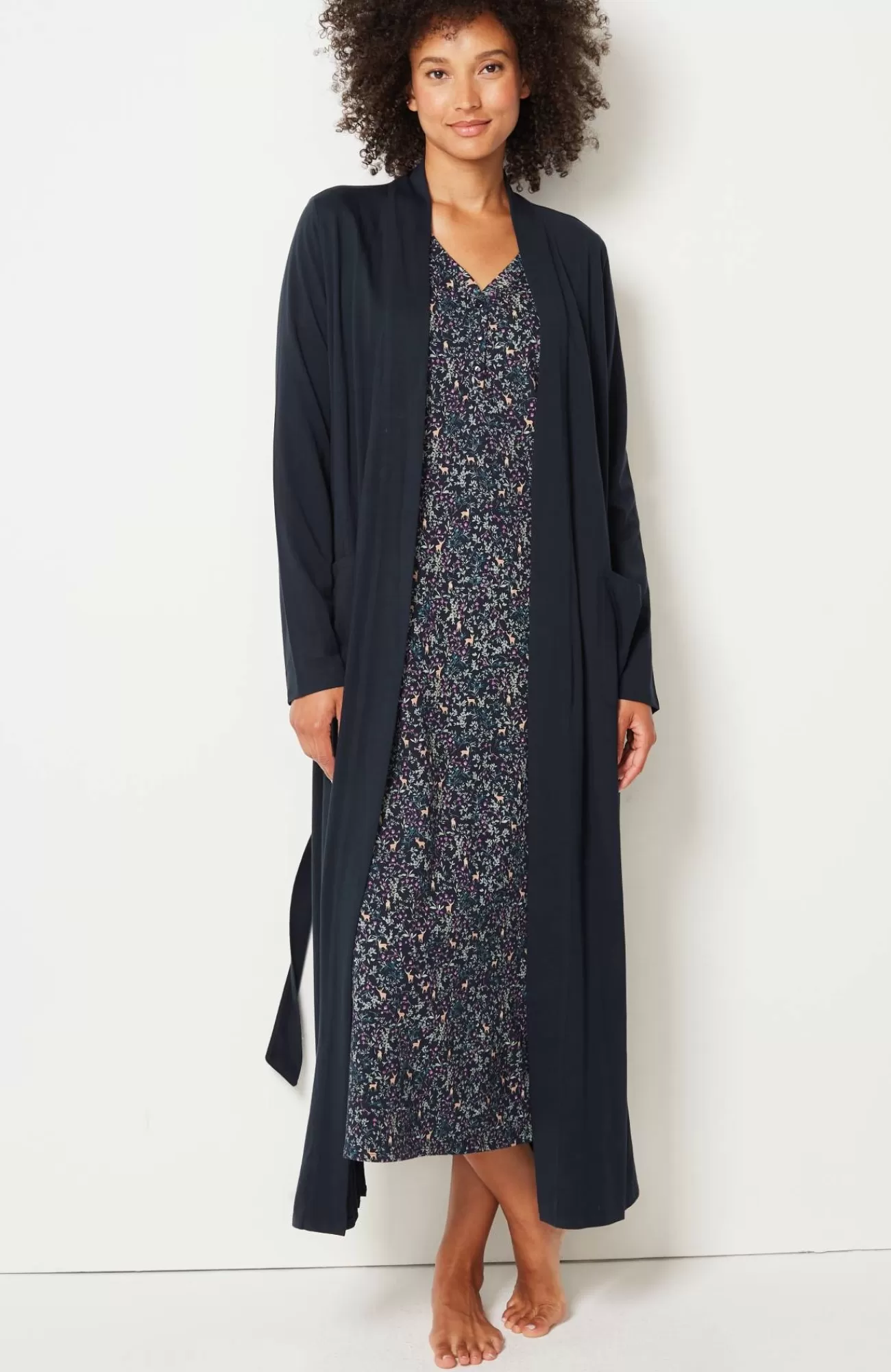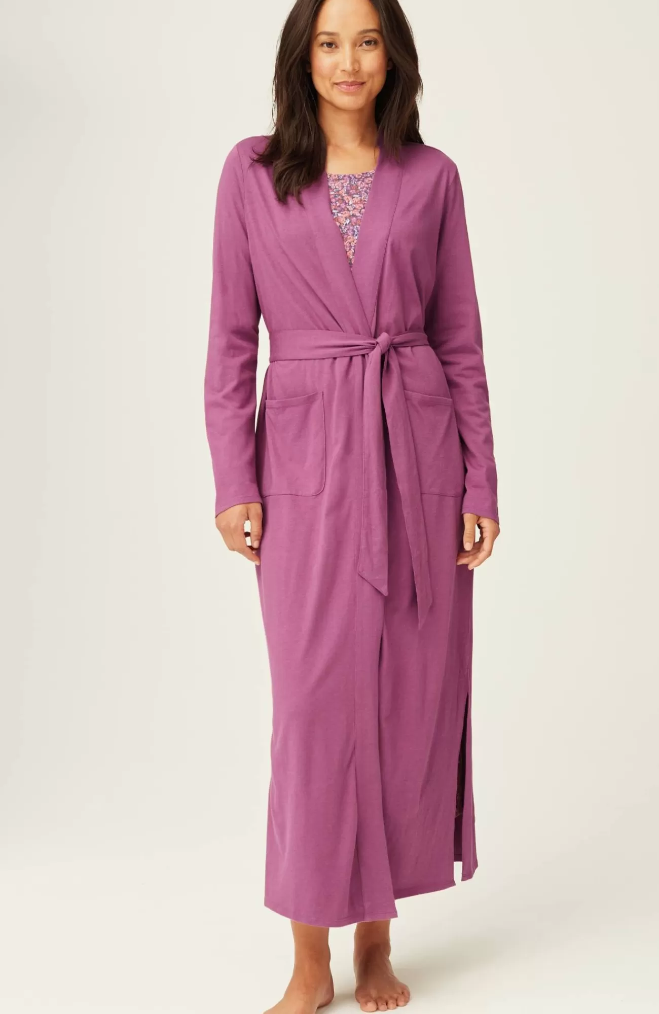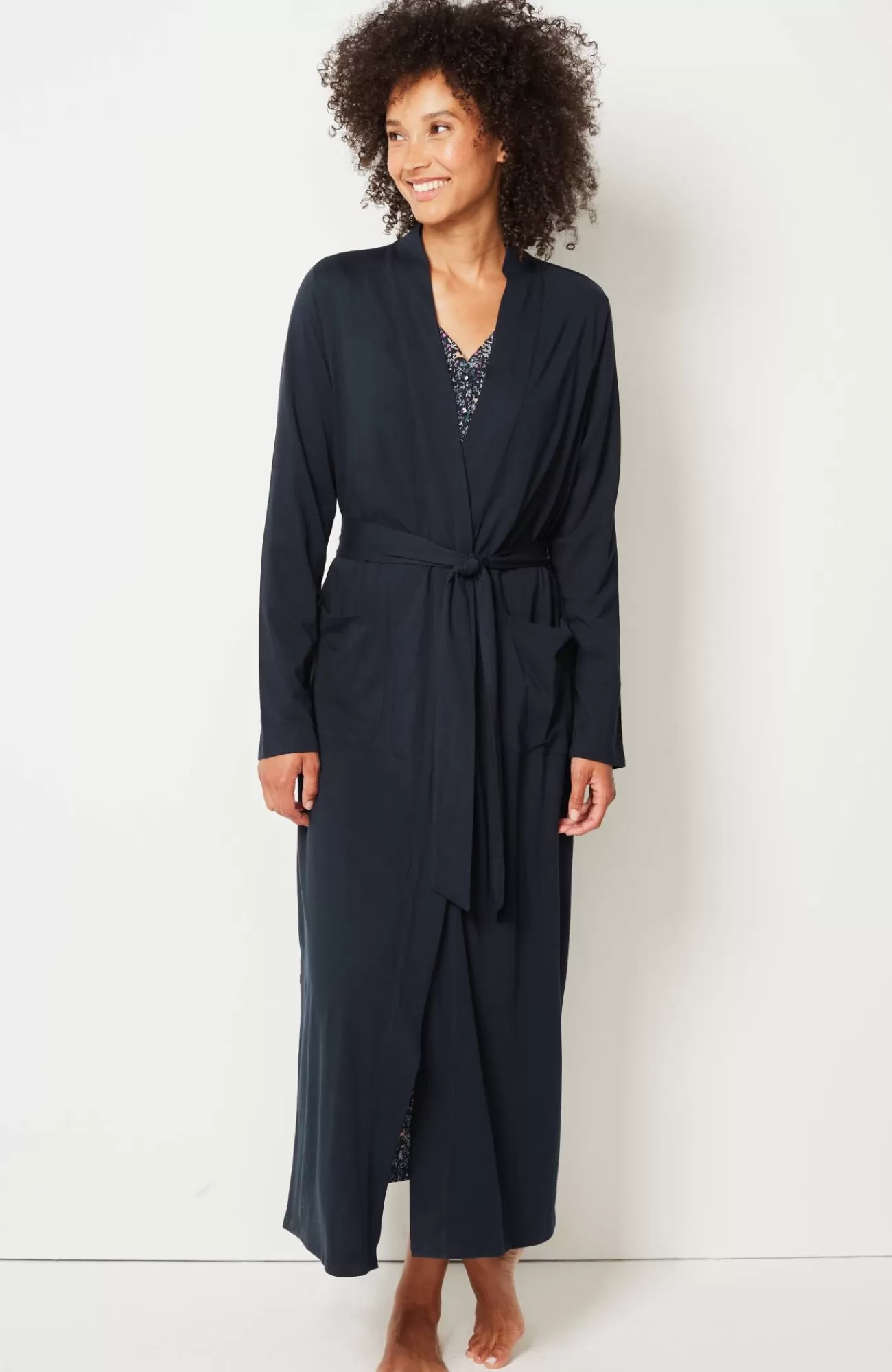 Our wrap-front robe is designed in our blend of cotton and Tencel™ modal for absolute softness. It's a luxurious layer for chilly mornings and evenings. A tie belt gives you the perfect fit, and patch pockets are a practical touch. Side vents. Band neckline.