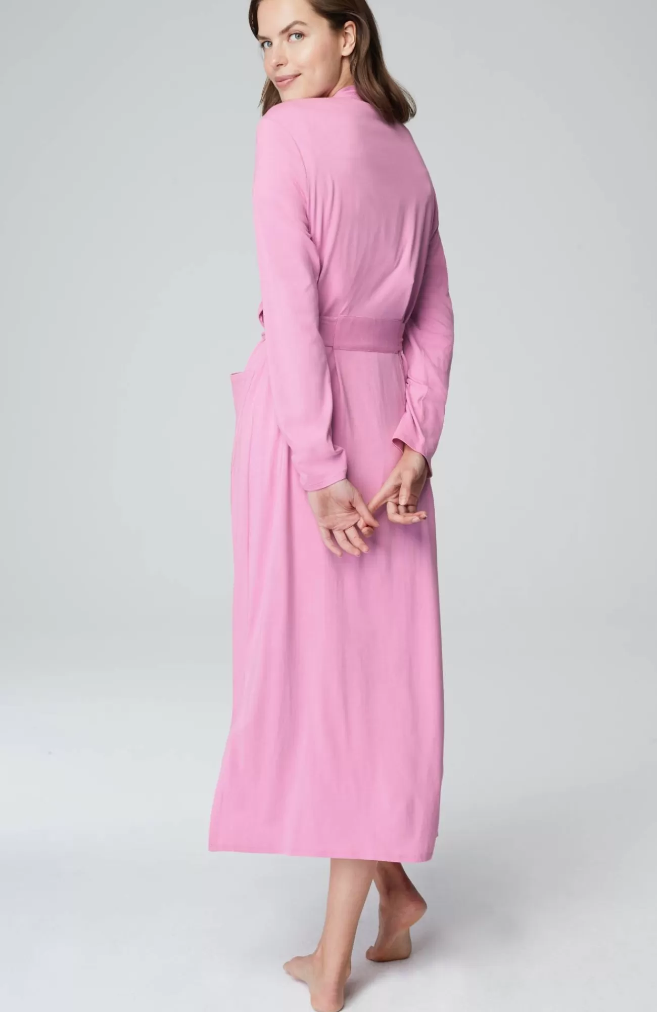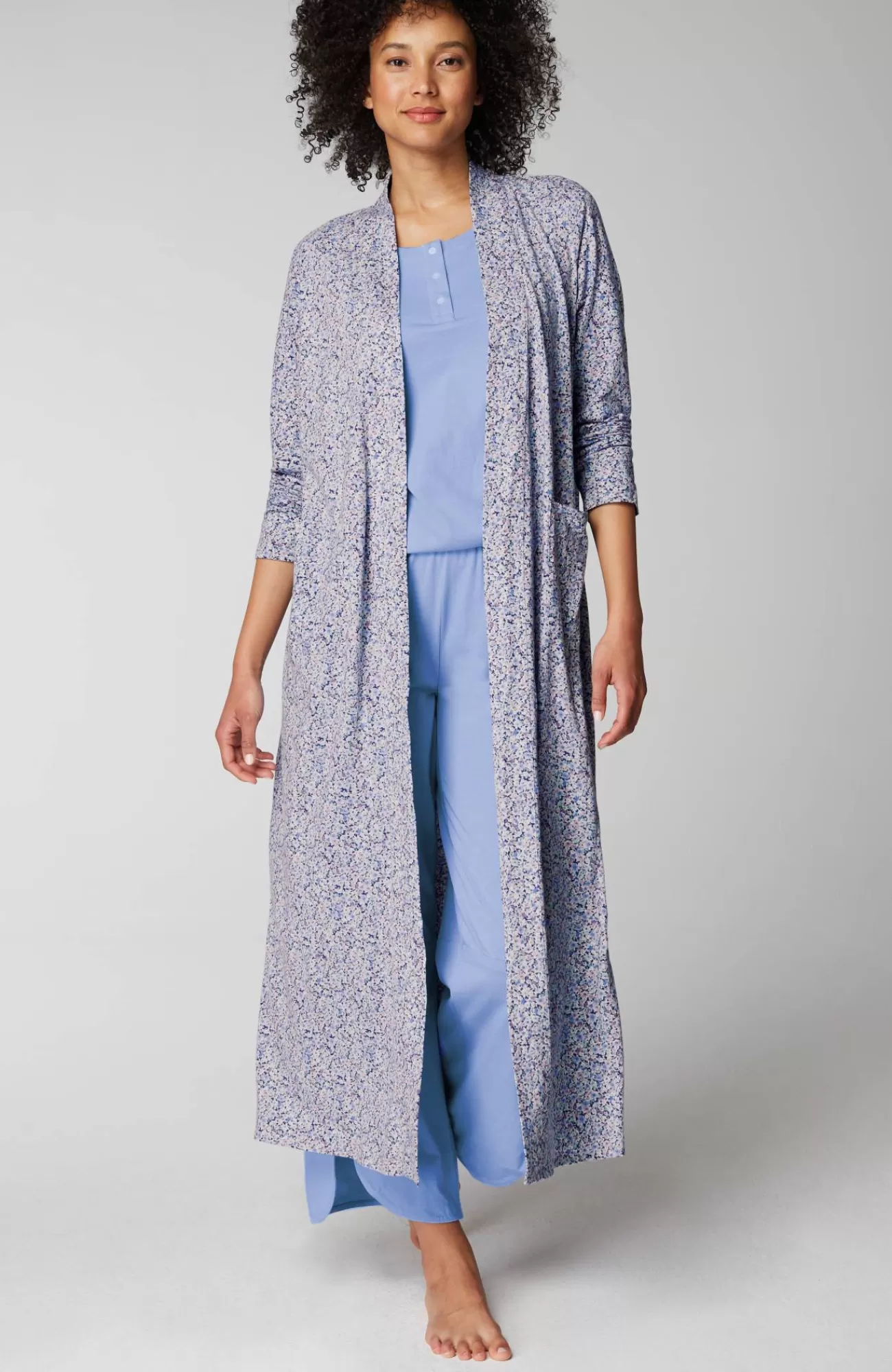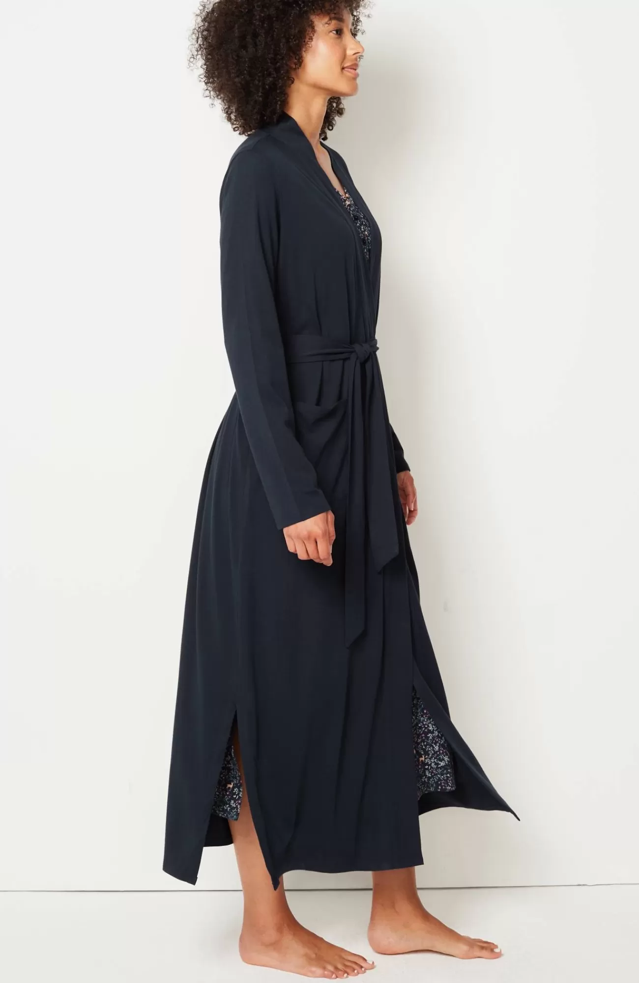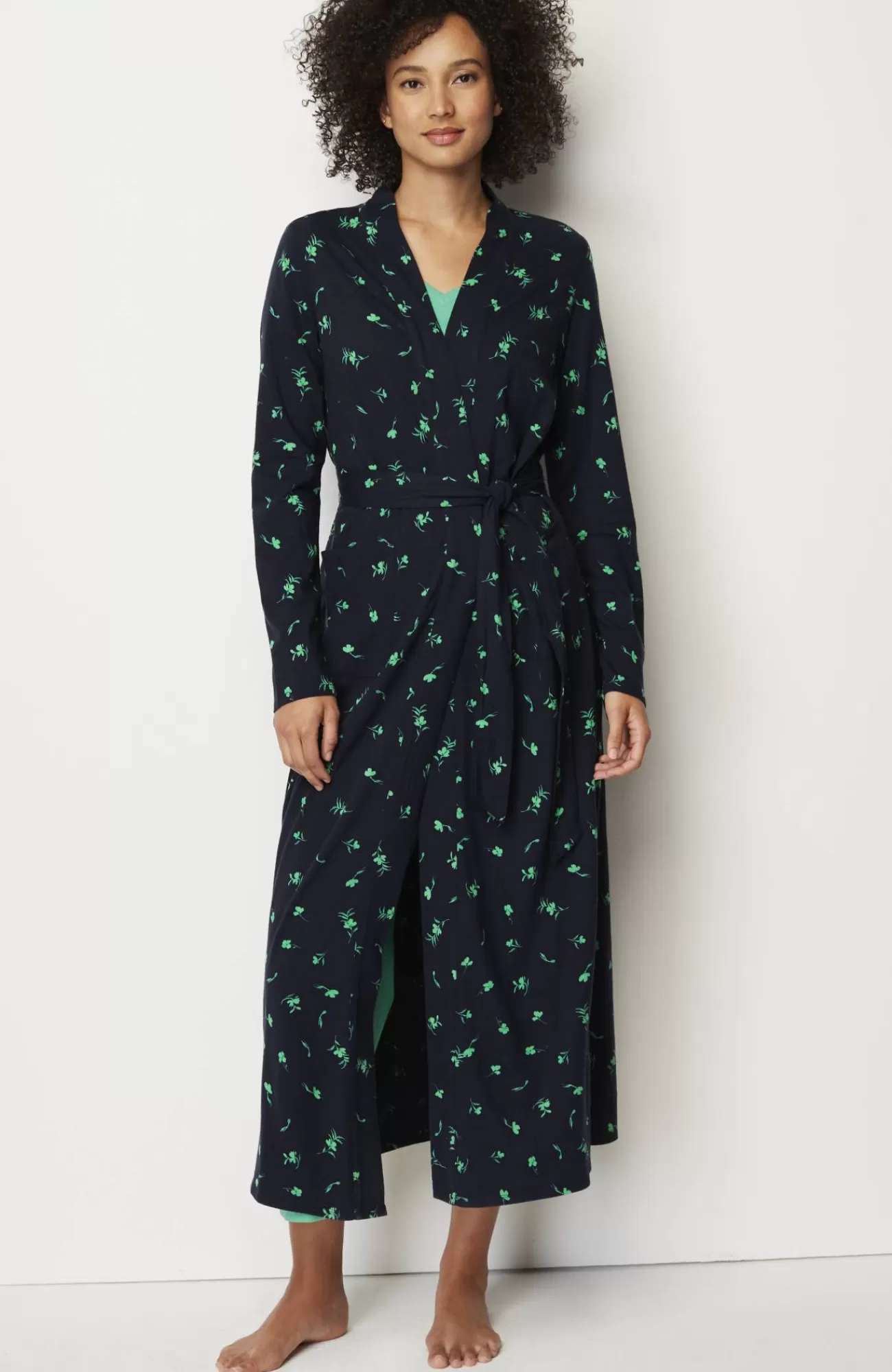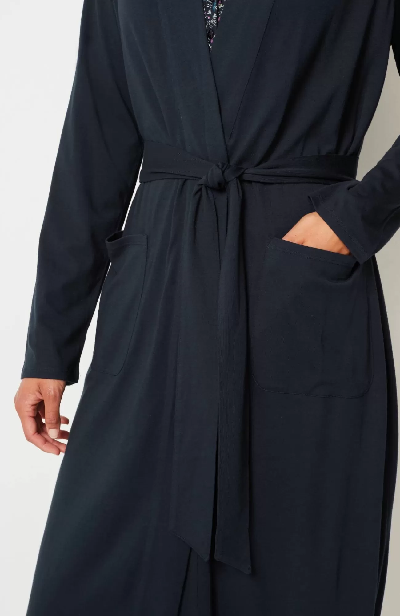 Our wrap-front robe is designed in our blend of cotton and Tencel™ modal for absolute softness. It's a luxurious layer for chilly mornings and evenings. A tie belt gives you the perfect fit, and patch pockets are a practical touch. Side vents. Band neckline.