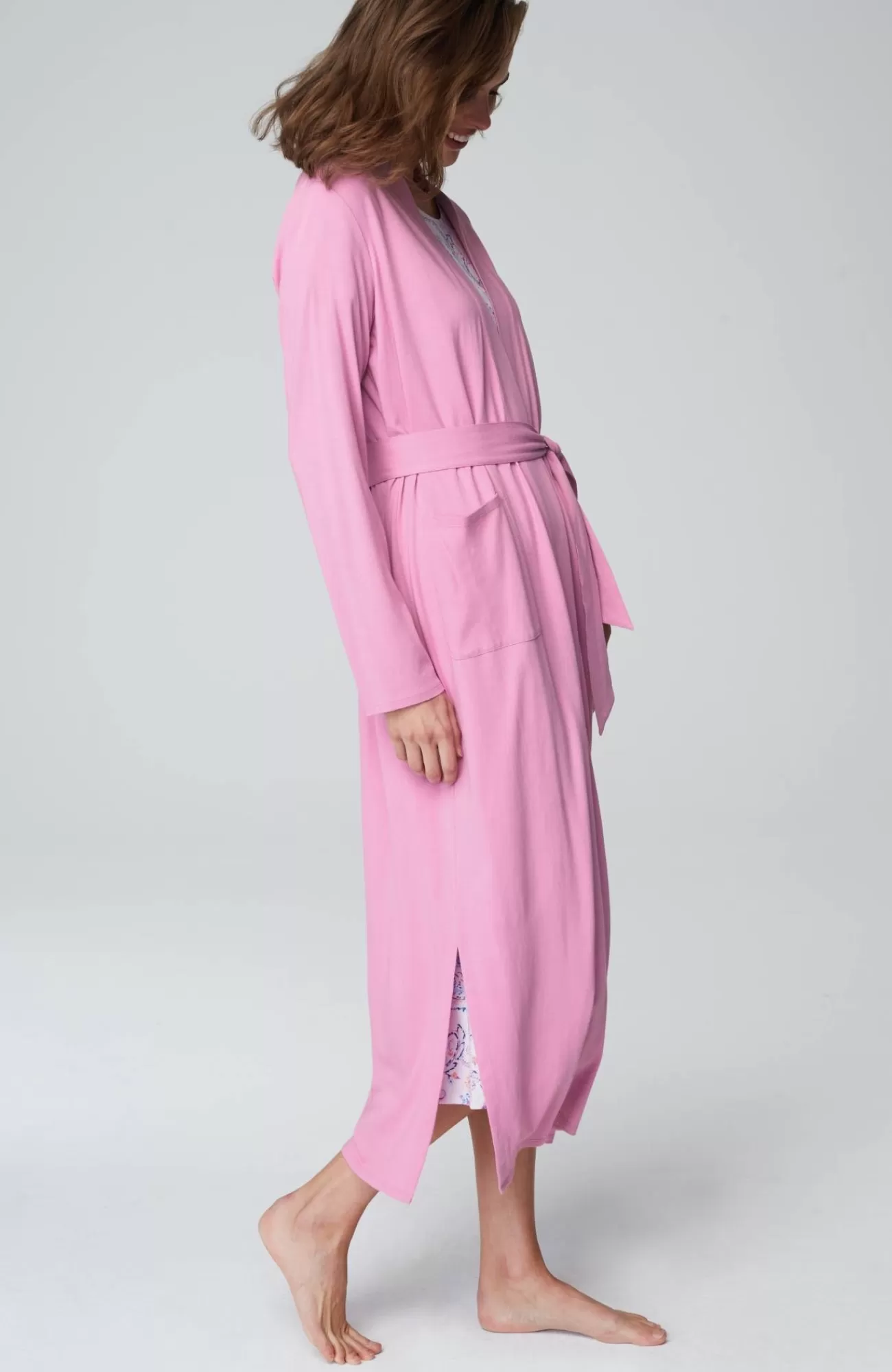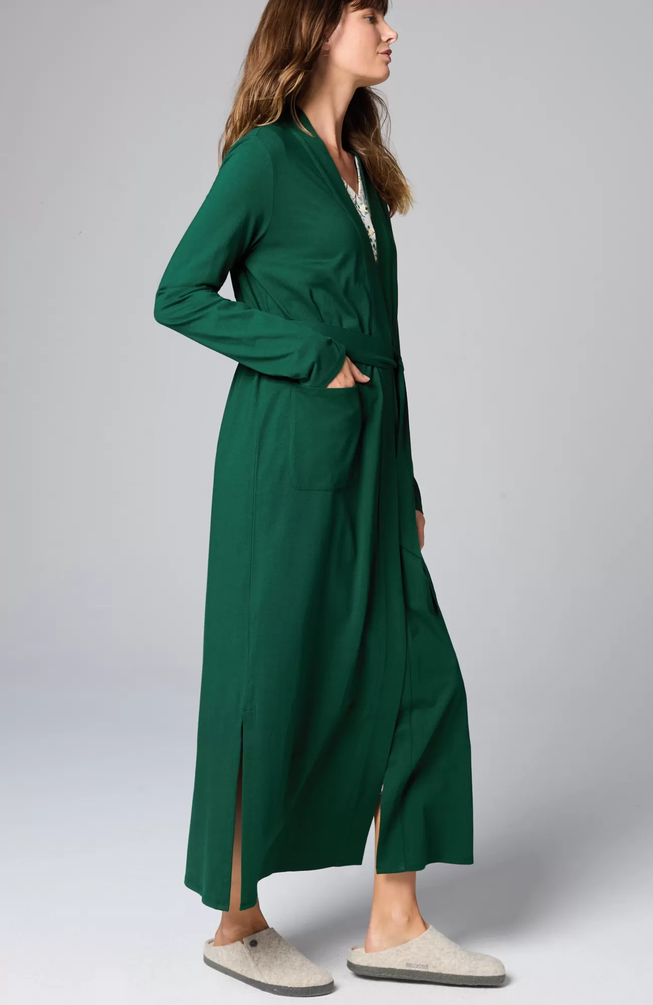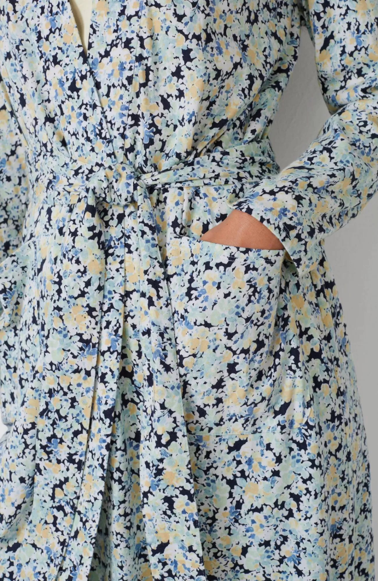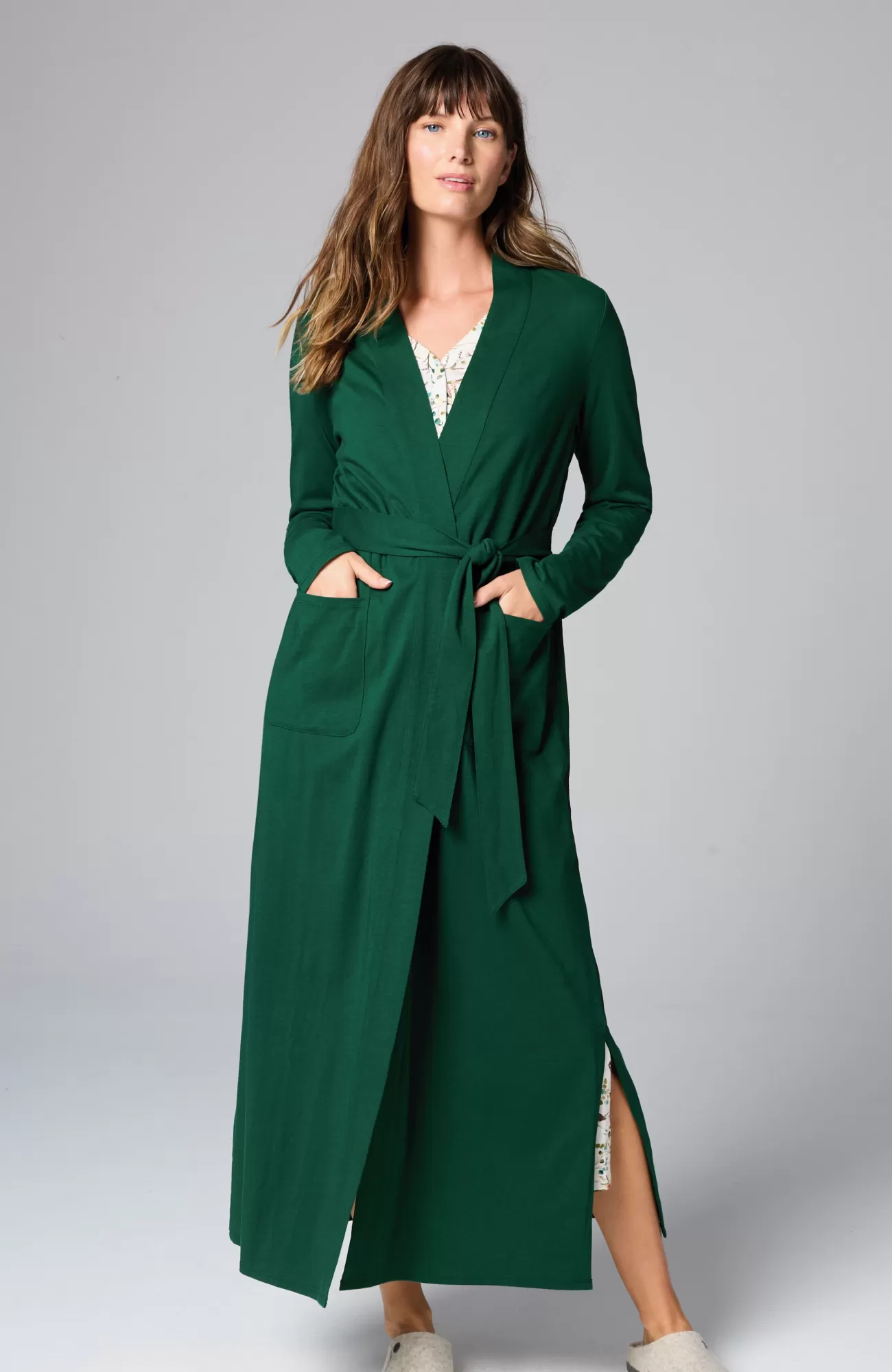 Our wrap-front robe is designed in our blend of cotton and Tencel™ modal for absolute softness. It's a luxurious layer for chilly mornings and evenings. A tie belt gives you the perfect fit, and patch pockets are a practical touch. Side vents. Band neckline.