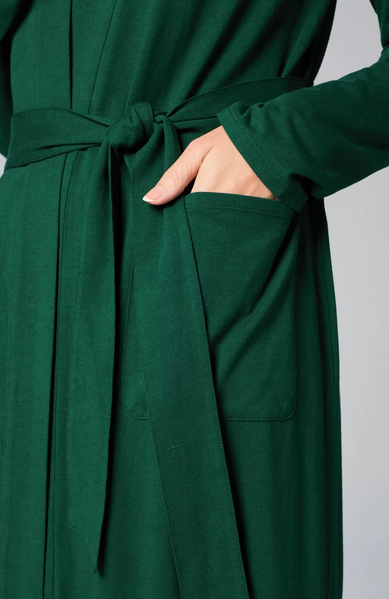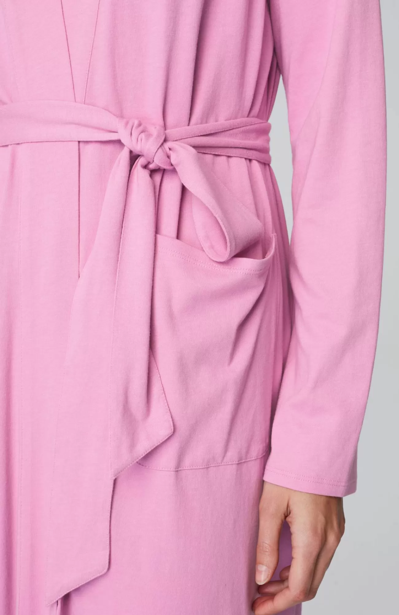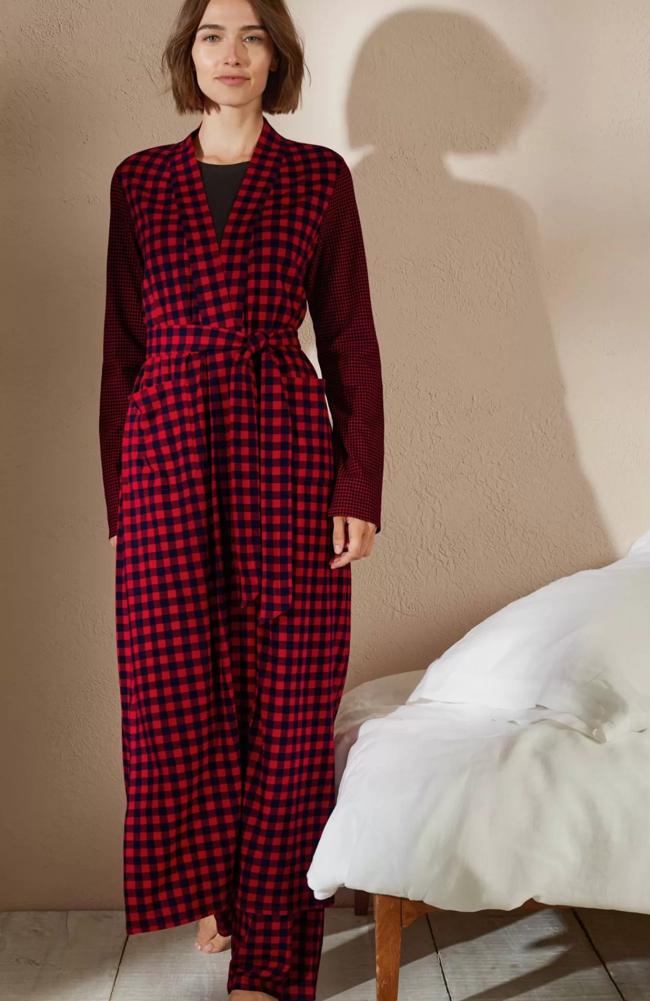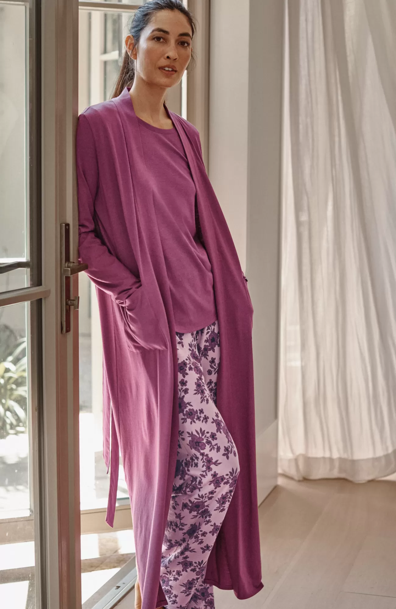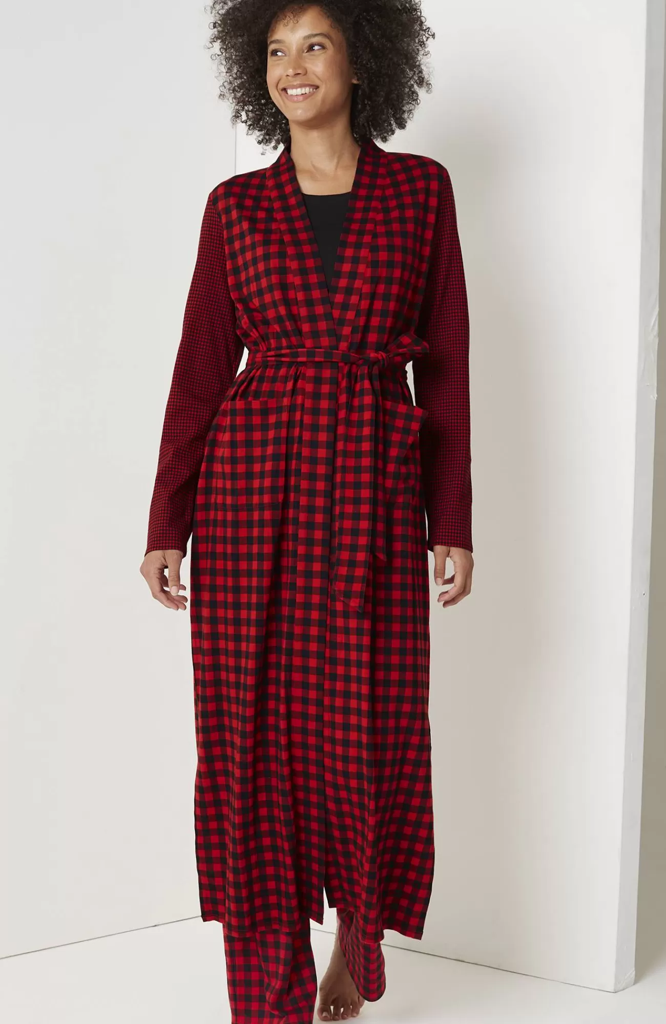 Our wrap-front robe is designed in our blend of cotton and Tencel™ modal for absolute softness. It's a luxurious layer for chilly mornings and evenings. A tie belt gives you the perfect fit, and patch pockets are a practical touch. Side vents. Band neckline.