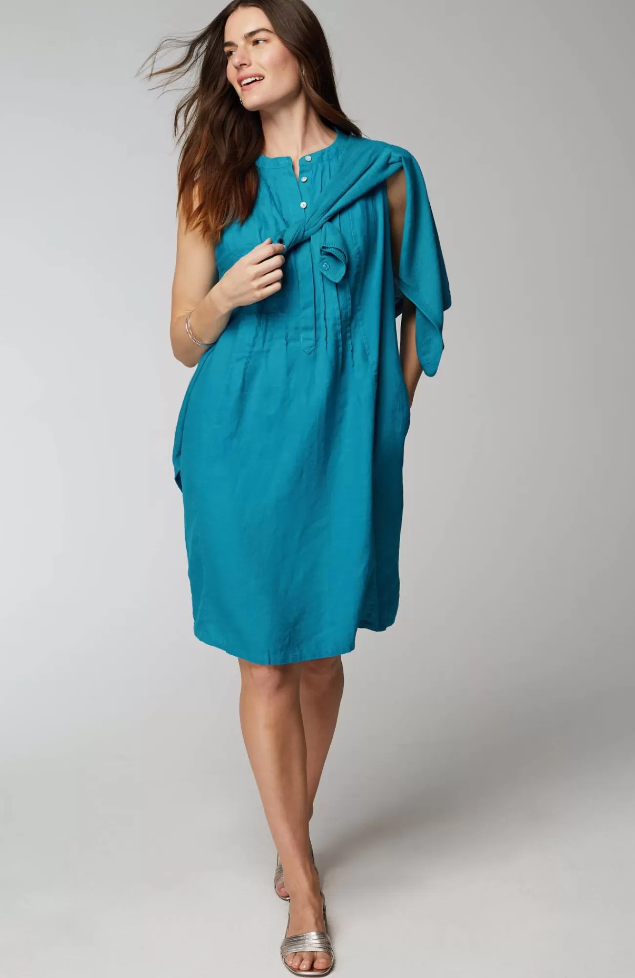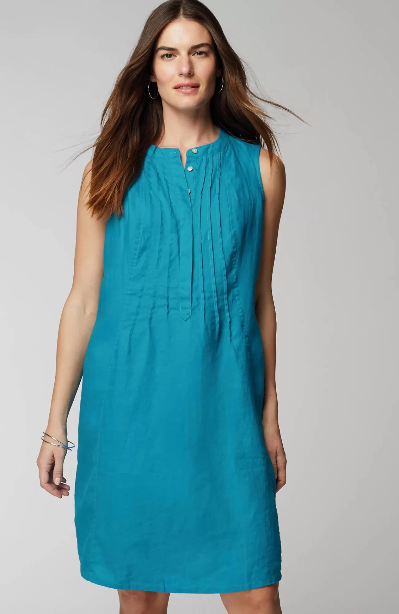 Everyday summer ease starts and ends with a linen dress. We love the pintucks and hidden button placket on the center front that add just-right detail. Our favorite part? It has pockets!