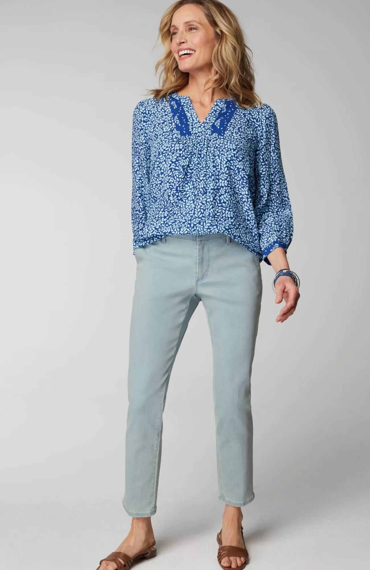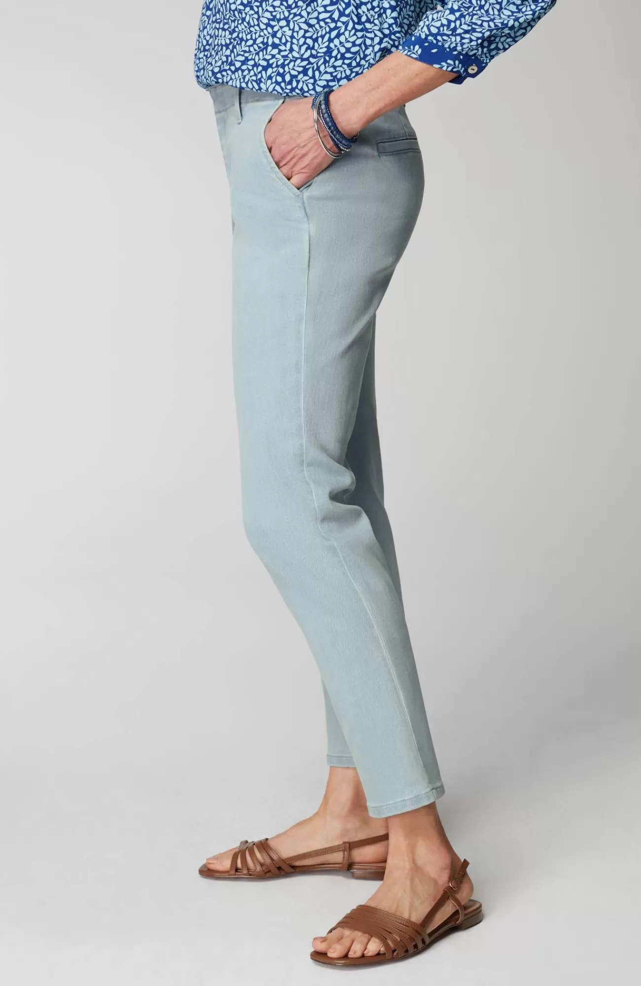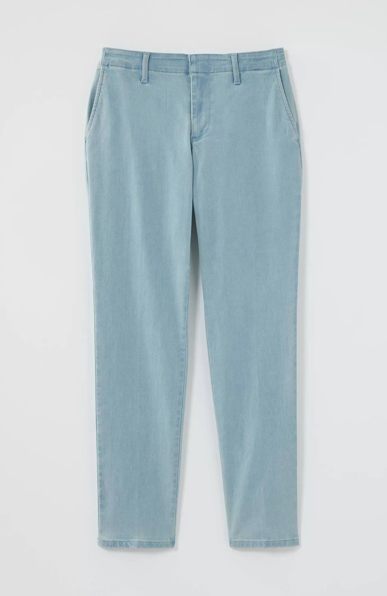 The slim-leg trouser, elevated for summer in a light denim wash. We kept the classic details you love—an ankle length, angled front pockets, back welt pockets and a hook-and-bar zipper-fly closure. It's a polished style that easily starts so many outfits.