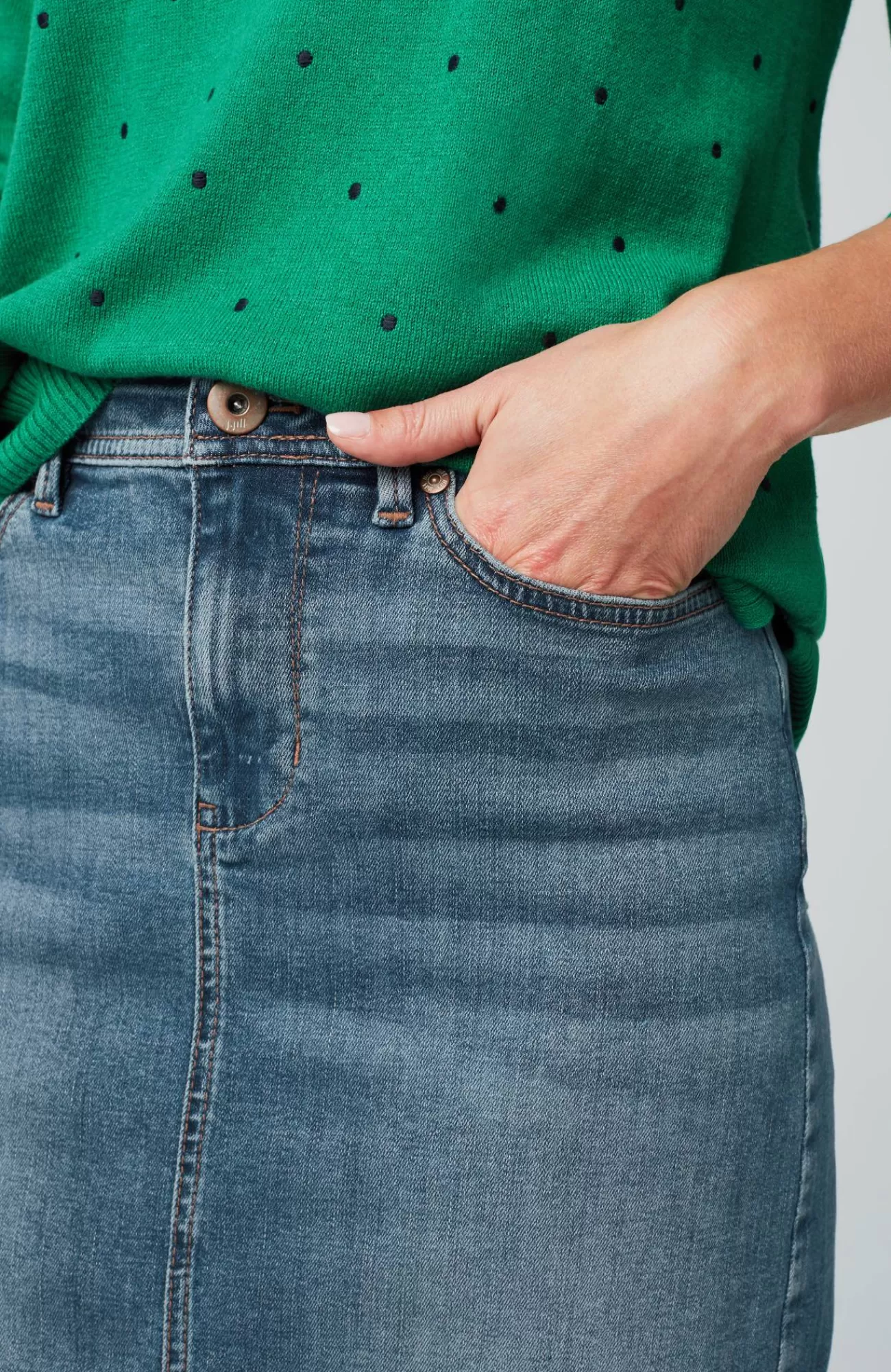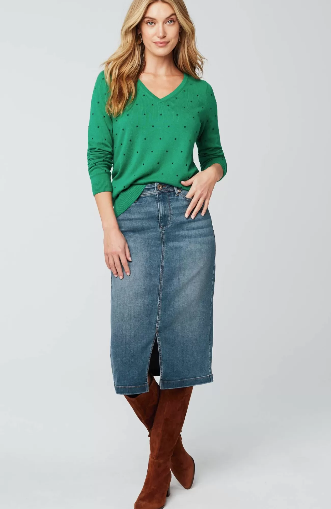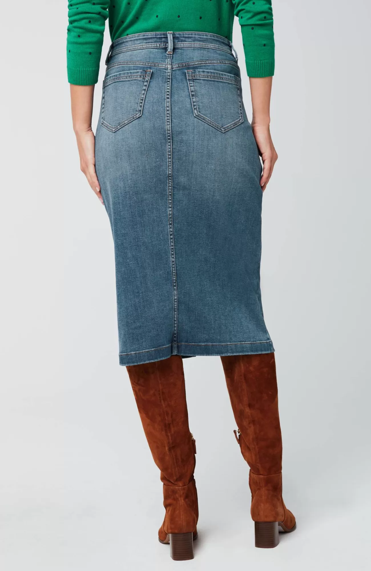More than denim, perfect for every day. Meet our slit-hem denim midi skirt, a dressed-up step up from jeans, designed to go anywhere comfortably.