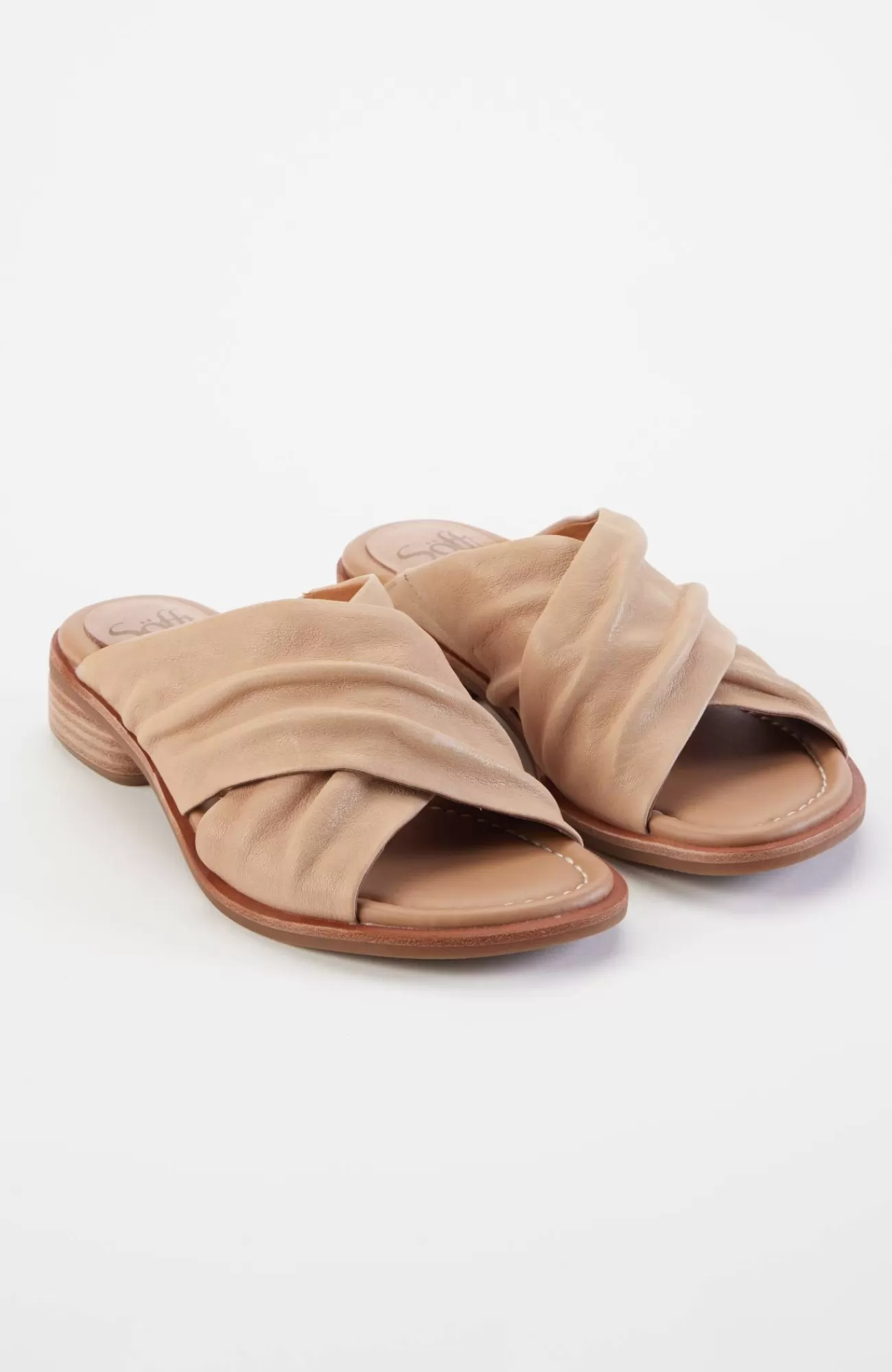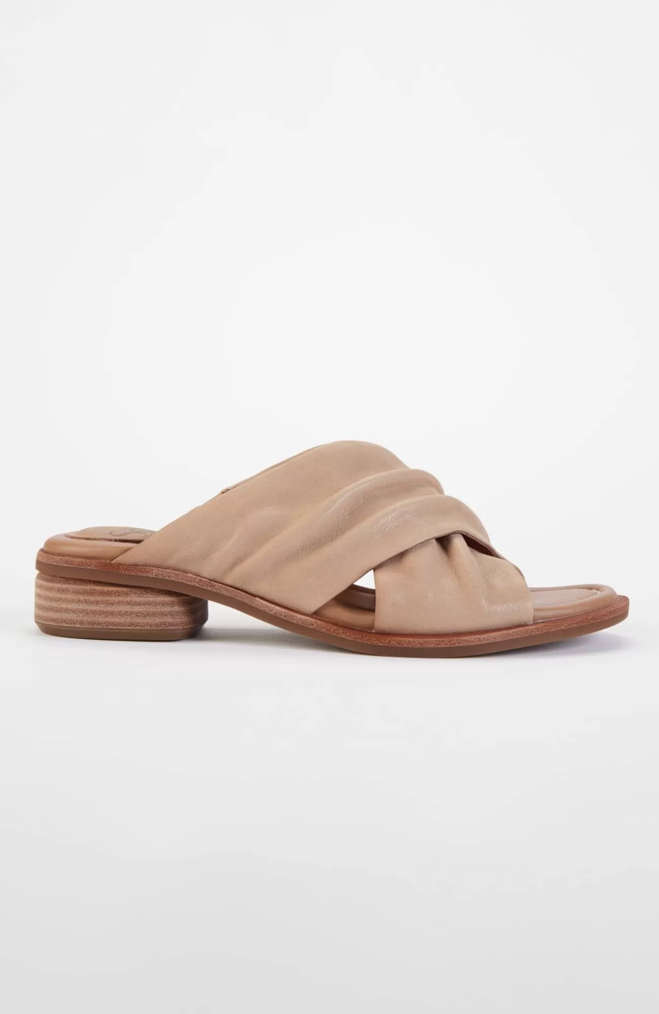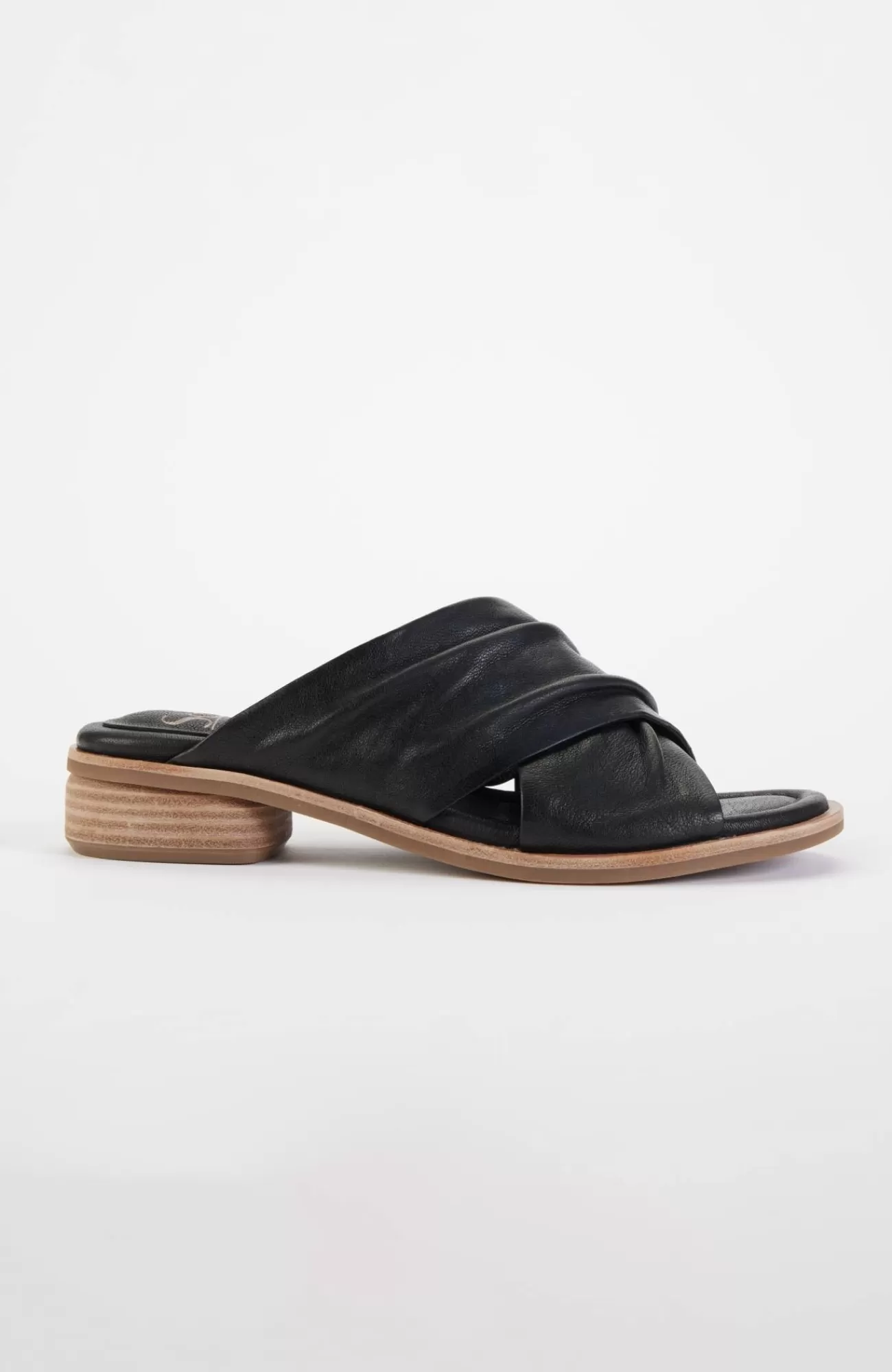 Chic leather slides with an elegant crisscross strap and classic low block heel. 1½" heel.