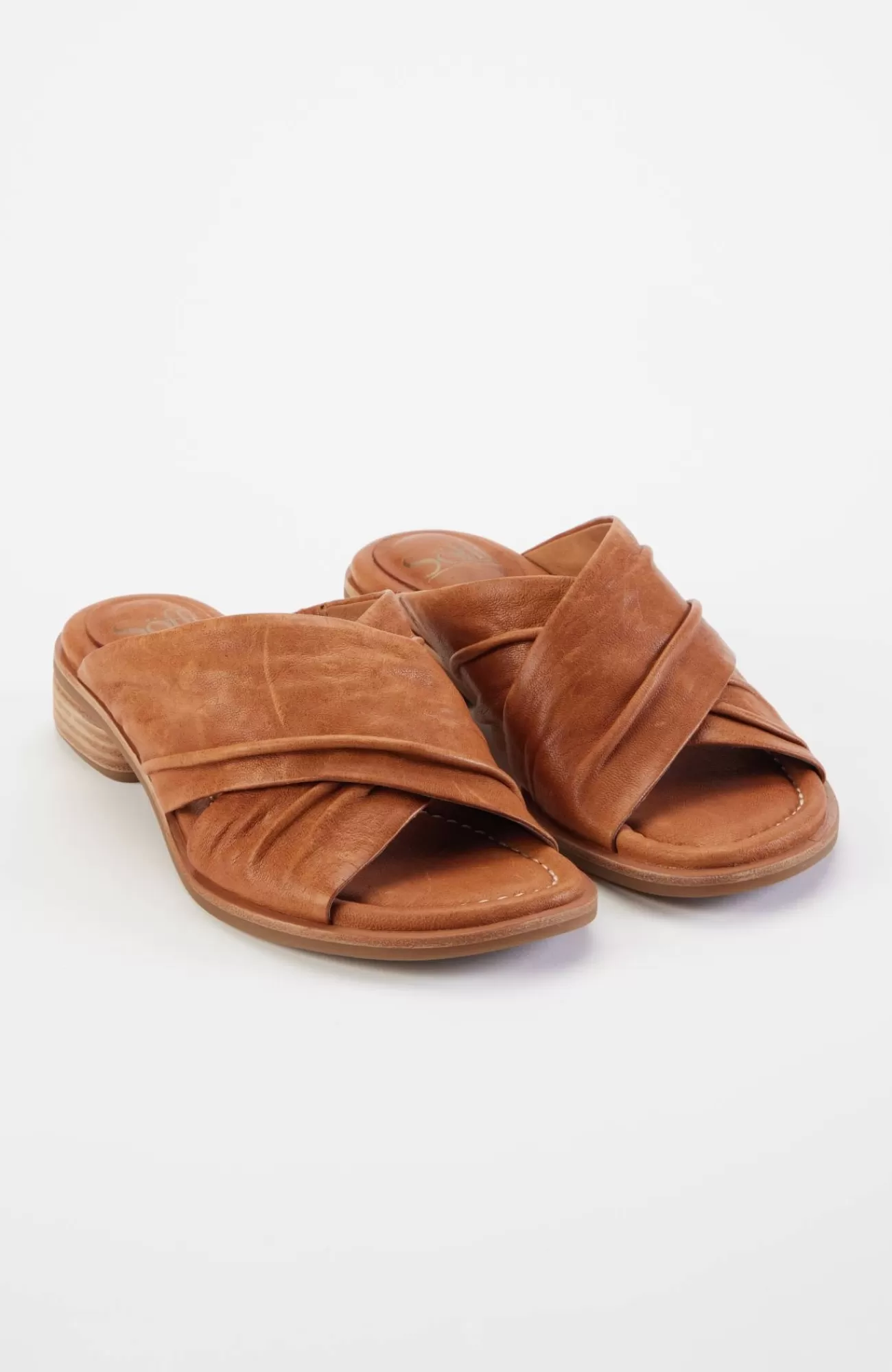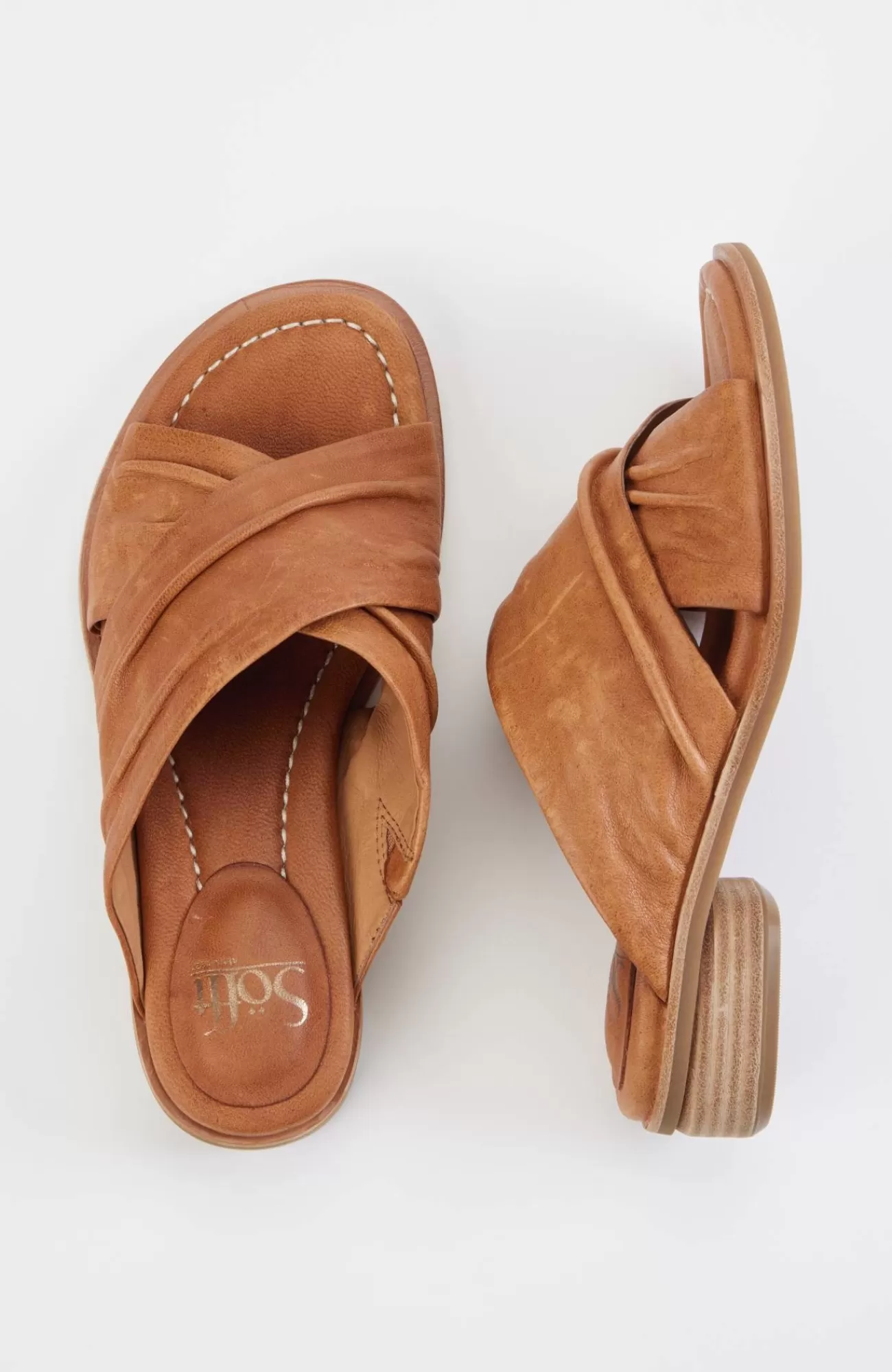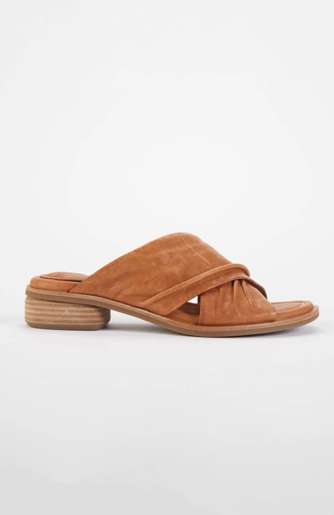 Chic leather slides with an elegant crisscross strap and classic low block heel. 1½" heel.