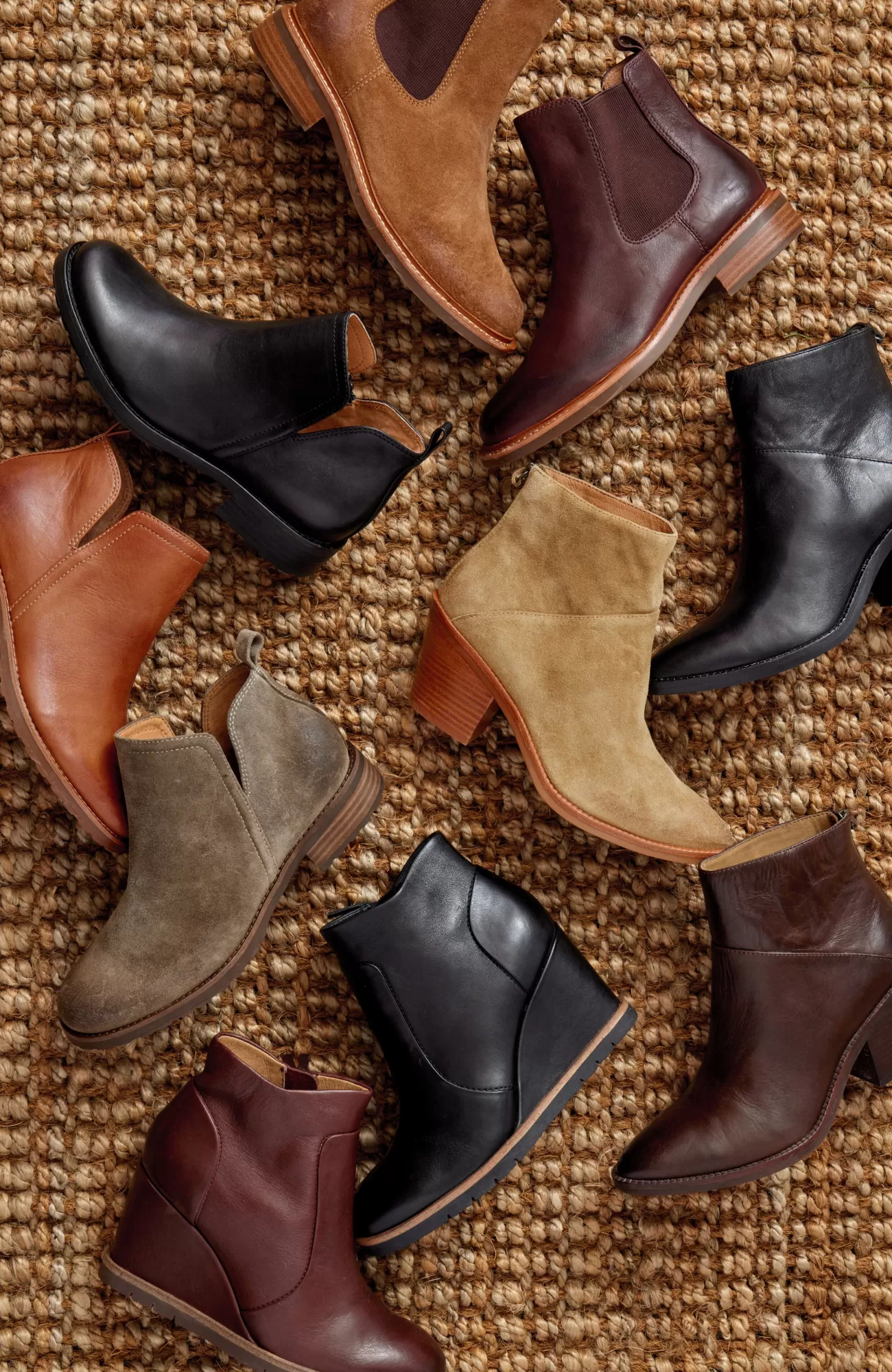 These waterproof everyday ankle boots get a fresh update with a 3¼" covered wedge heel. Side-zip closure for easy wear. Leather sock 4mm latex and 6mm foam at ball and heel, plus arch support. Lightweight TPR outsole with crepe-textured and grooved bottom for flexibility and traction. Rounded toe. AQUA Sofft® waterproof collection. Catalog & Online Exclusive.