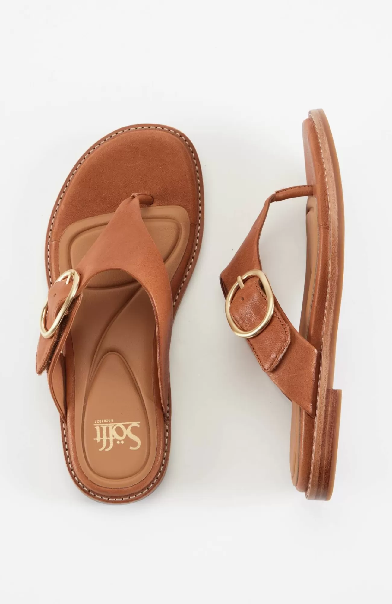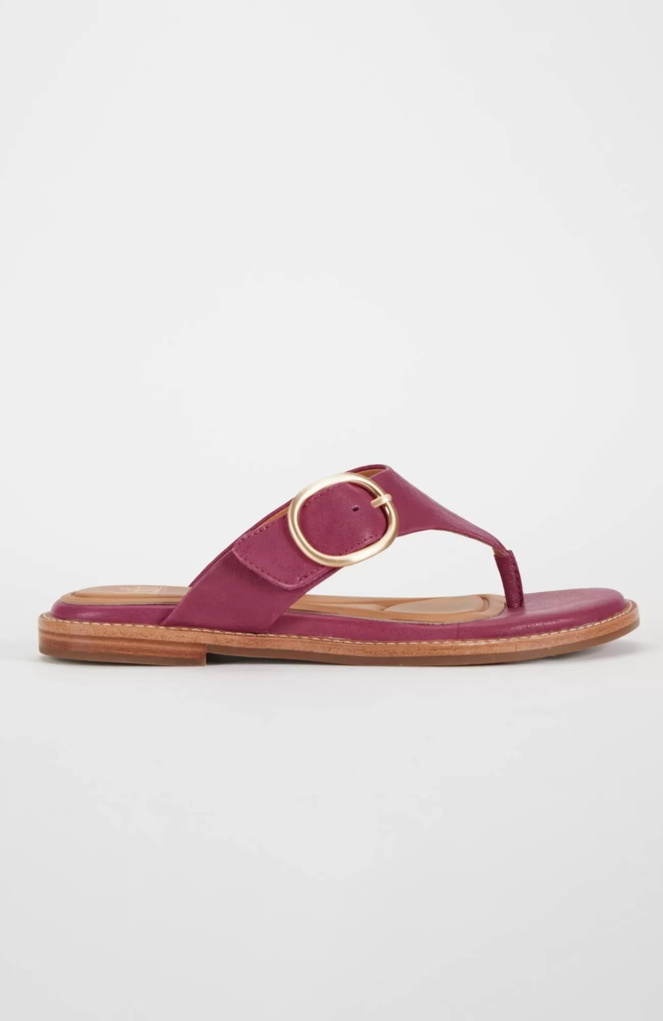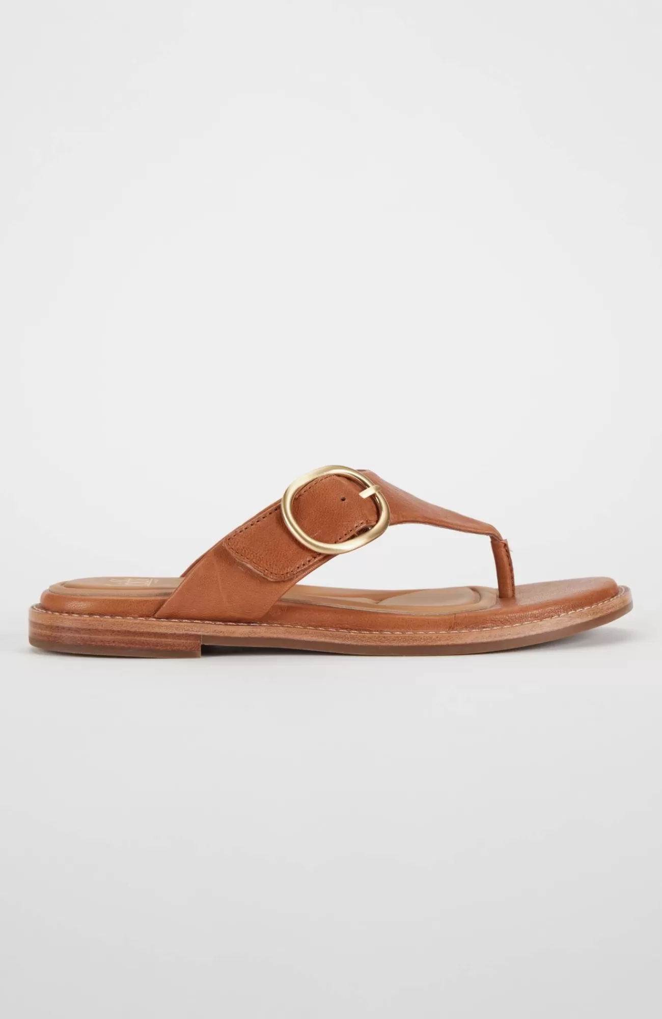 The thong sandal, elevated: designed with a smooth leather silhouette and plush cushioning, it's lightweight and flexible to provide ultimate comfort throughout summer. The adjustable strap and buckle detail makes them easy to customize for a secure fit. ¾" heel.