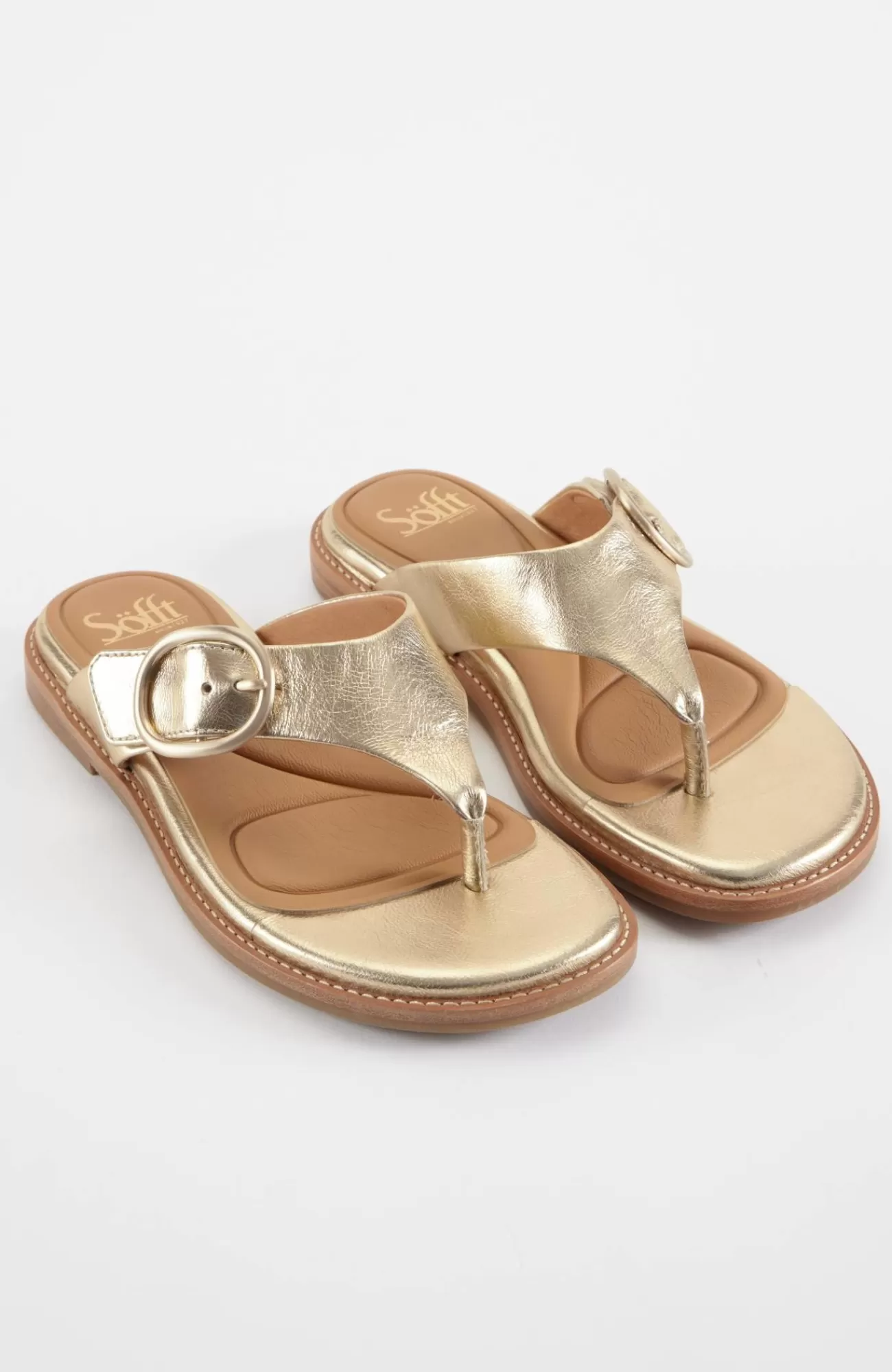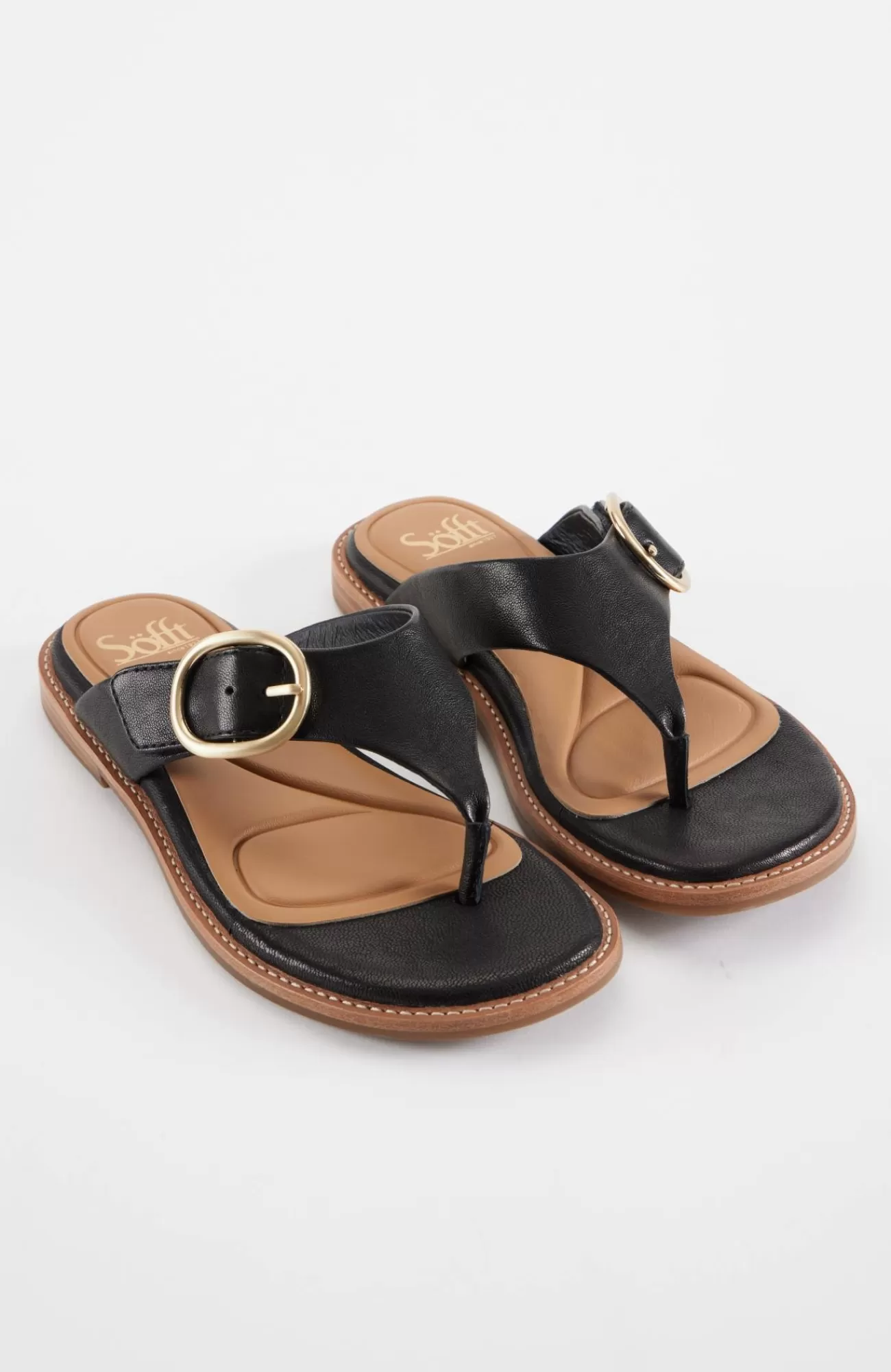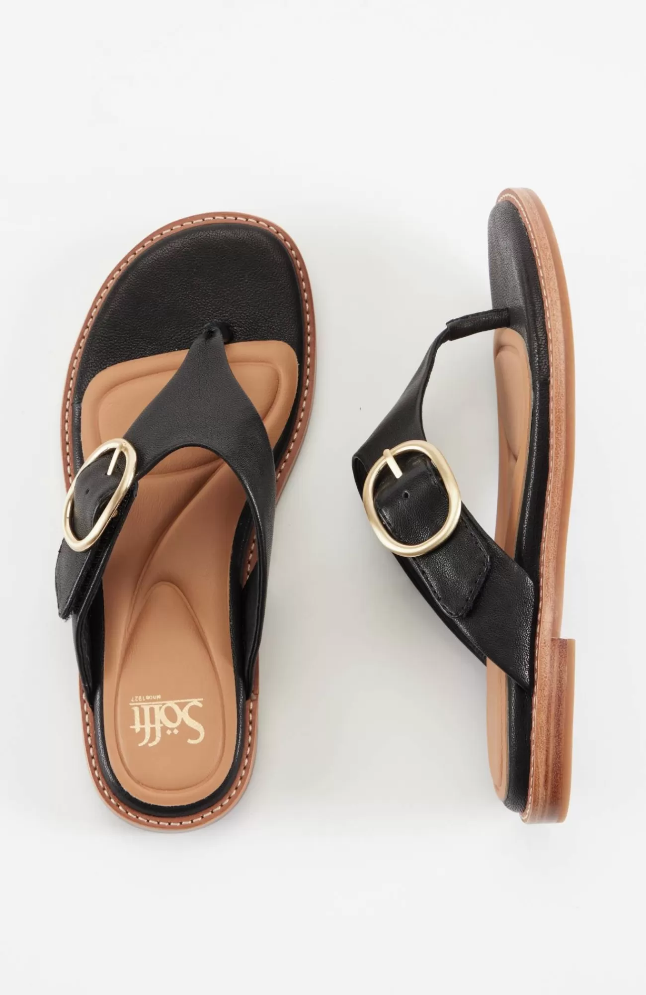 The thong sandal, elevated: designed with a smooth leather silhouette and plush cushioning, it's lightweight and flexible to provide ultimate comfort throughout summer. The adjustable strap and buckle detail makes them easy to customize for a secure fit. ¾" heel.