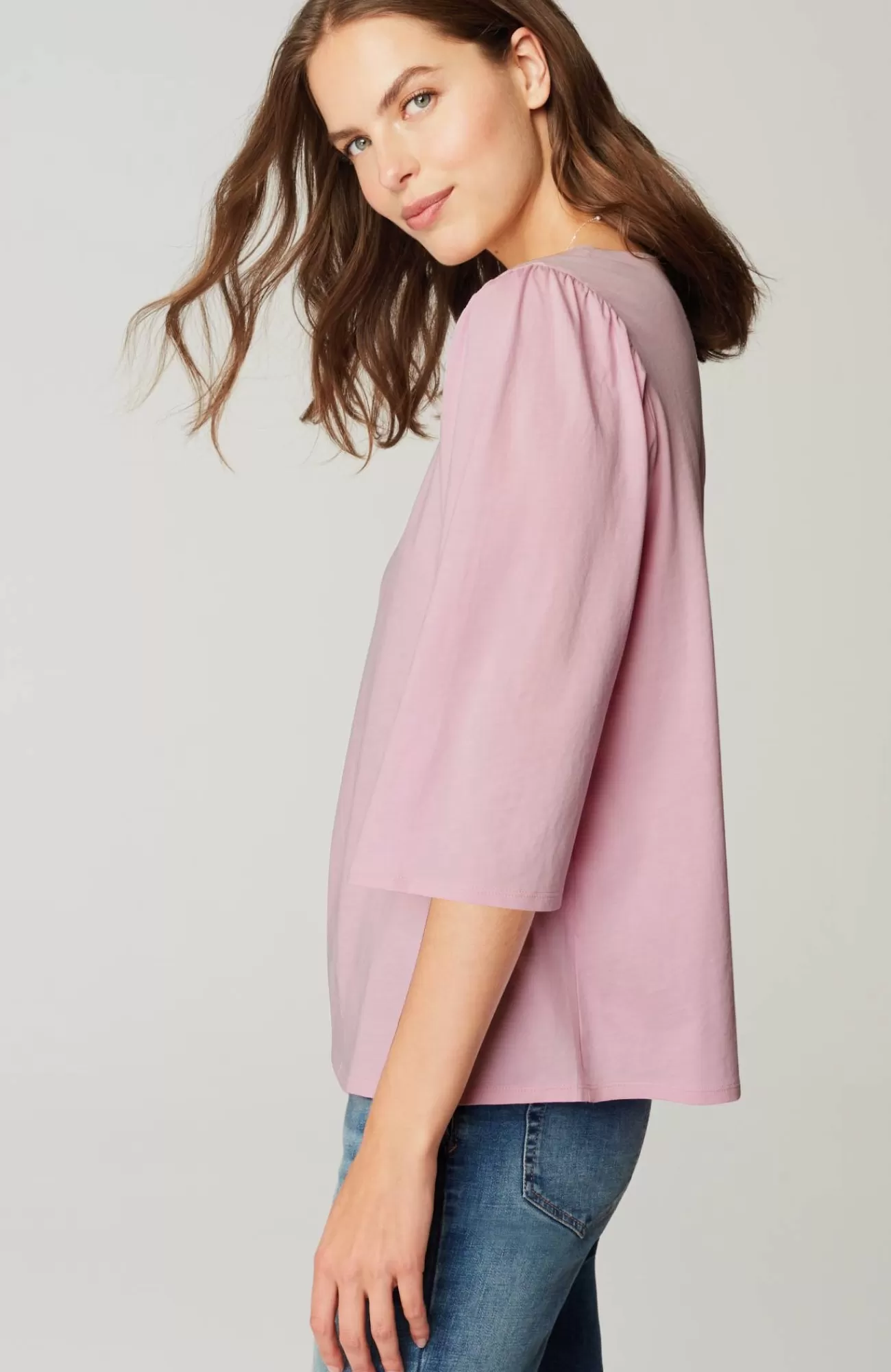 Our light knit top is designed in 100% cotton, making it your softest everyday-wear essential. Flutter sleeves with shirring for a flattering fit and easy flow.