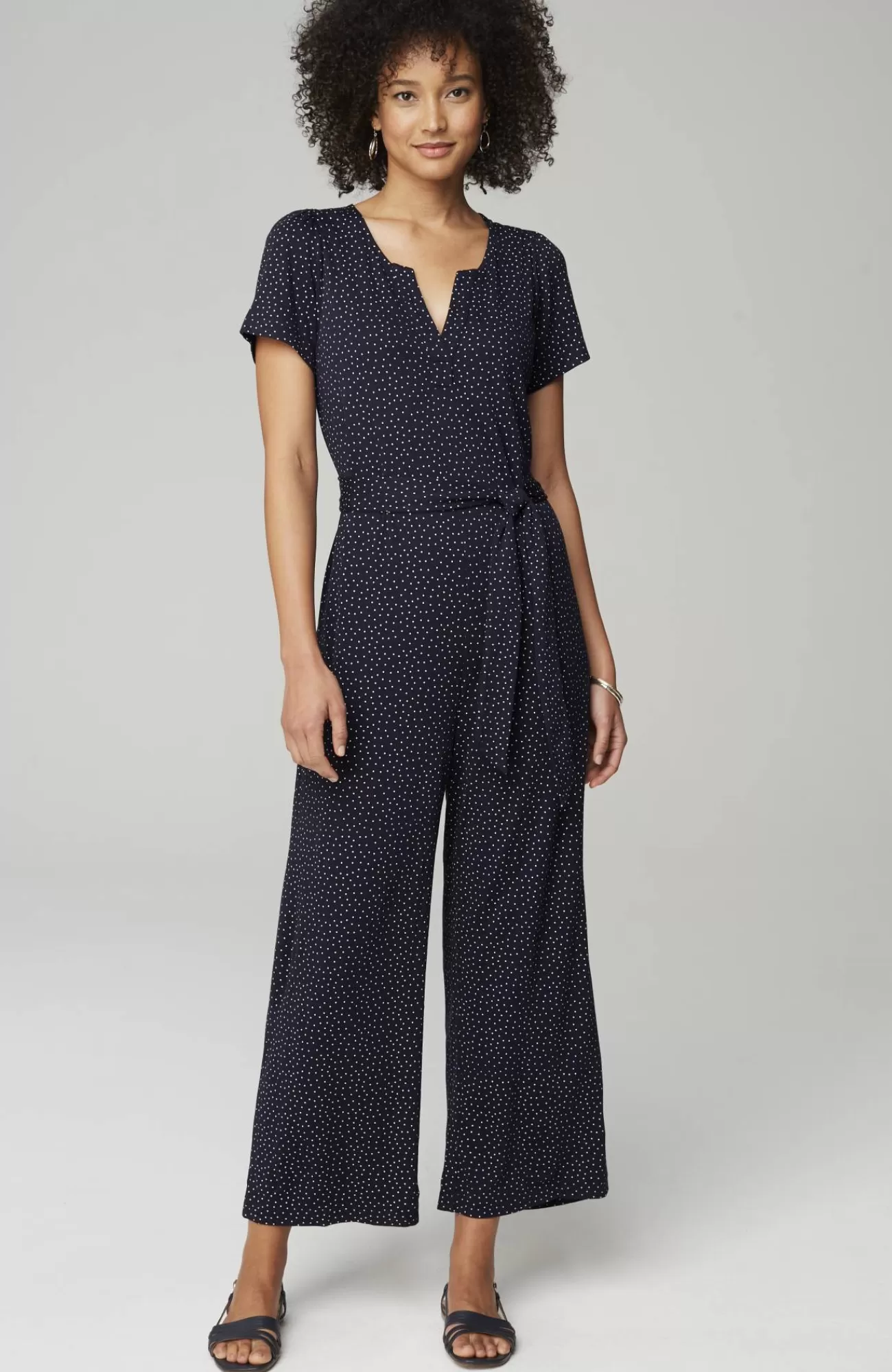 The one-piece wonder that has it all and then some?cropped length; a roomy, relaxed leg; supersoft texture; and perfectly placed pockets. Removable belt.