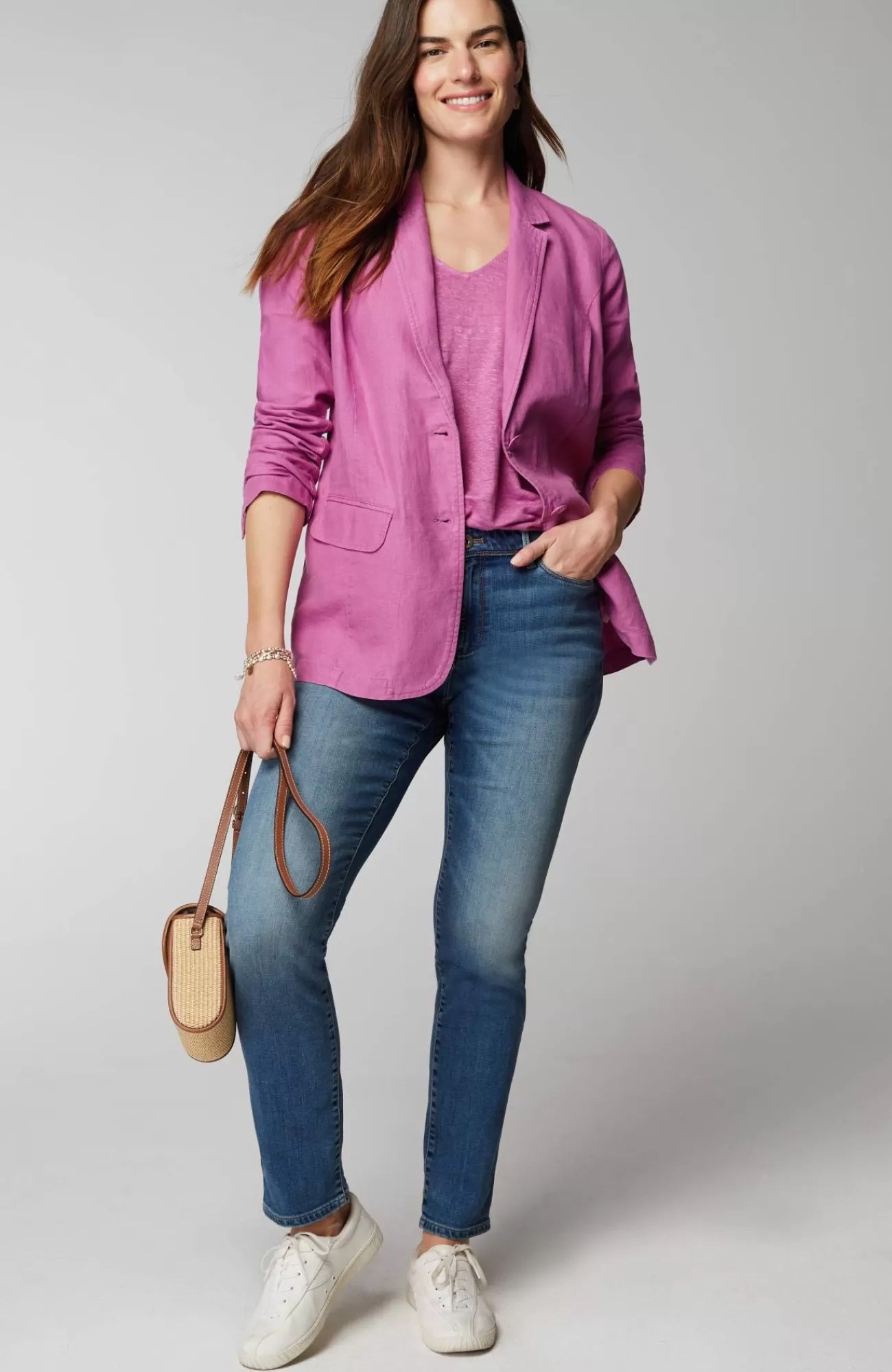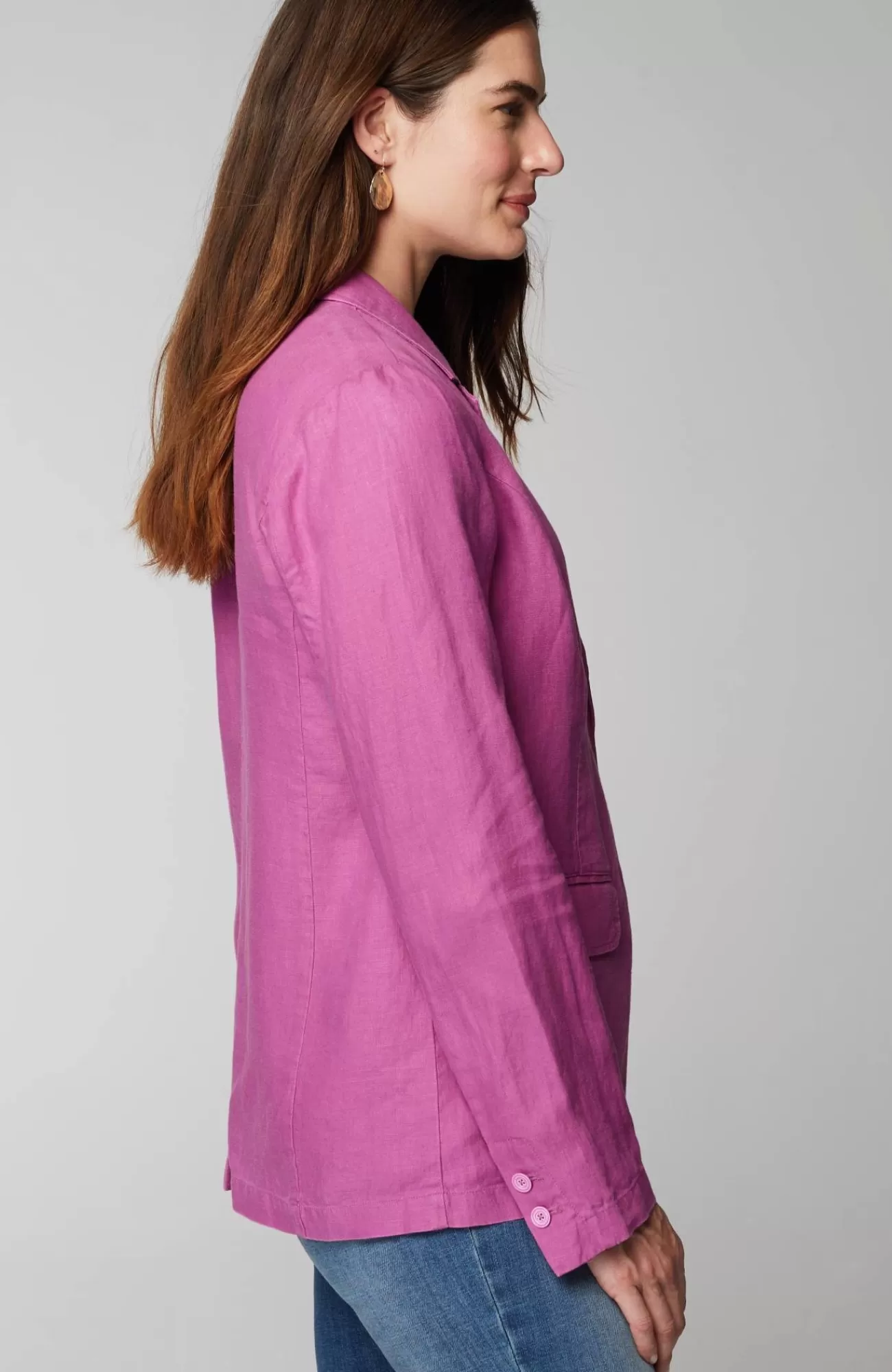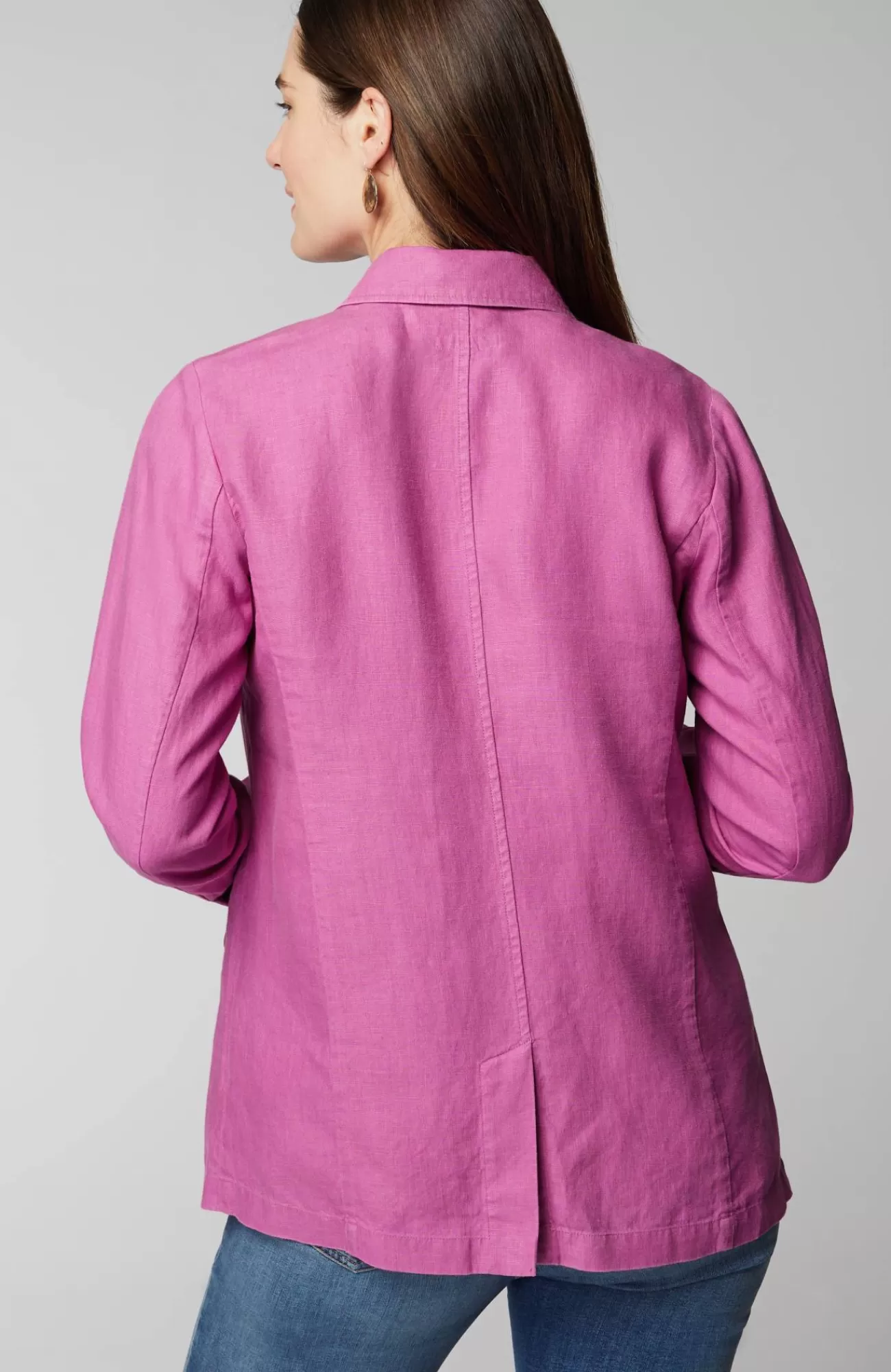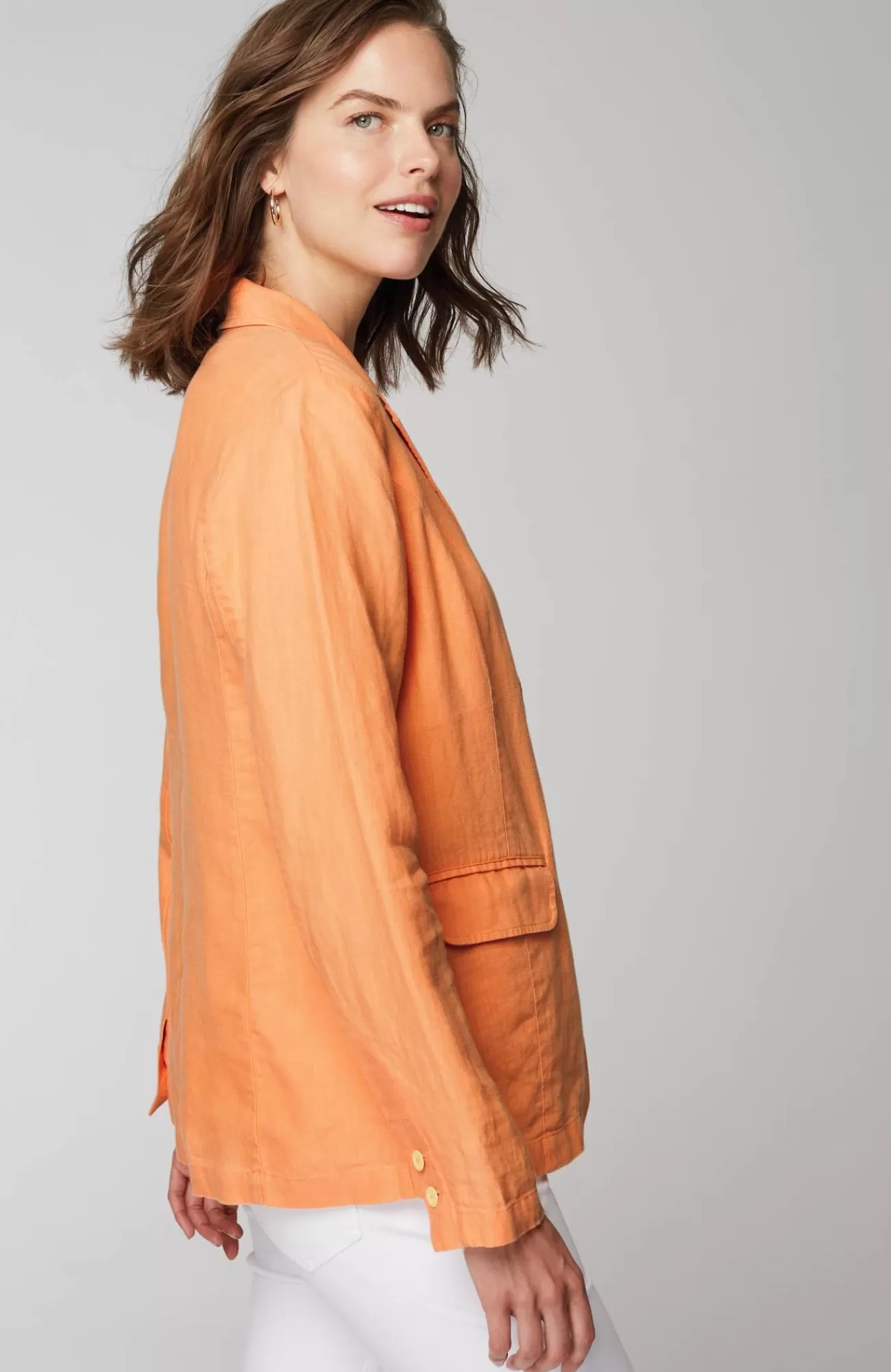 Summer in a jacket—our linen blazer is essential for the season. Designed with the classic details you love, like a notched collar, princess seams, two-button closure and flap pockets. Pair with our linen crops for a made-to-match set, or wear it with other styles in your closet like dresses or jeans.