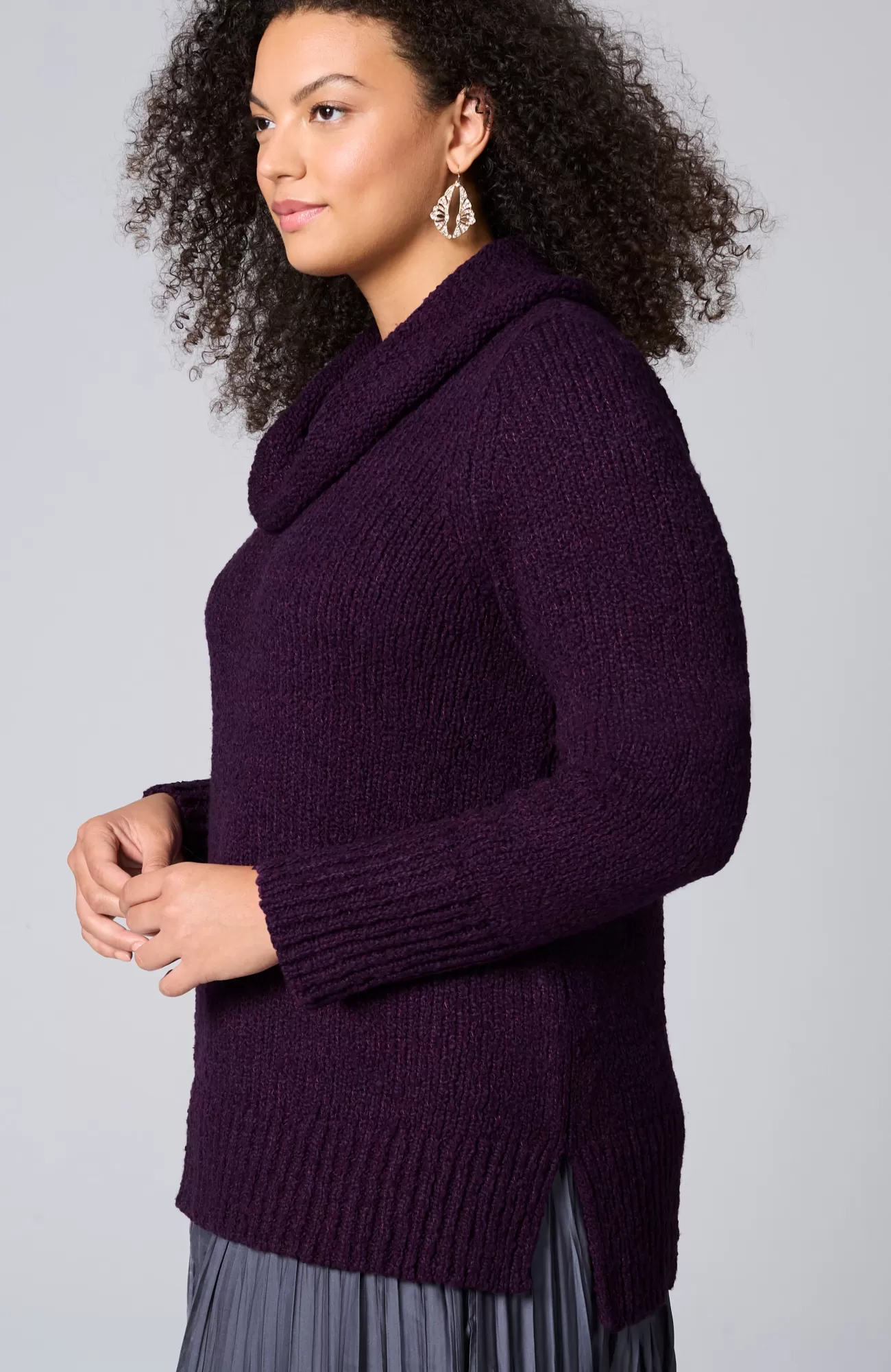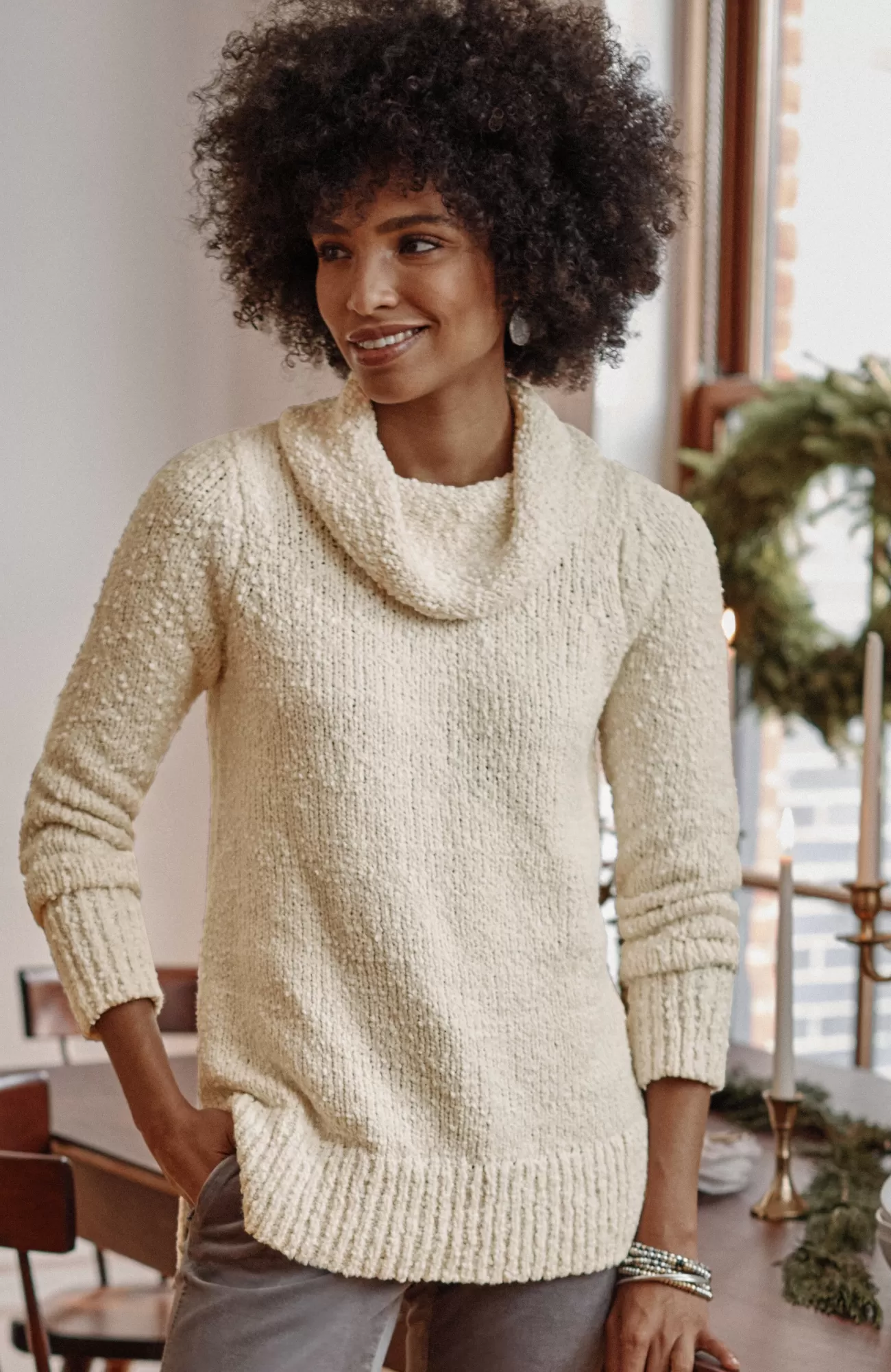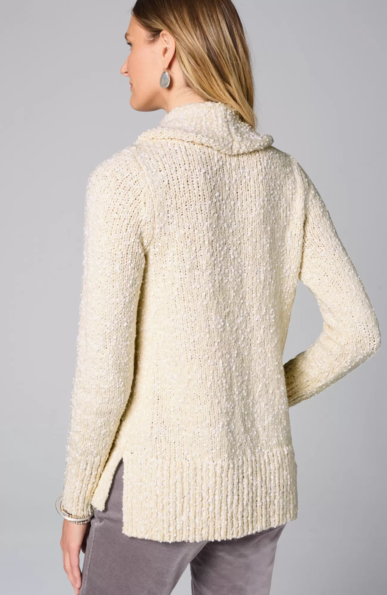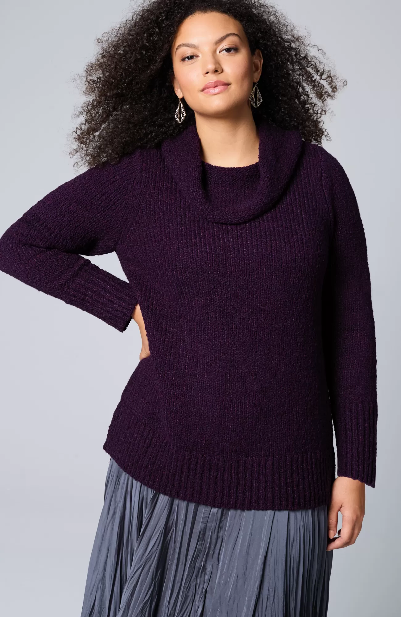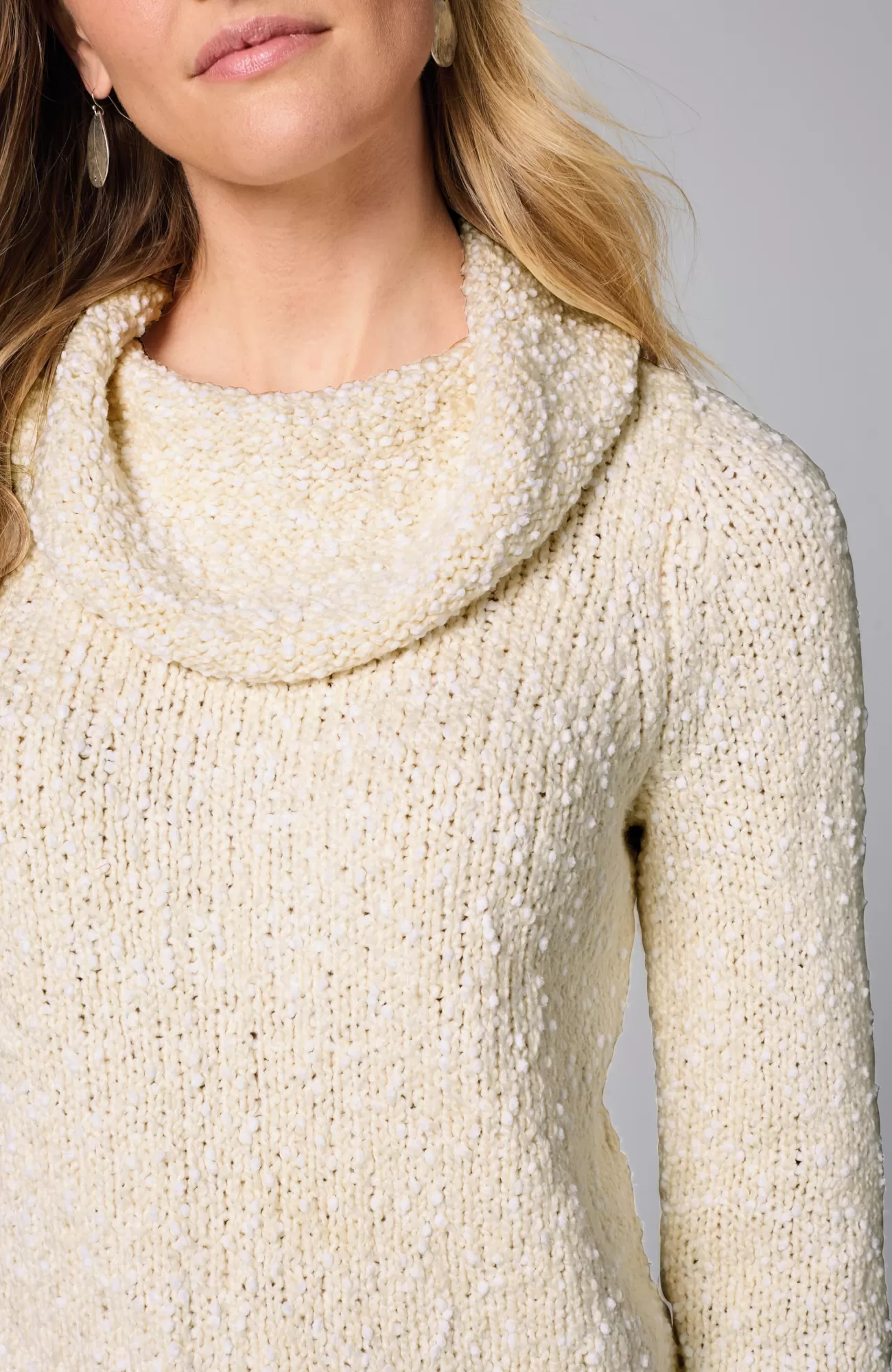 Our versatile sweater has a flattering cowl neckline and a perfectly relaxed shape. The cotton-blend knit is special too—it has a playful "popcorn" texture for added visual interest. Finished with ribbed cuffs and stepped hemline. Side vents.
