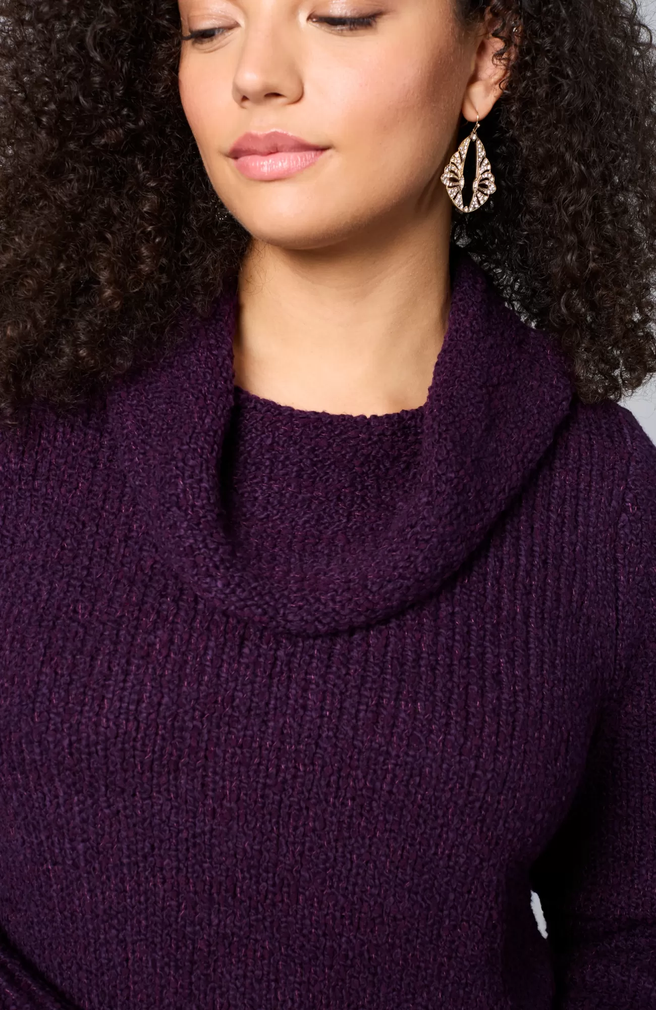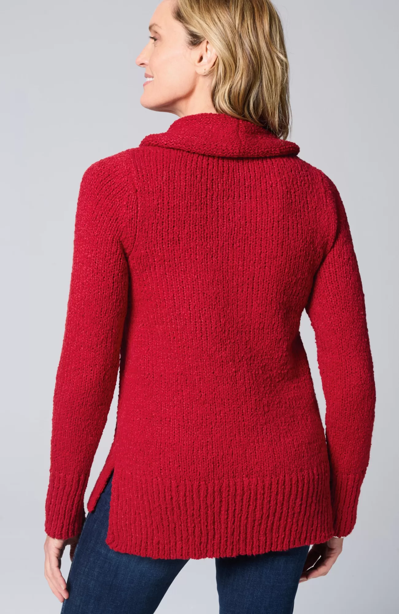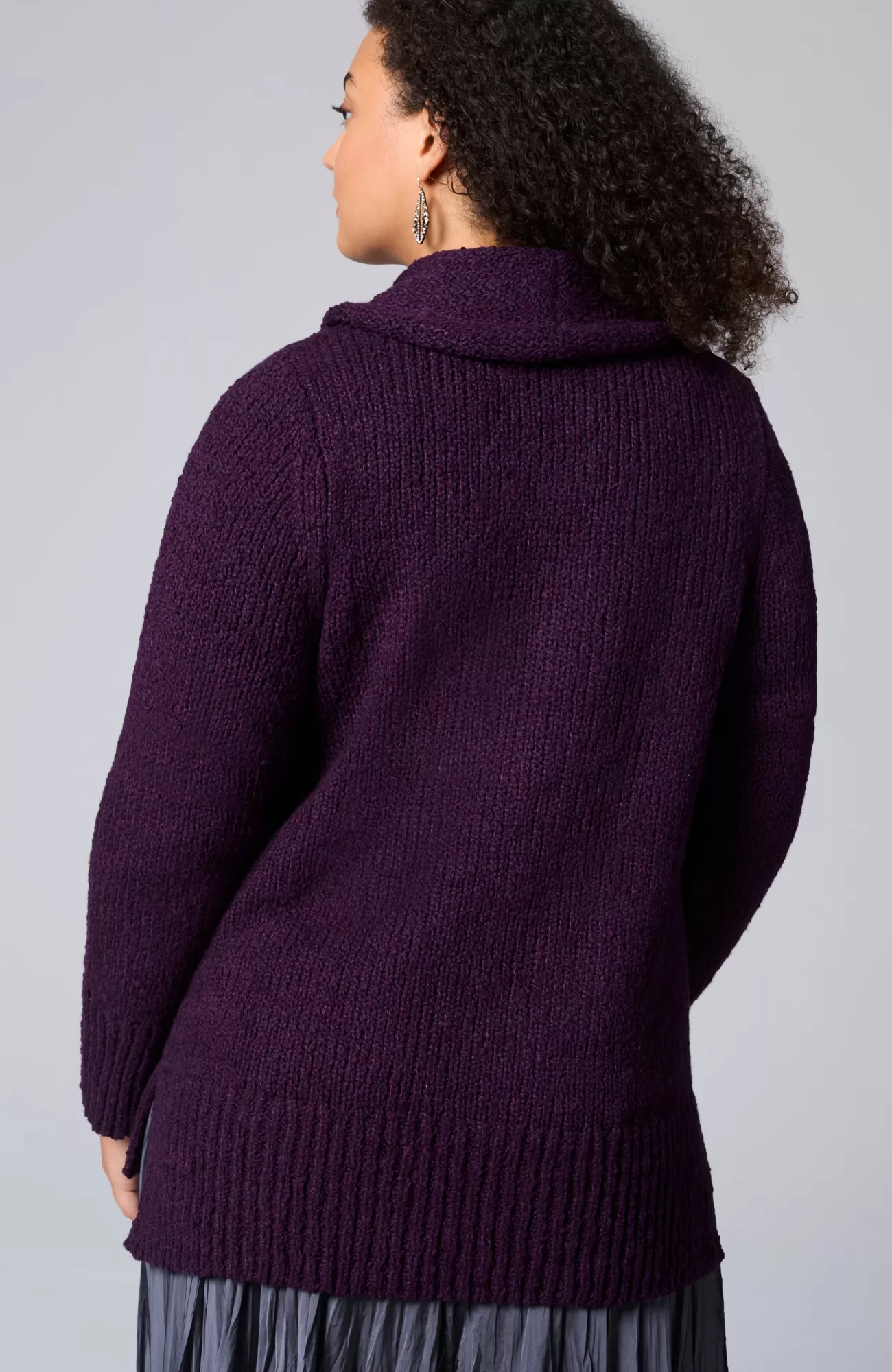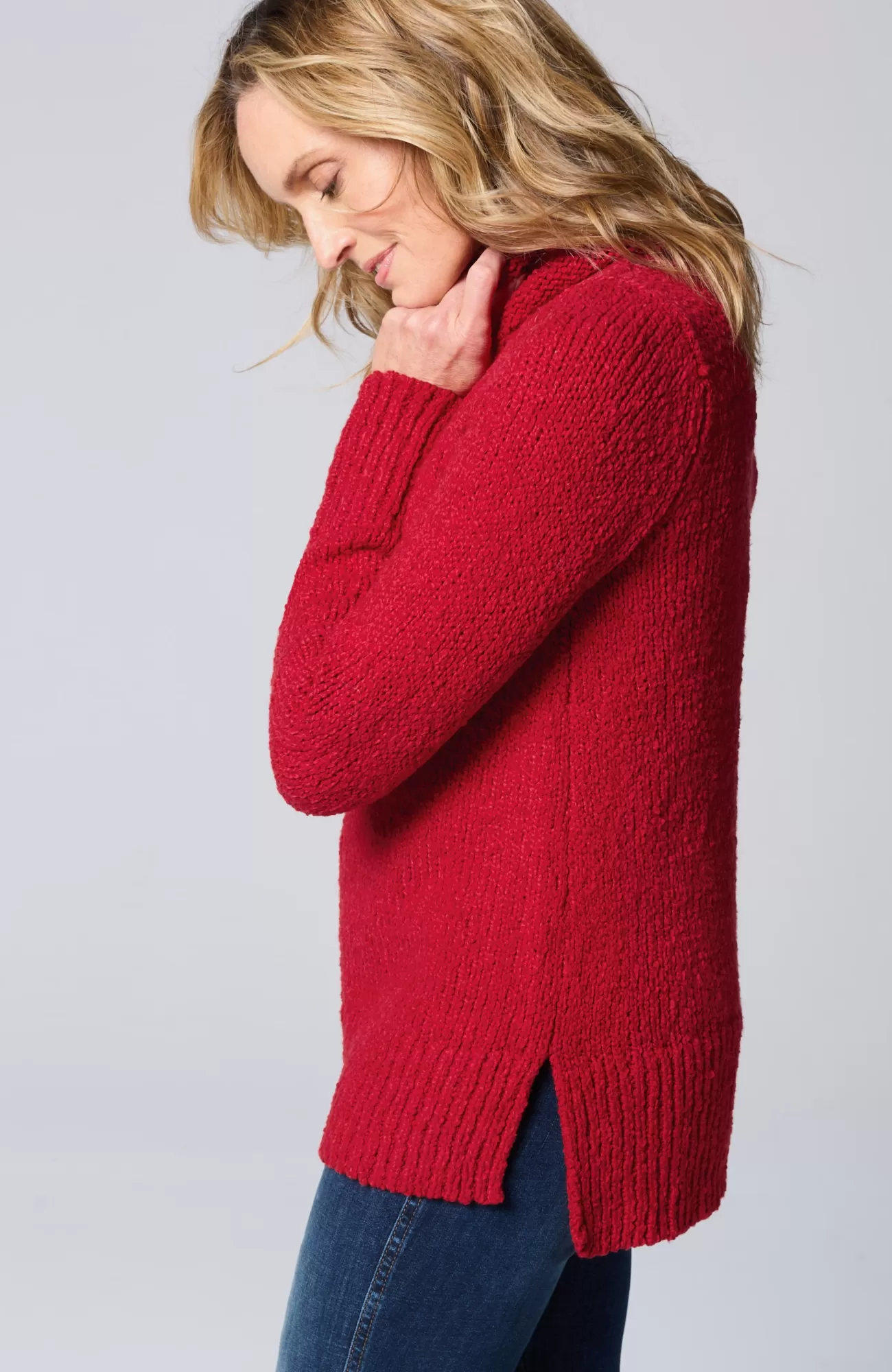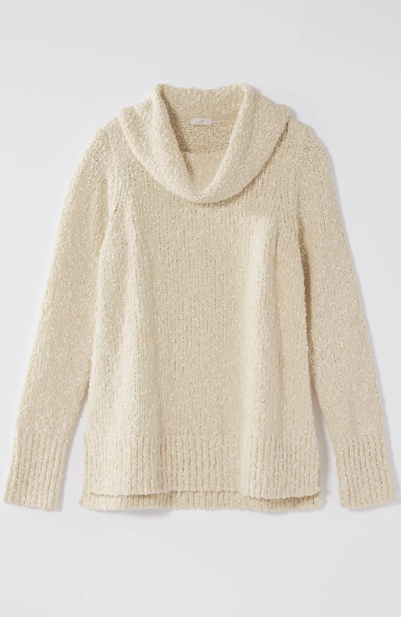 Our versatile sweater has a flattering cowl neckline and a perfectly relaxed shape. The cotton-blend knit is special too—it has a playful "popcorn" texture for added visual interest. Finished with ribbed cuffs and stepped hemline. Side vents.