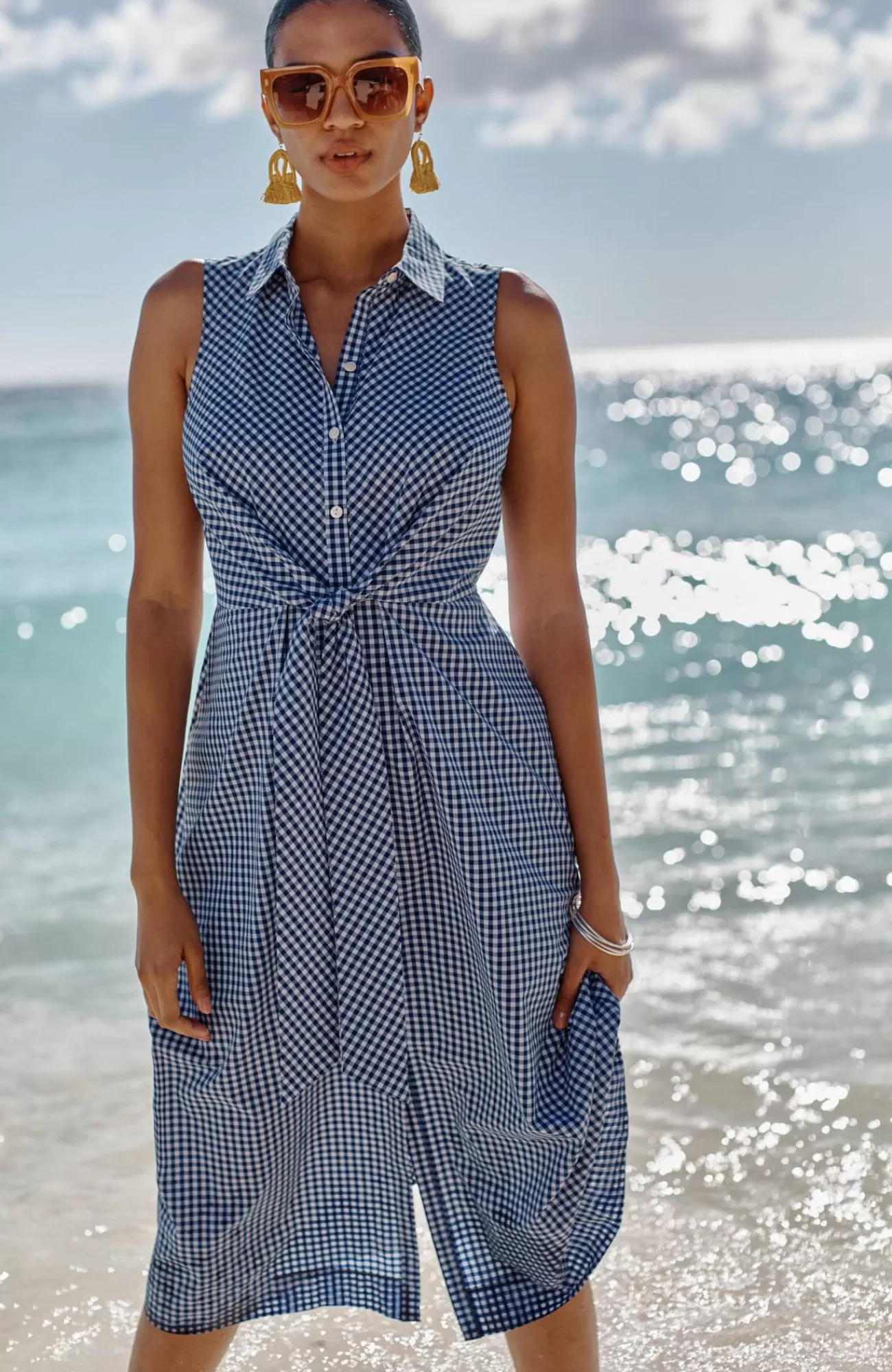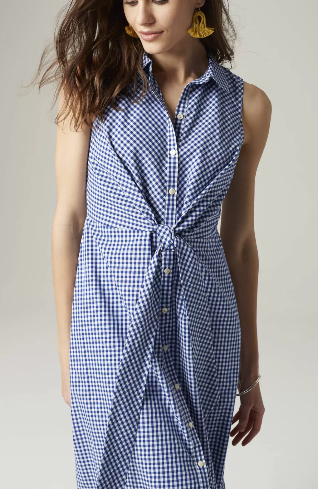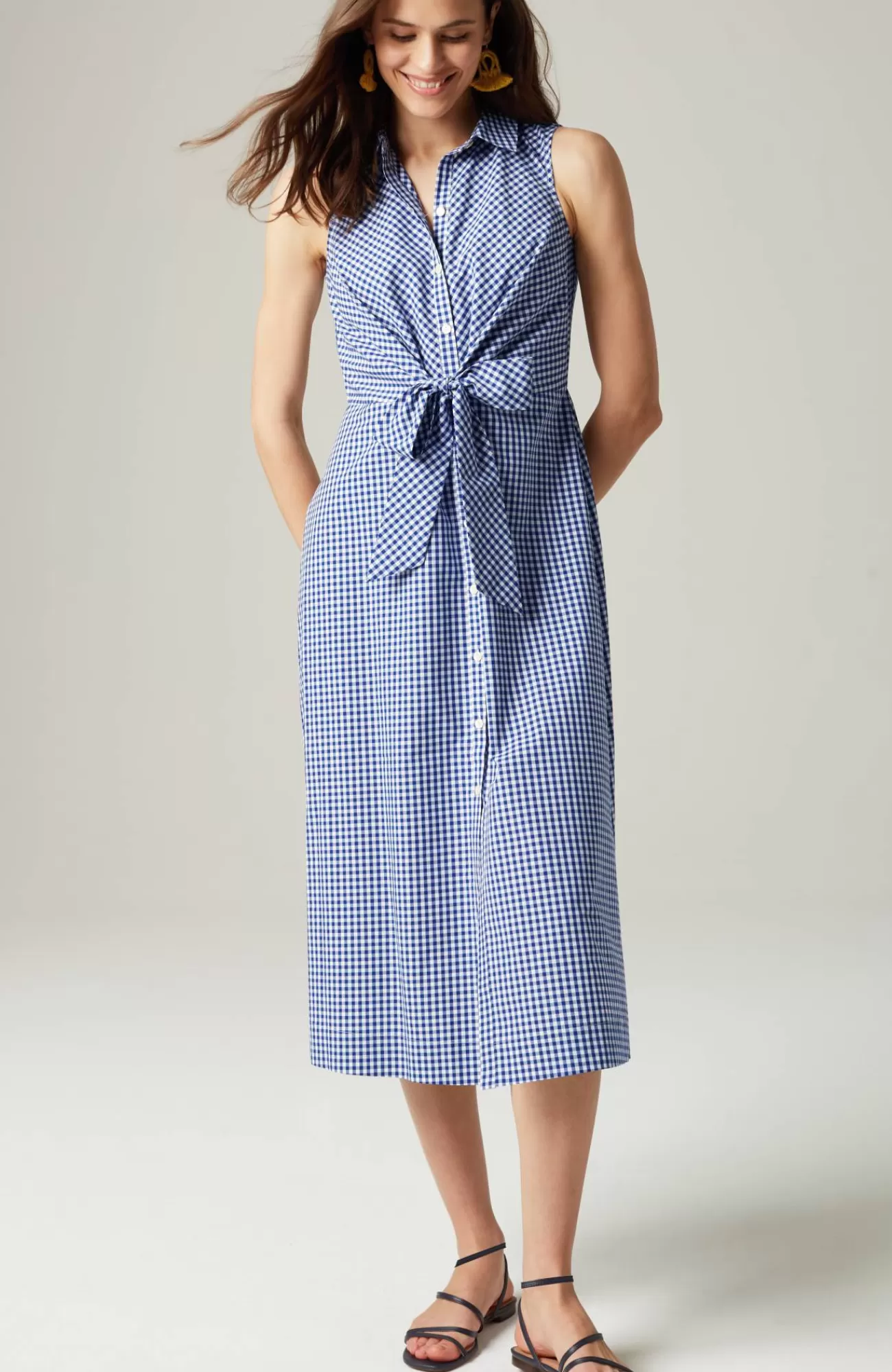 Our A-line shirtdress is an effortlessly versatile style that can be worn from workdays to weekends. We've added a flattering tie at the waist that can be tied in the front or in the back. Full button-front closure. On-seam pockets.