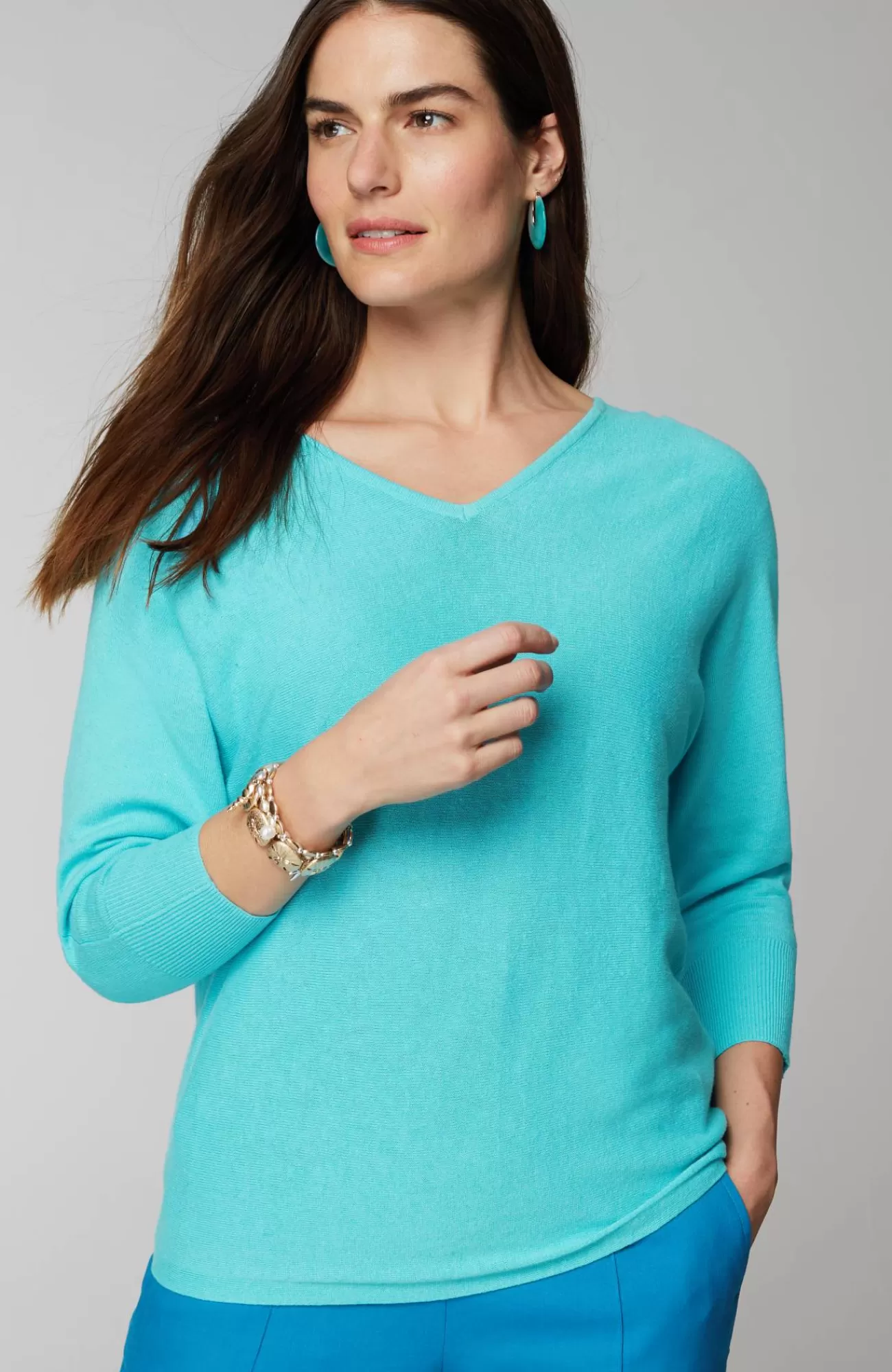 The simple sweater that starts so many outfits. Designed in a luxe linen blend with a V-neckline and easy dolman sleeves, it feels light and easy on breezy summer days. Available in an array of striking colors that will make your wardrobe come alive.
