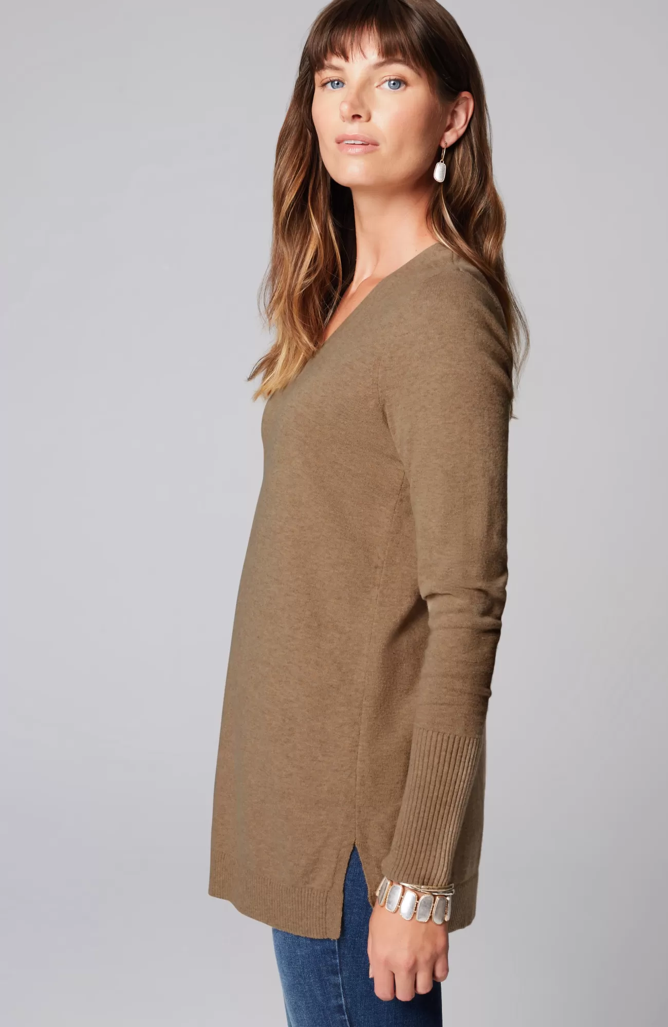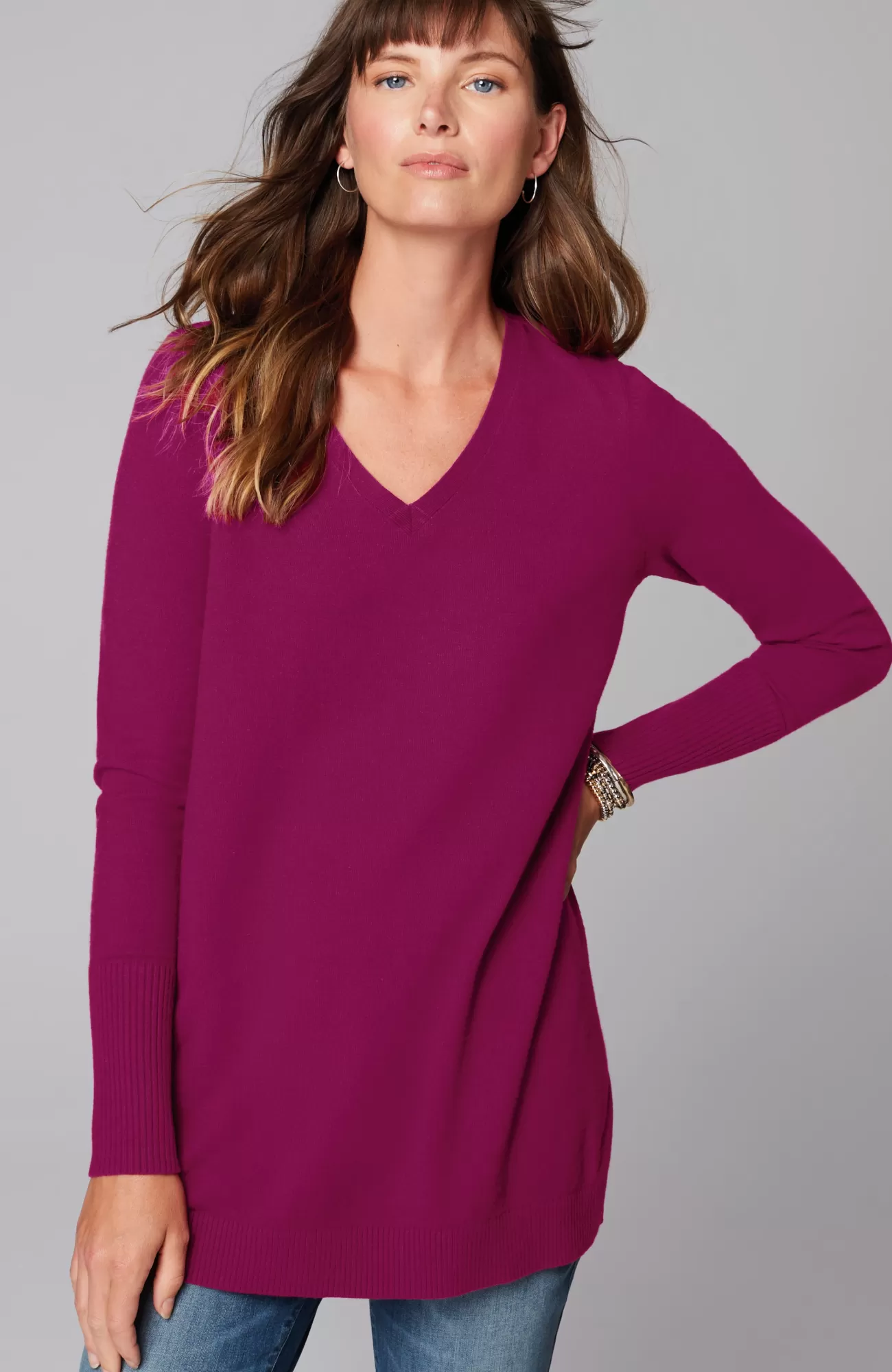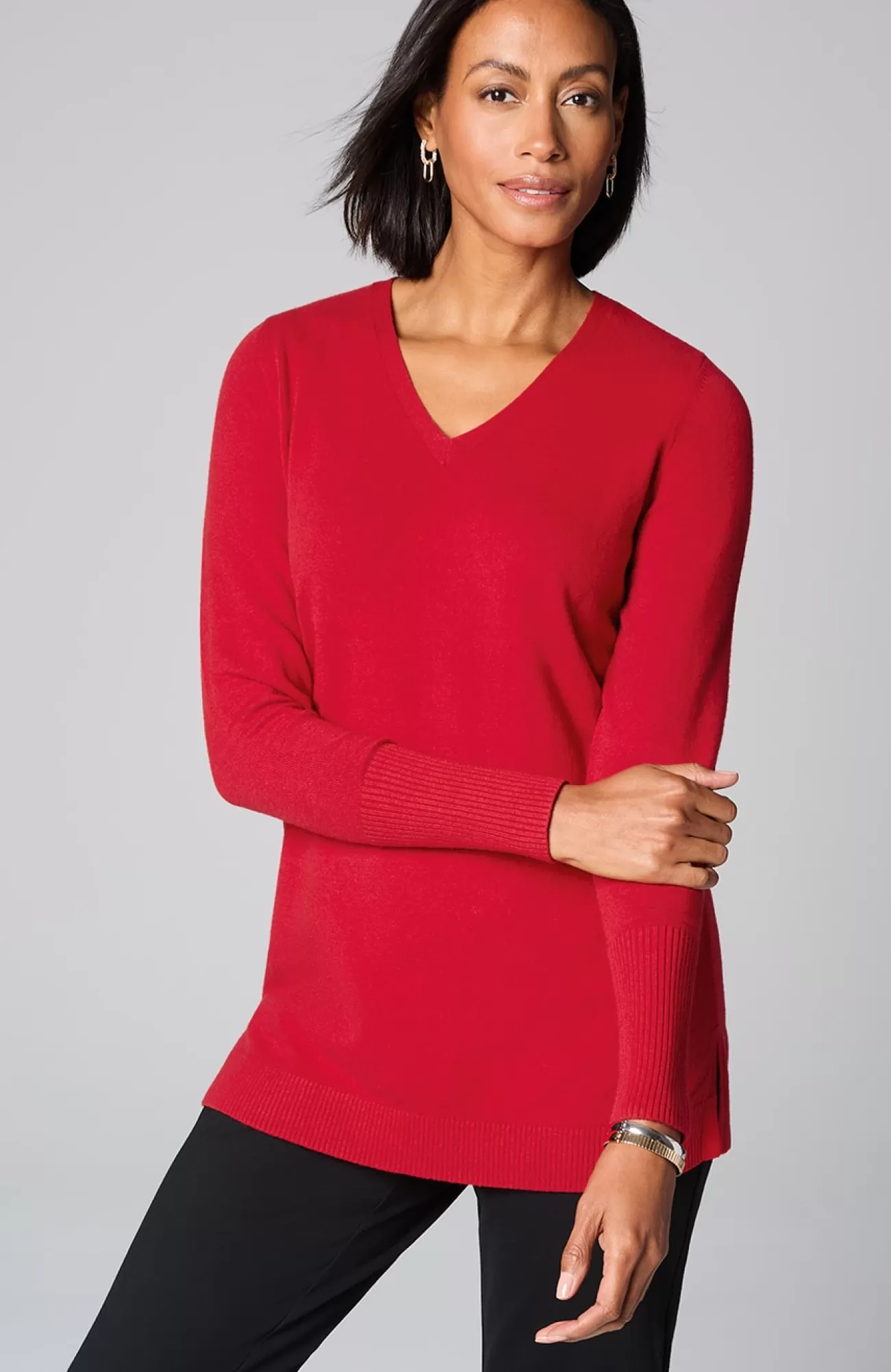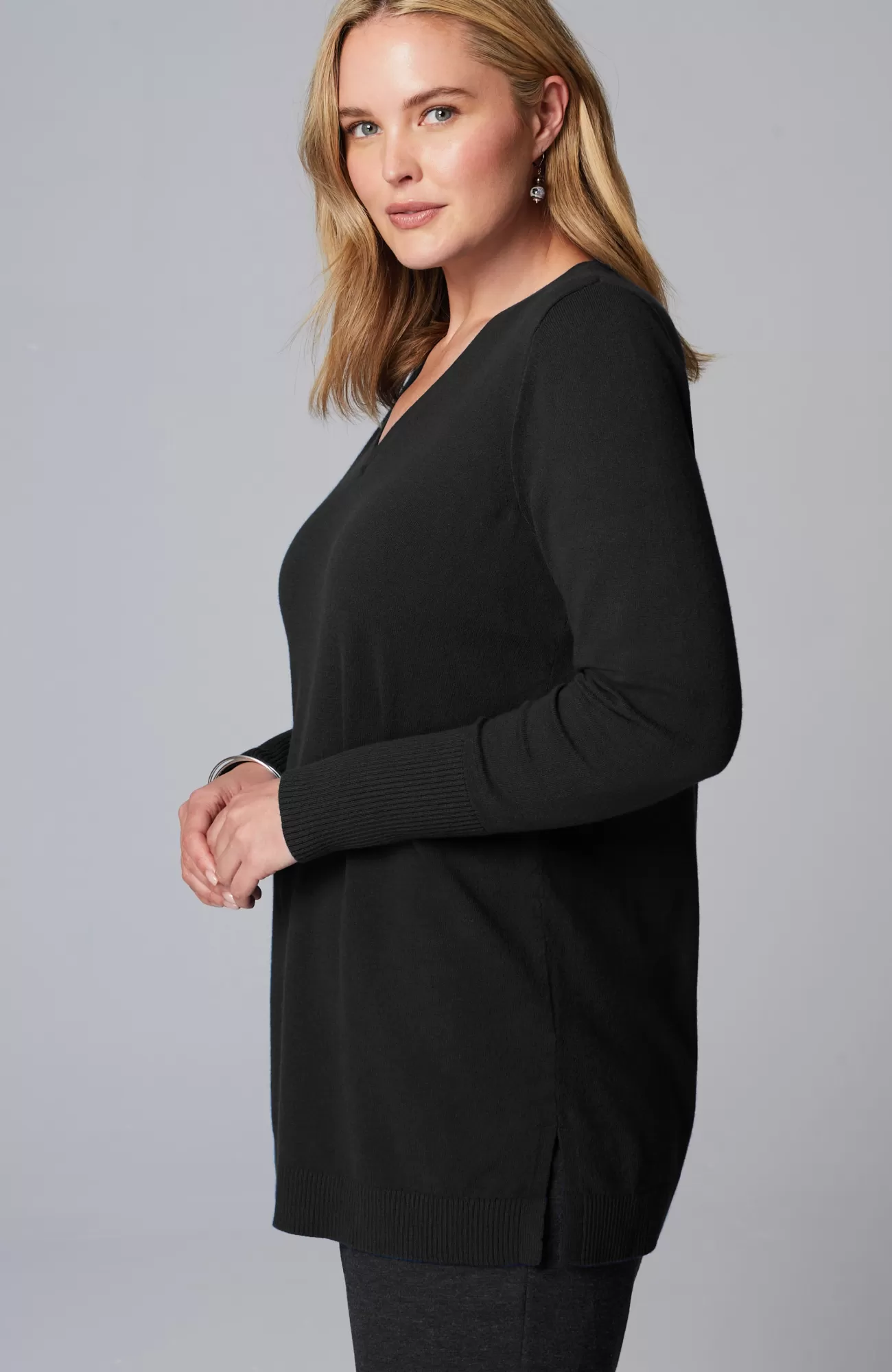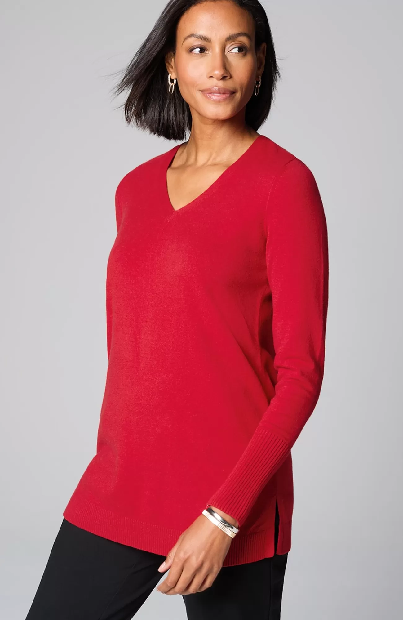 A fall essential that has it all: cozy cotton-rich yarns, a longer length, and a classic ribbed trim at the neckline, cuffs and hem. We especially love the elongated ribbed cuffs—they add extra dimension to this timeless piece. Side vents.